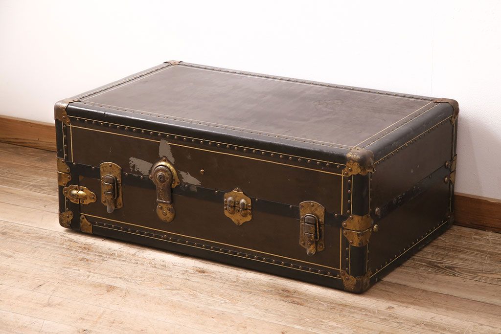 アンティーク雑貨 昭和初期 雰囲気漂うお洒落なトランク(鞄、カバン、収納、ディスプレイ)(R-049795)
