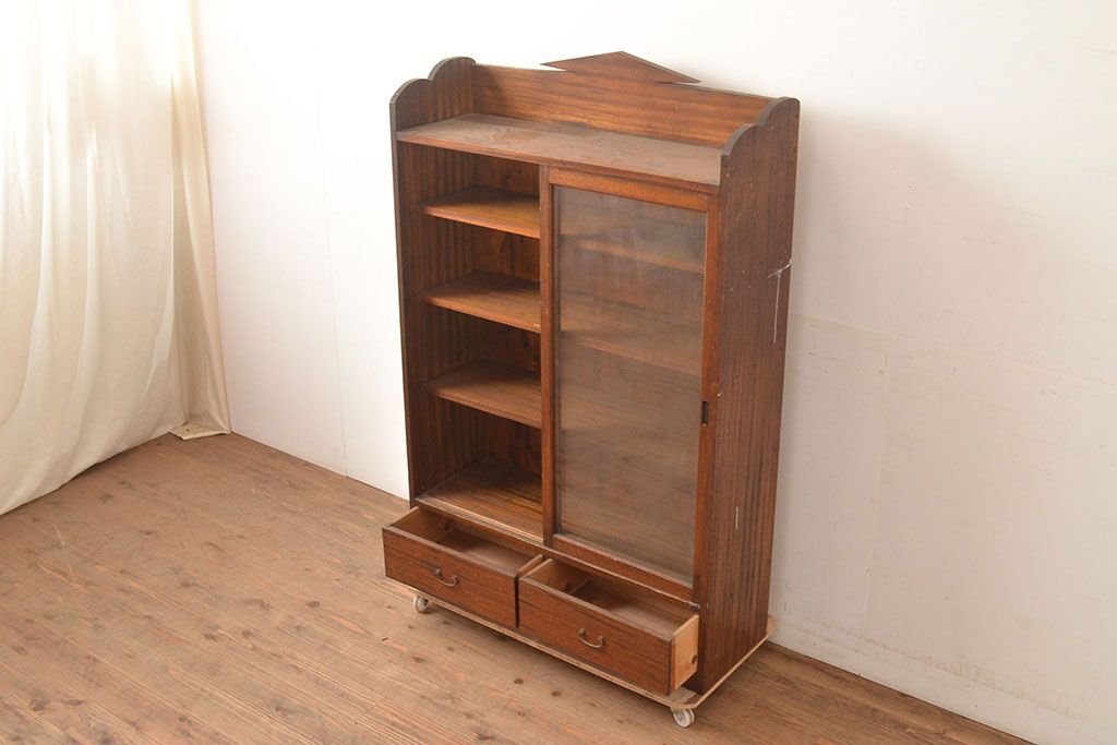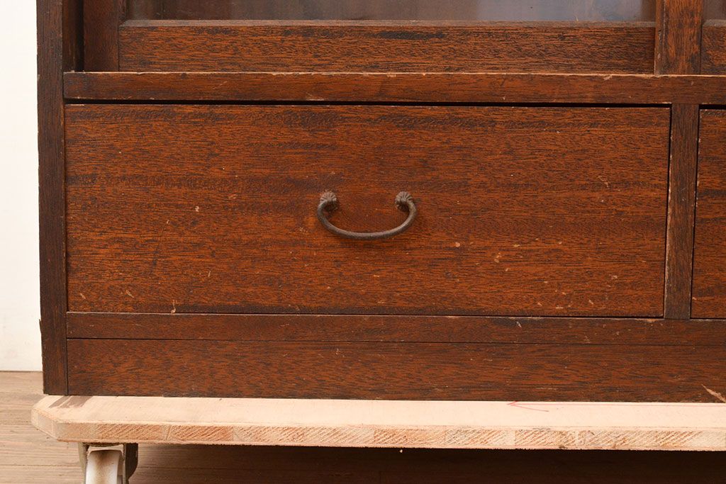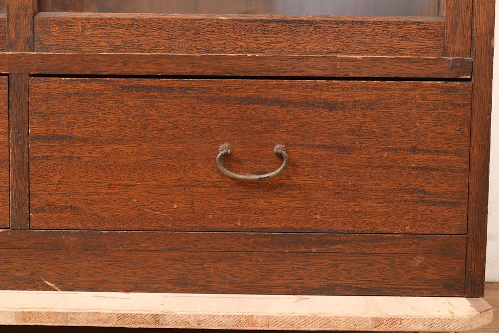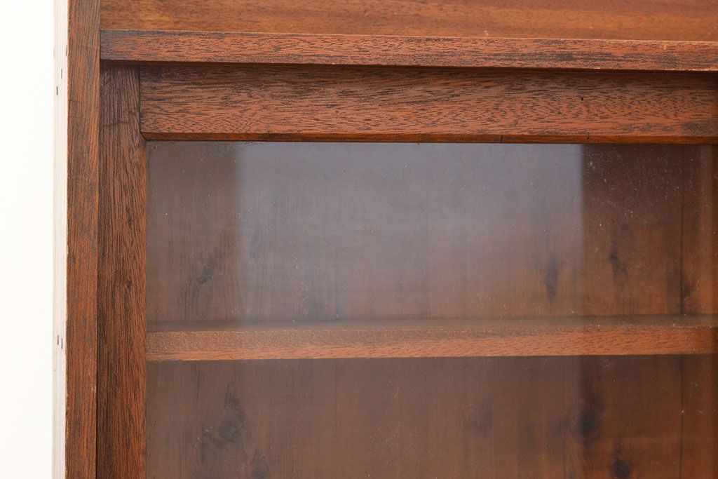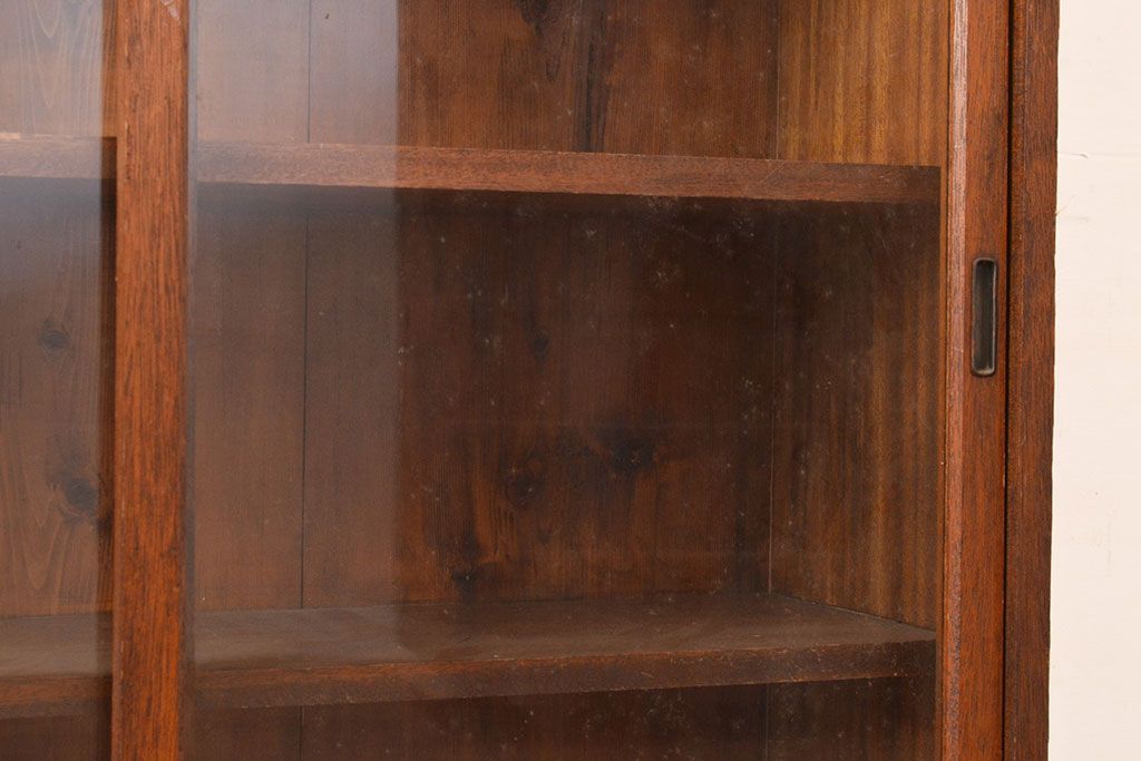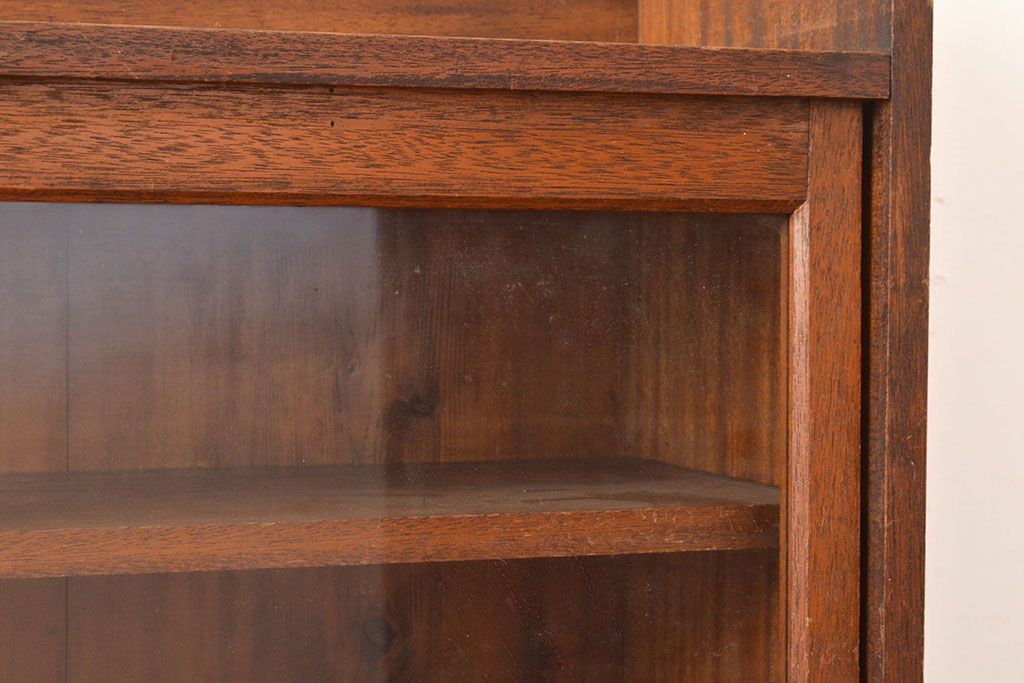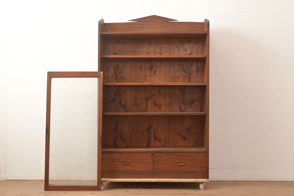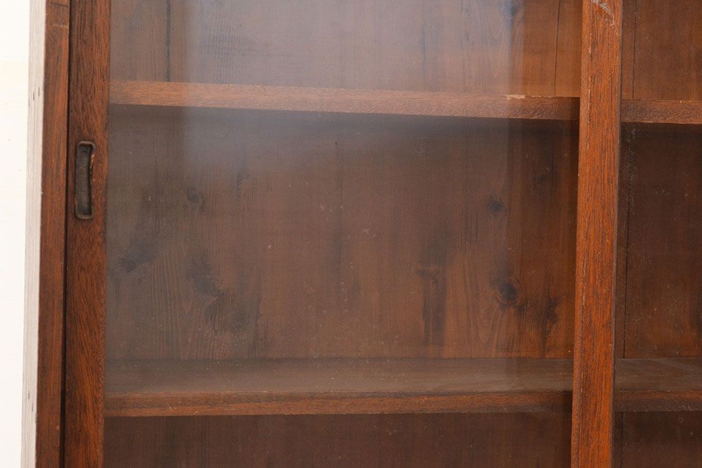 キャビネット・戸棚> 本箱 > 和製アンティーク 昭和初期 レトロなゆらゆらガラス入り! コンパクトな収納棚(戸棚、キャビネット、本箱、飾り棚)(R-049117)
