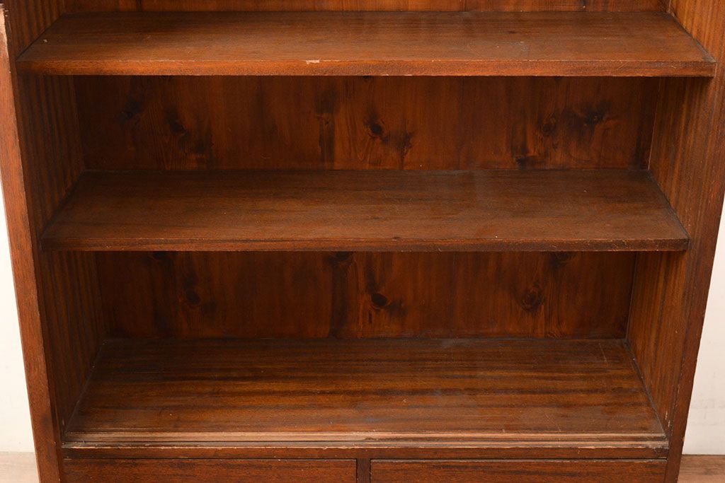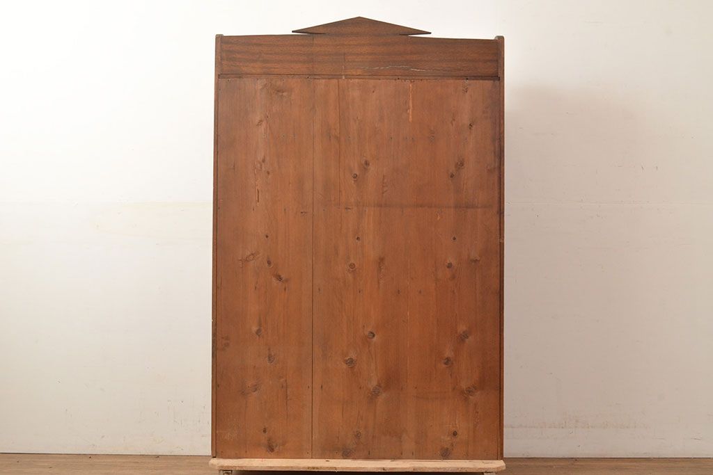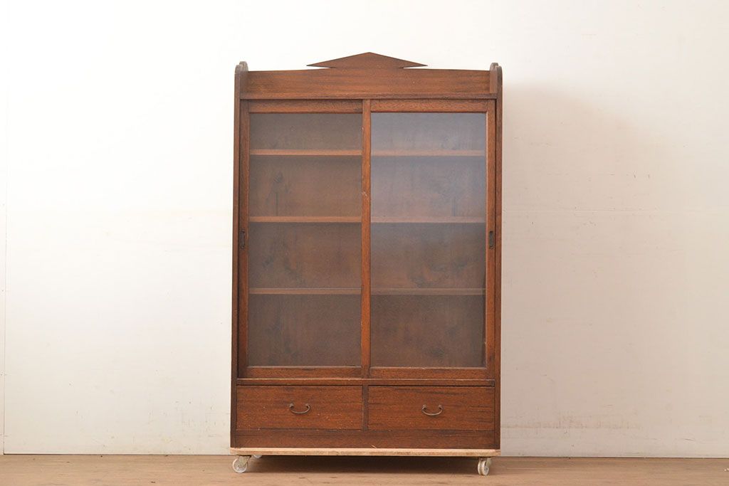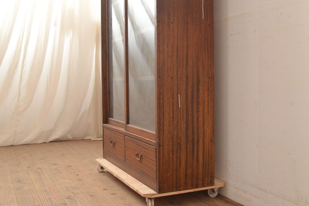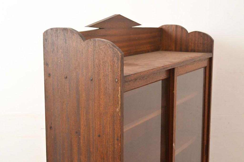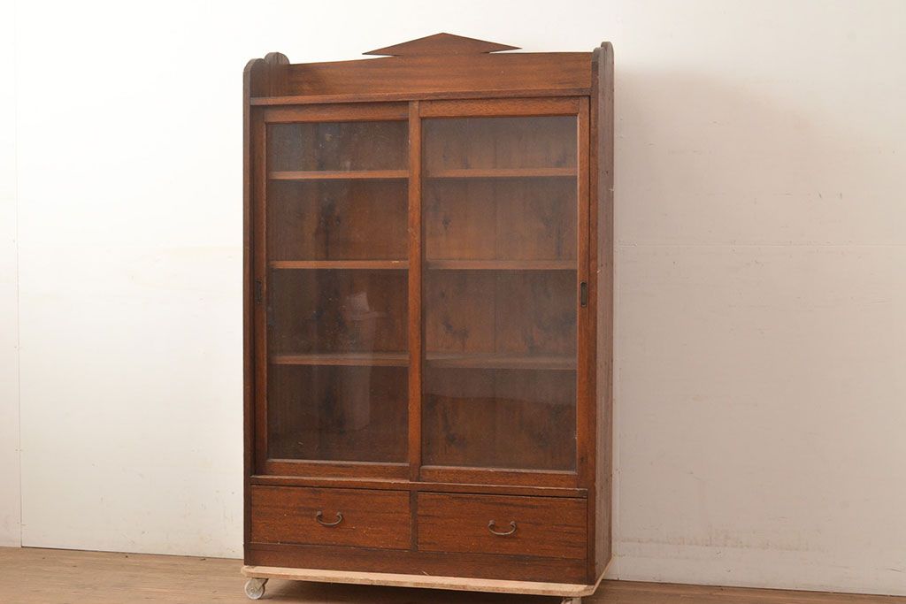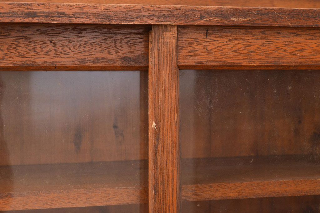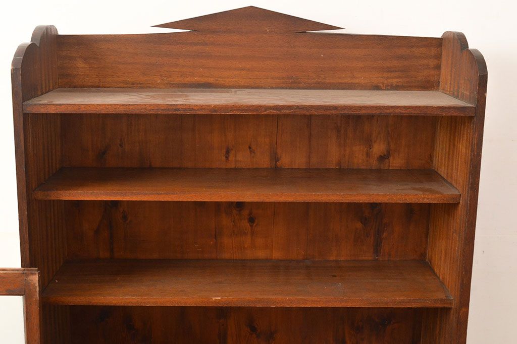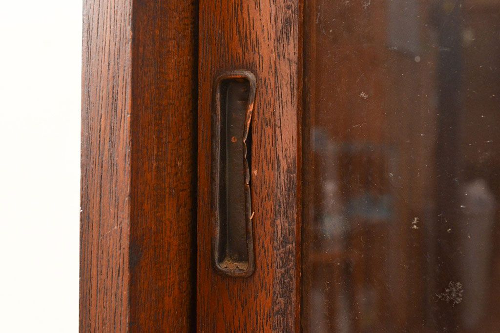 キャビネット・戸棚> 本箱 > 和製アンティーク 昭和初期 レトロなゆらゆらガラス入り! コンパクトな収納棚(戸棚、キャビネット、本箱、飾り棚)(R-049117)