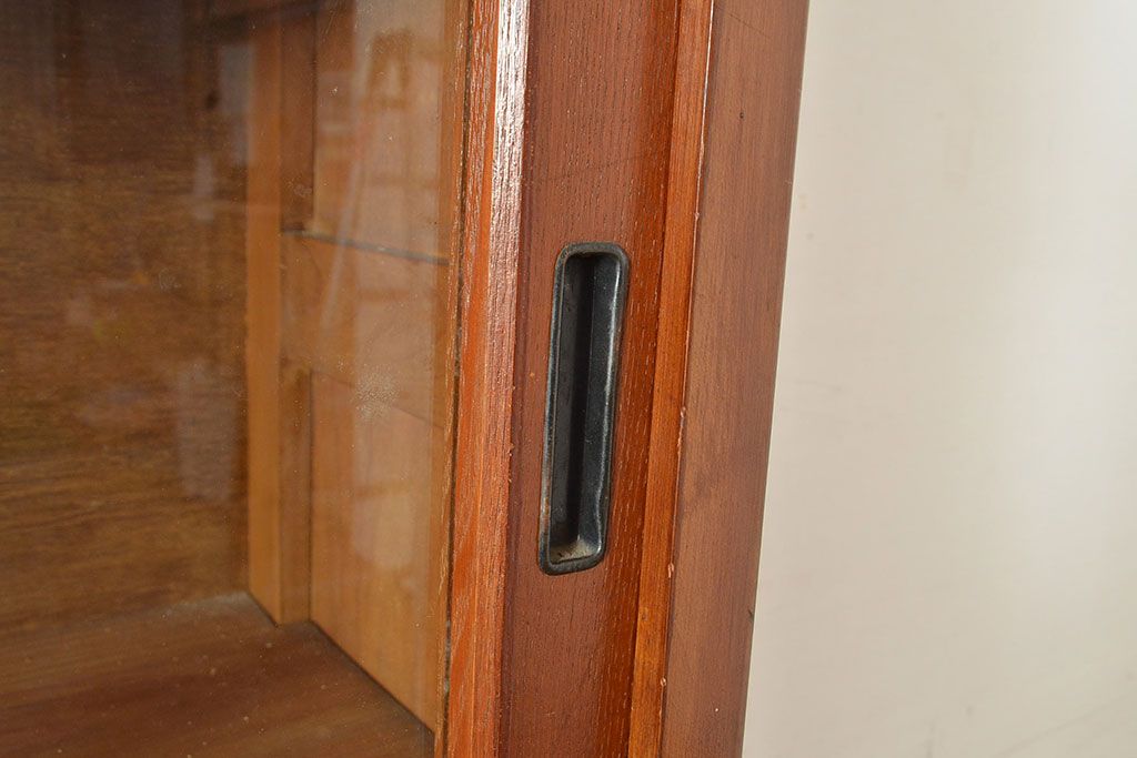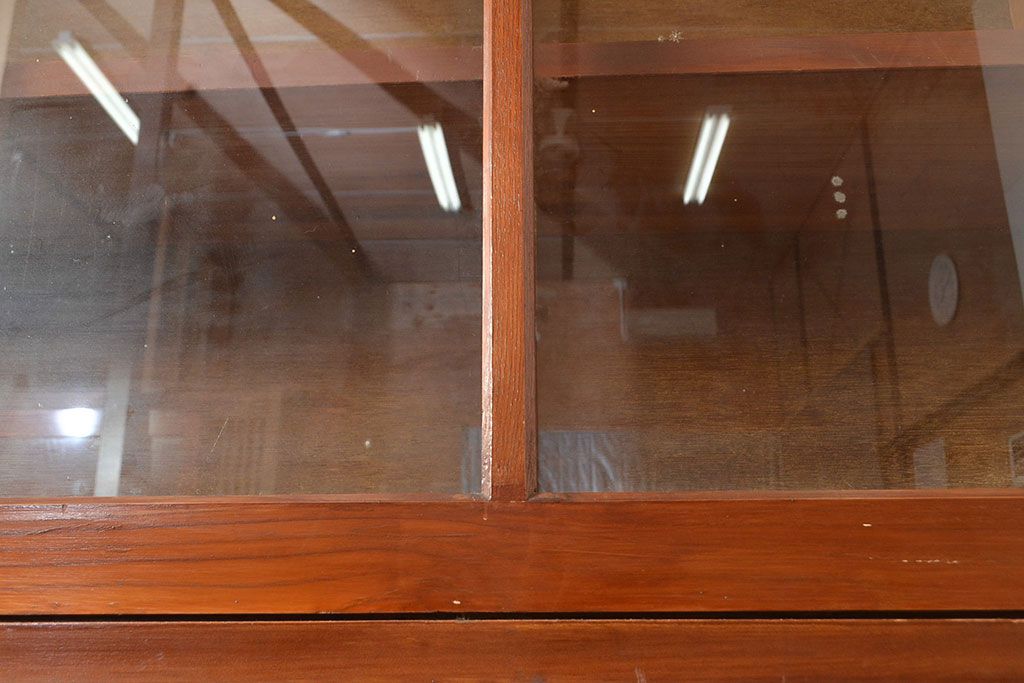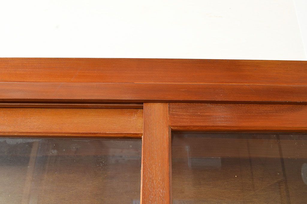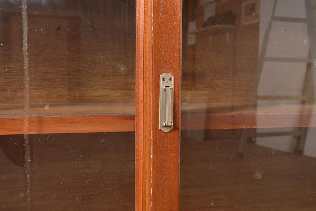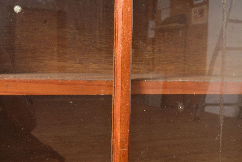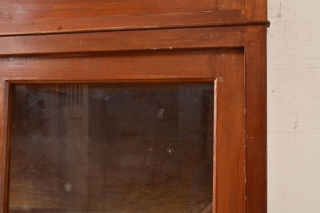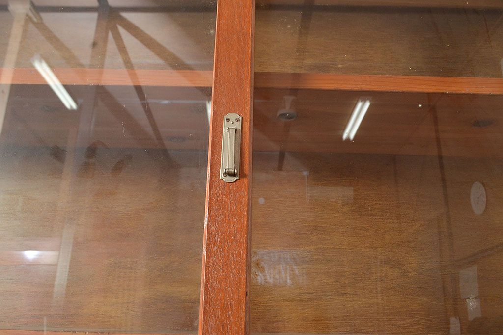 和製アンティーク 昭和中期 人気の薄型! 重ねガラス戸棚(収納棚、キャビネット、食器棚、飾り棚)(R-049271)