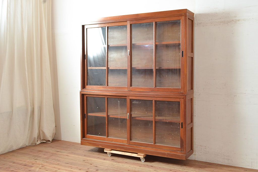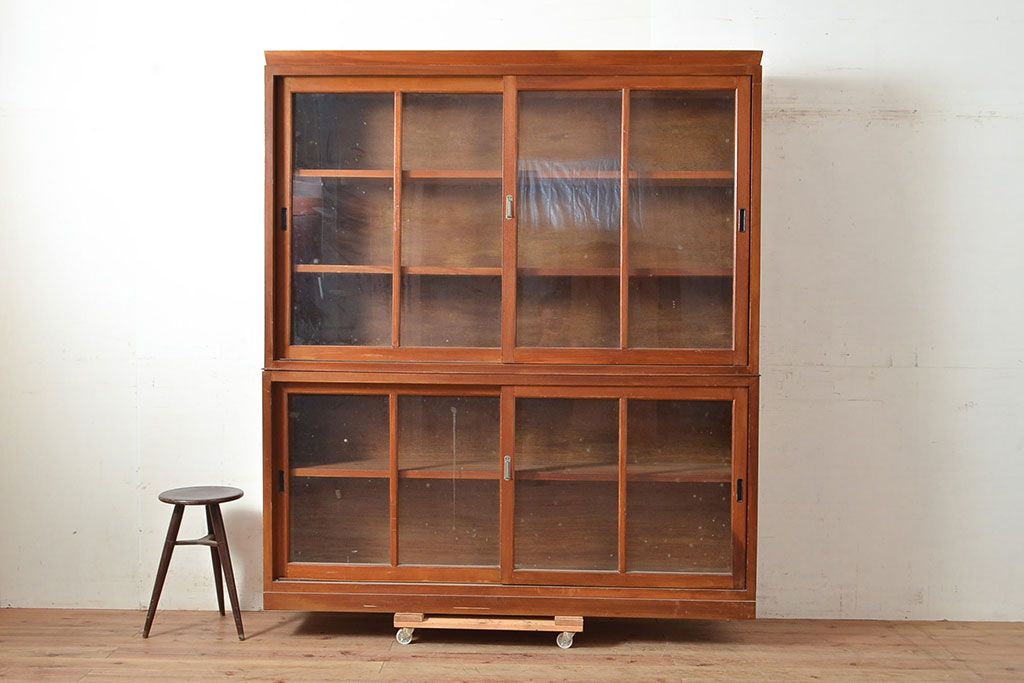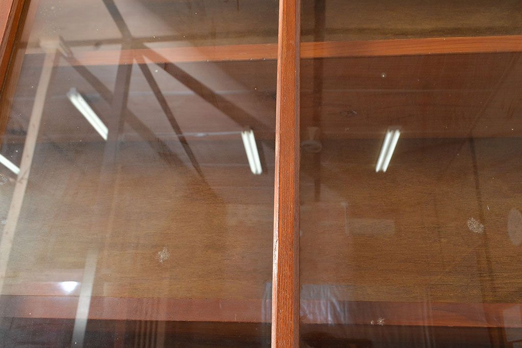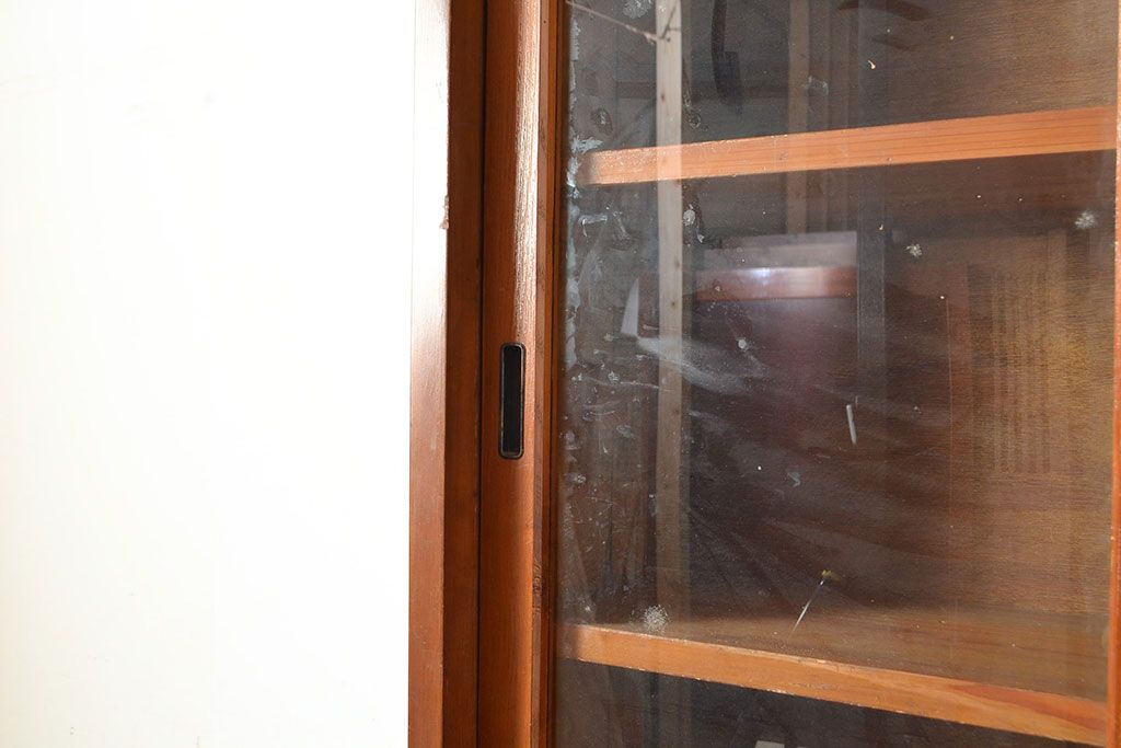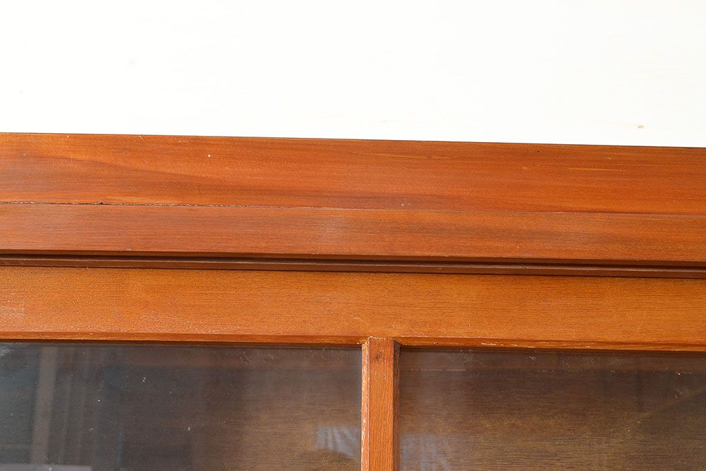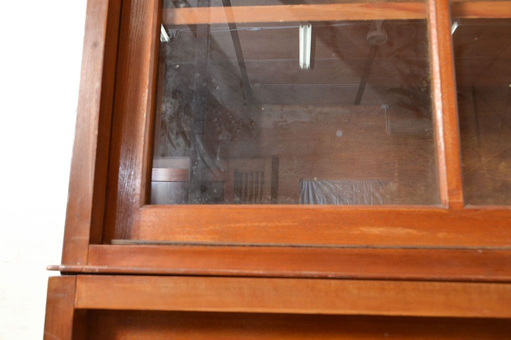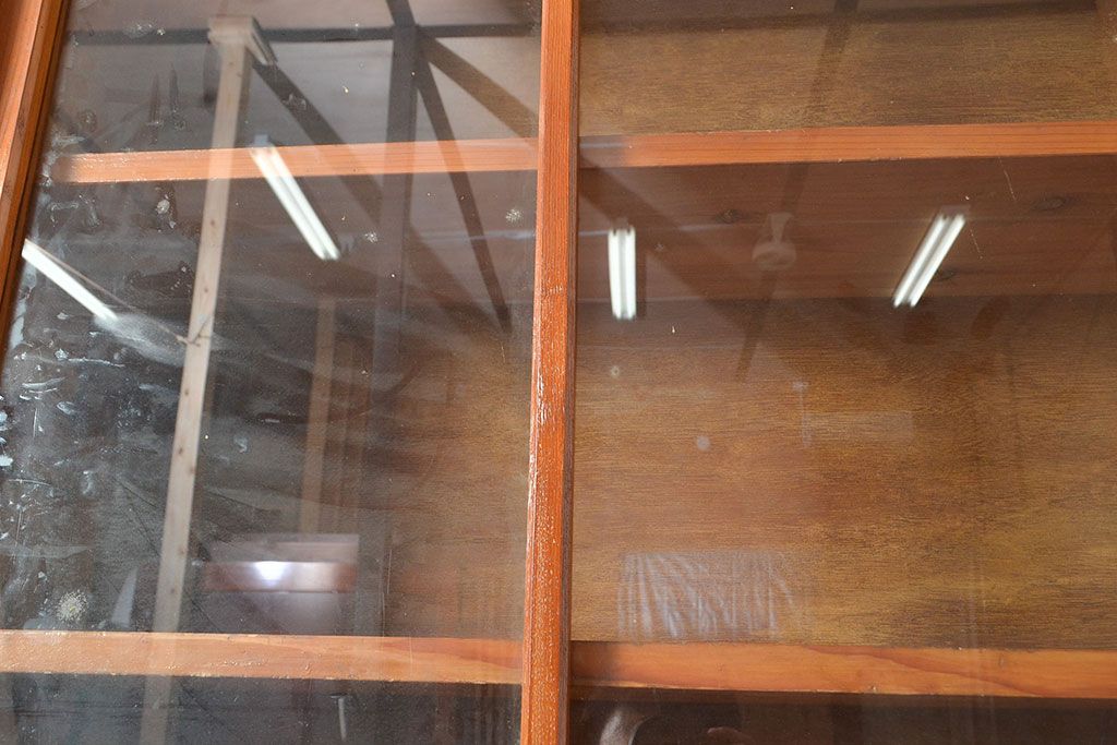 和製アンティーク 昭和中期 人気の薄型! 重ねガラス戸棚(収納棚、キャビネット、食器棚、飾り棚)(R-049271)