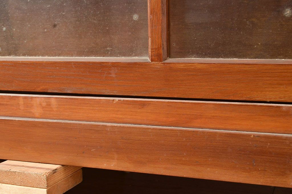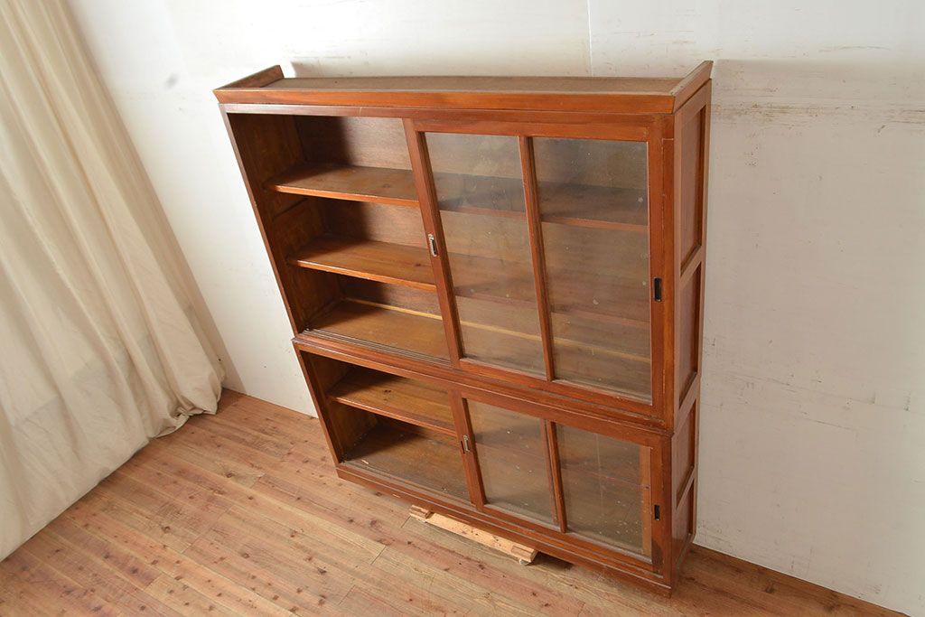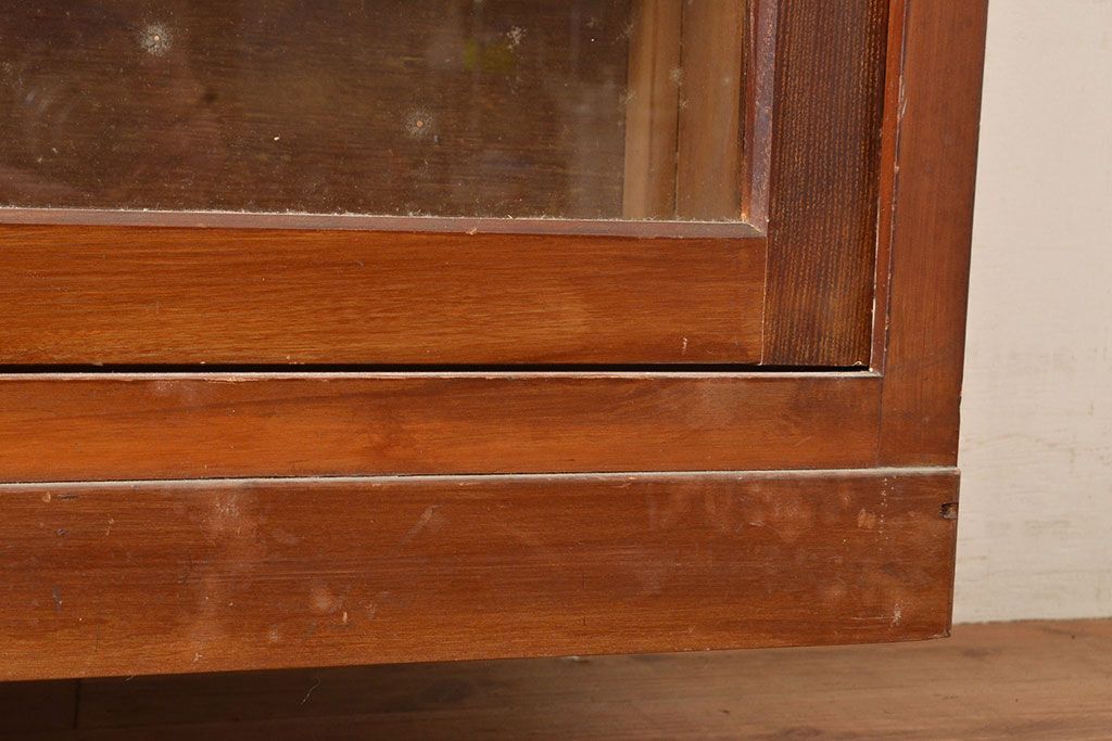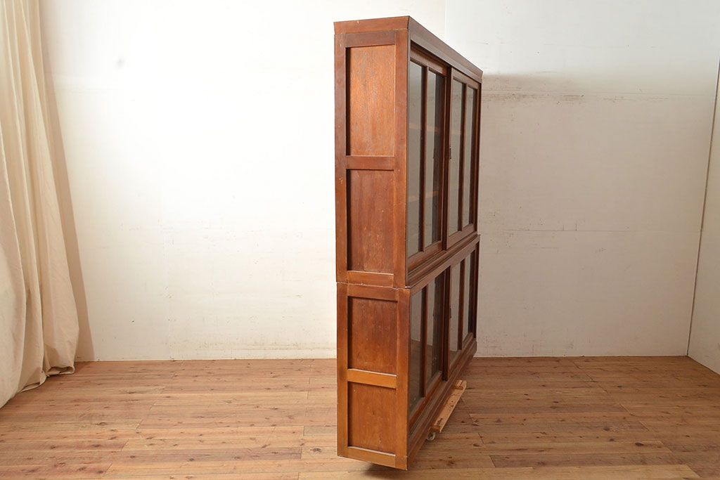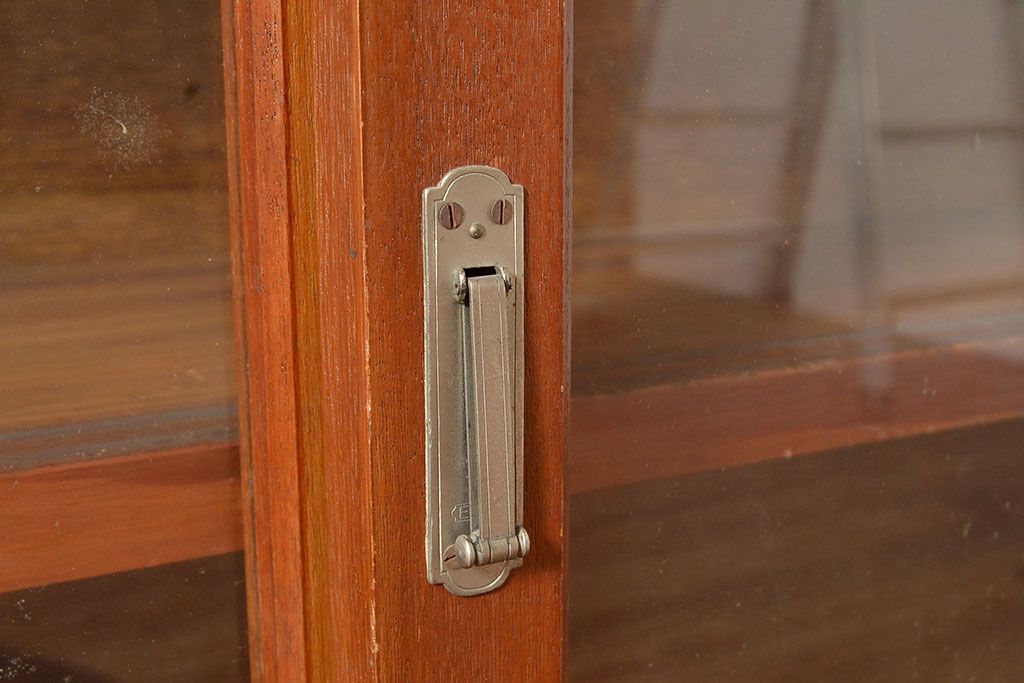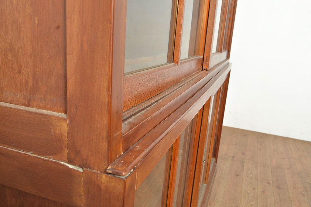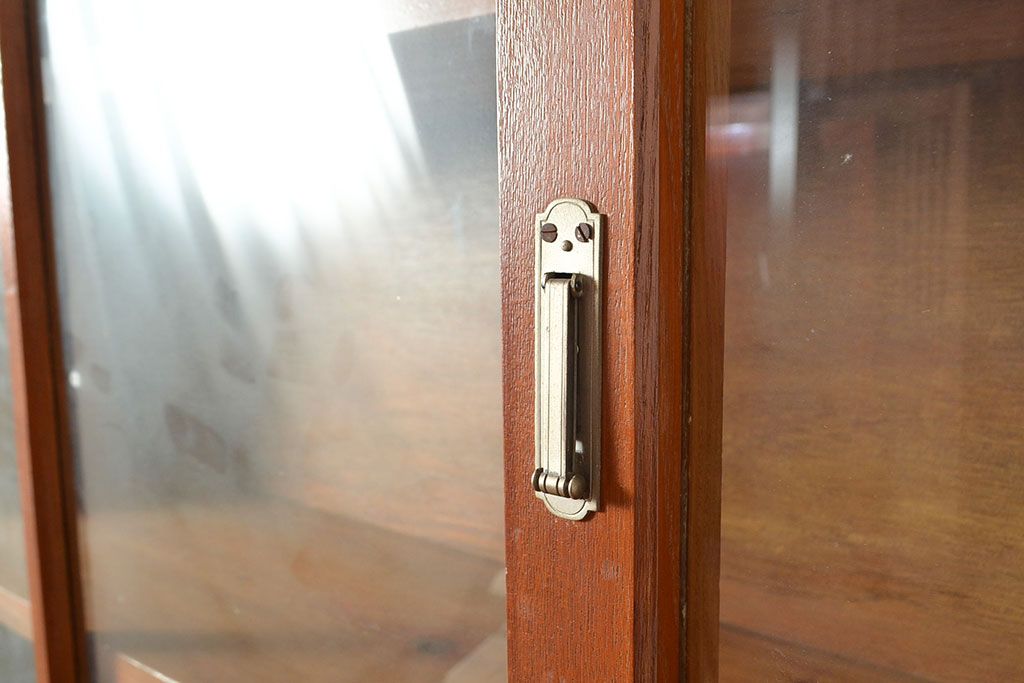 和製アンティーク 昭和中期 人気の薄型! 重ねガラス戸棚(収納棚、キャビネット、食器棚、飾り棚)(R-049271)