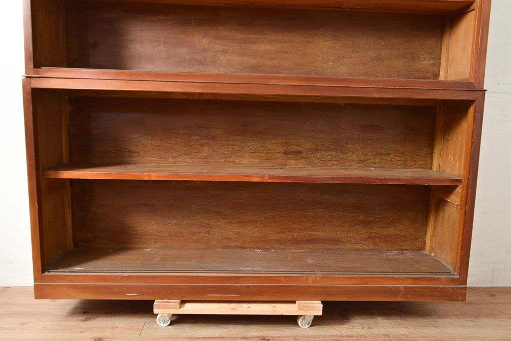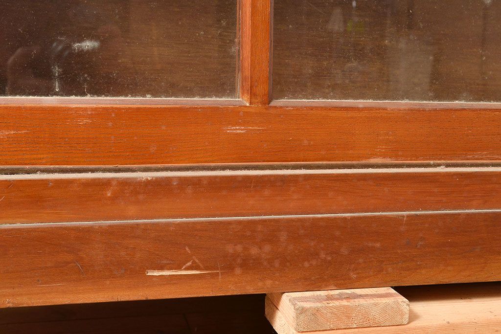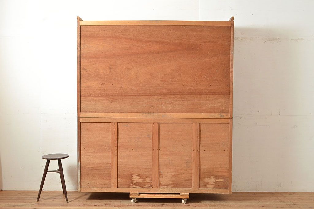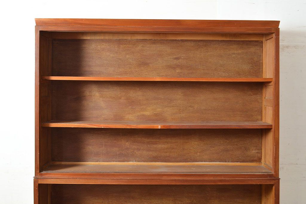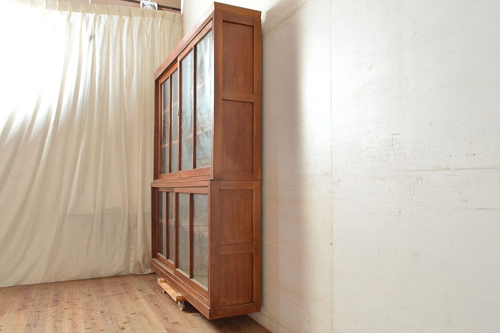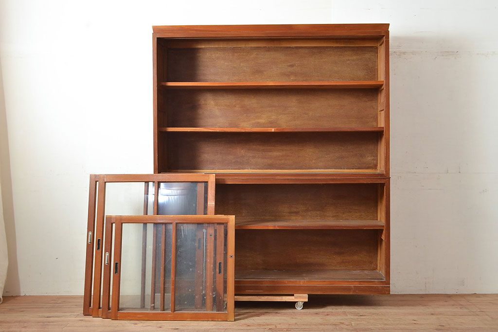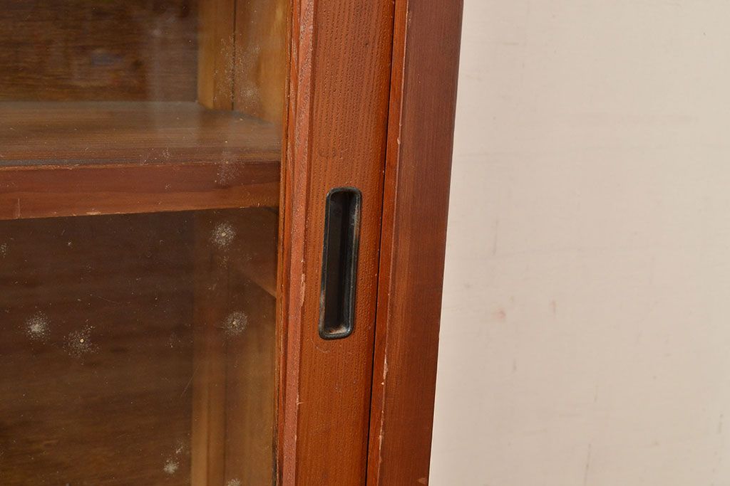 和製アンティーク 昭和中期 人気の薄型! 重ねガラス戸棚(収納棚、キャビネット、食器棚、飾り棚)(R-049271)