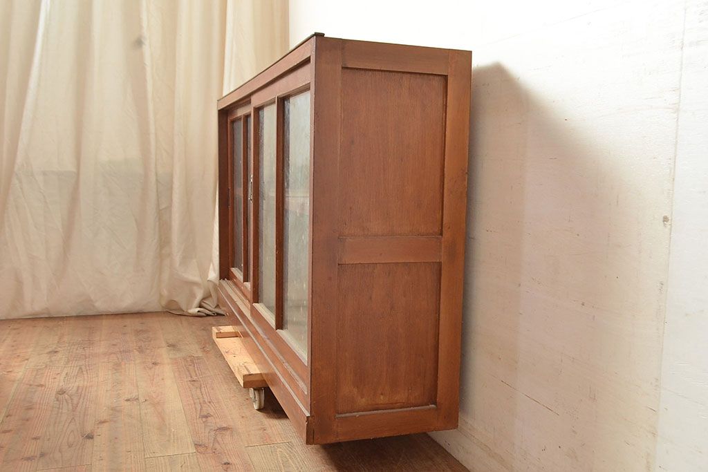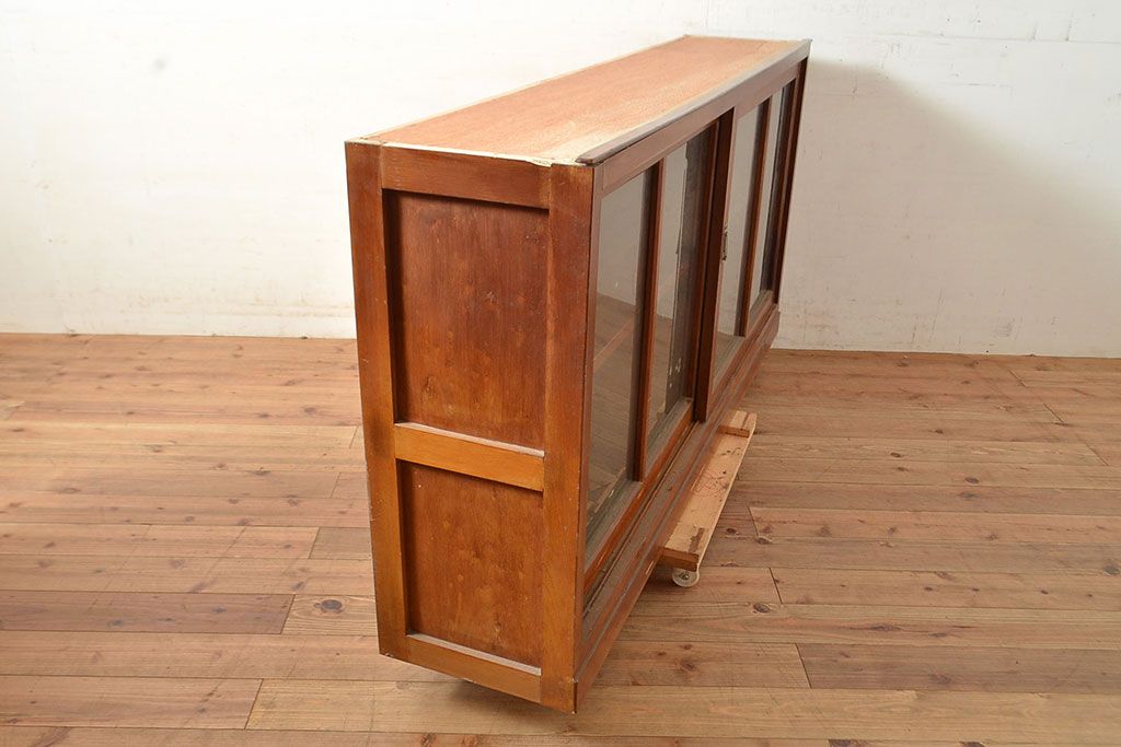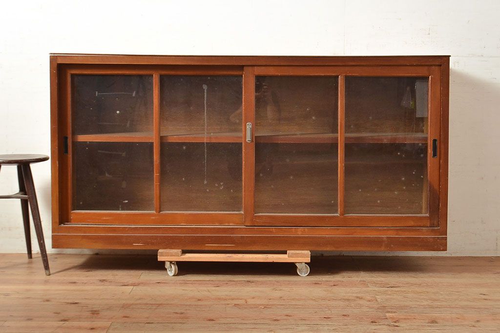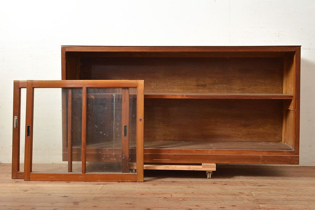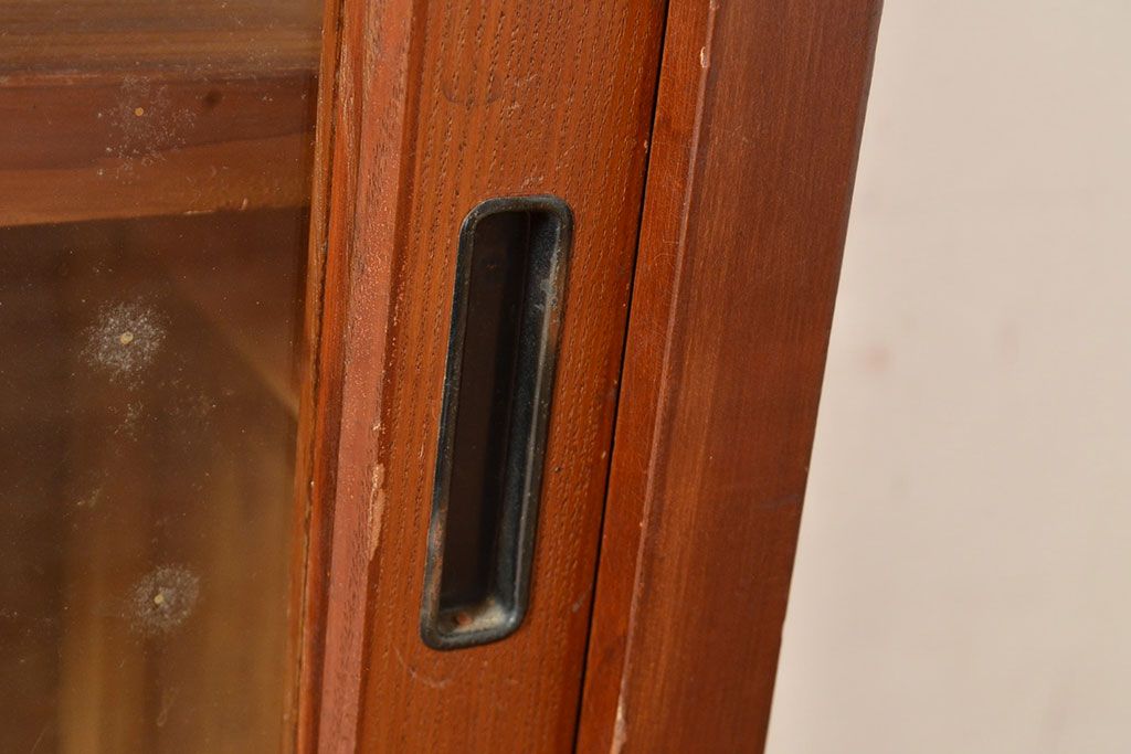 和製アンティーク 昭和中期 人気の薄型! ガラス戸棚(収納棚、キャビネット、食器棚、飾り棚、サイドボード)(R-049273)