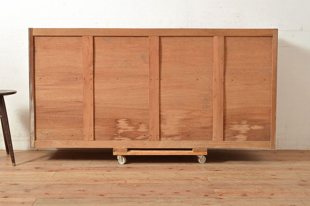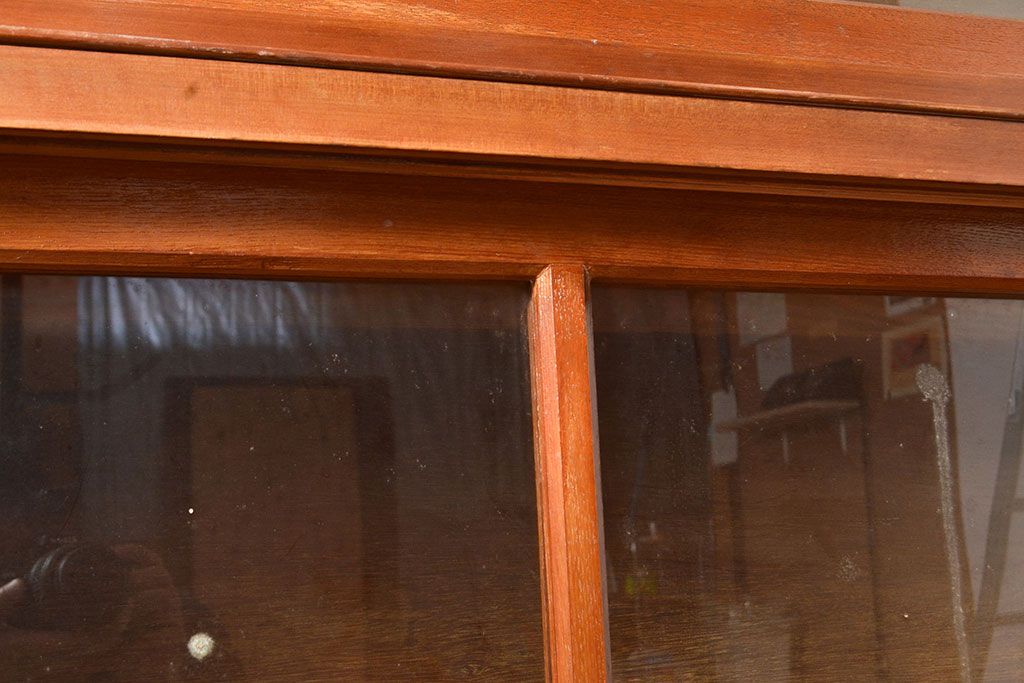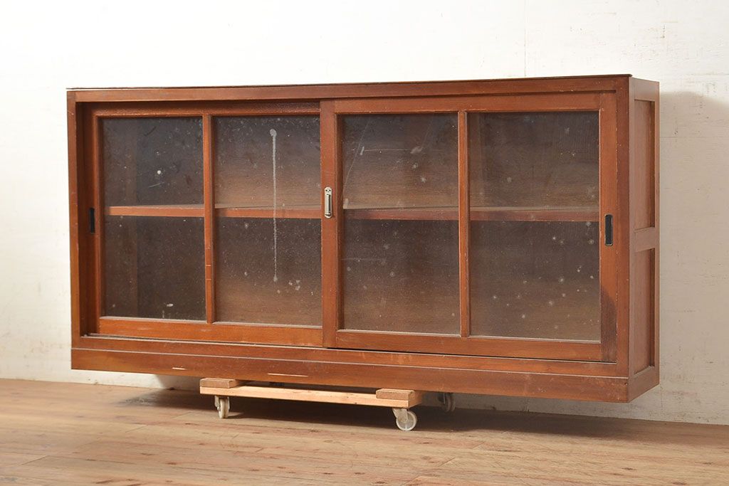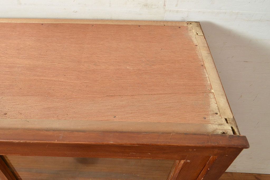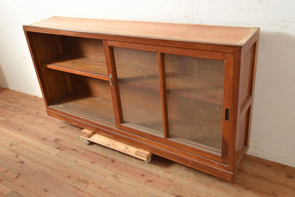 和製アンティーク 昭和中期 人気の薄型! ガラス戸棚(収納棚、キャビネット、食器棚、飾り棚、サイドボード)(R-049273)