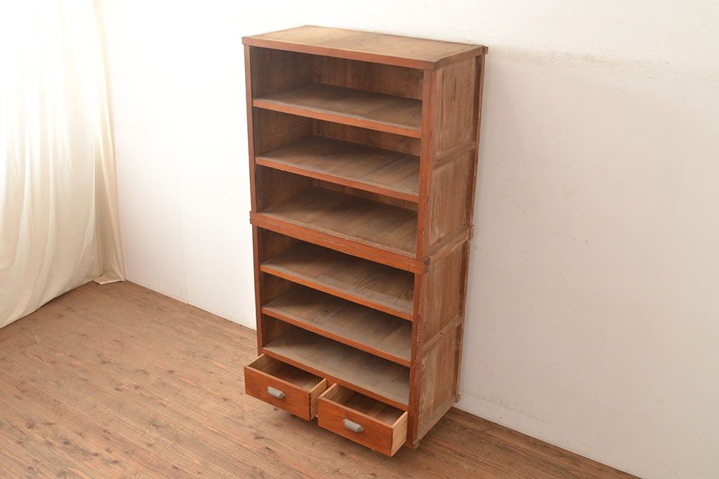 和製アンティーク 大正初期 杉材 コンパクトなサイズの棚(オープンラック、収納棚、飾り棚、本棚)(R-049463)