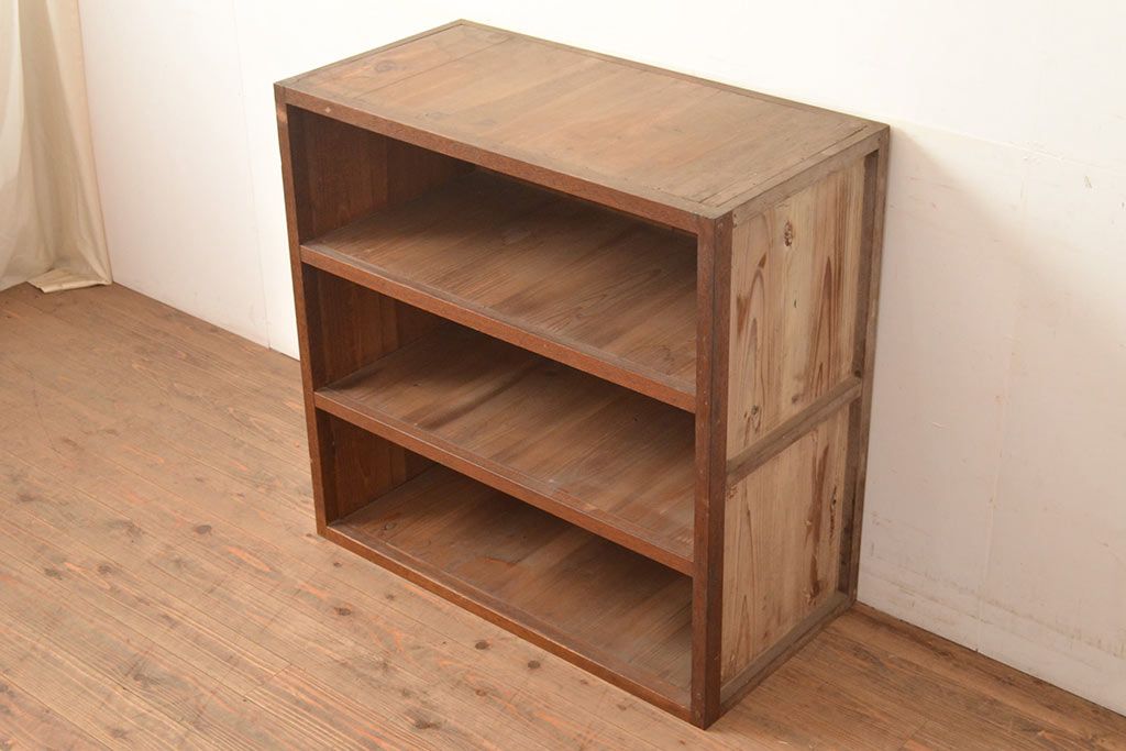 和製アンティーク 昭和初期 シンプルな木製の棚(オープンラック、収納棚、飾り棚、本棚)(R-049162)