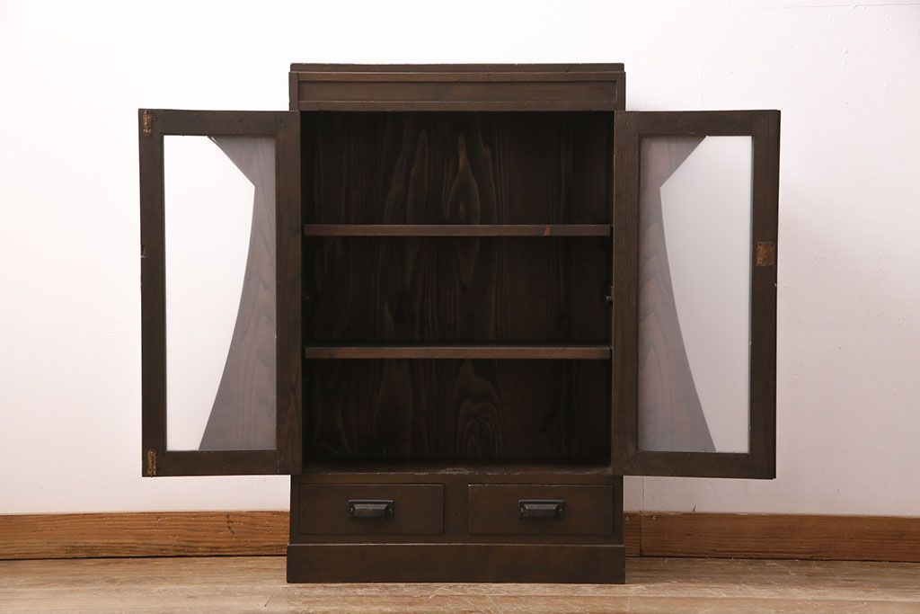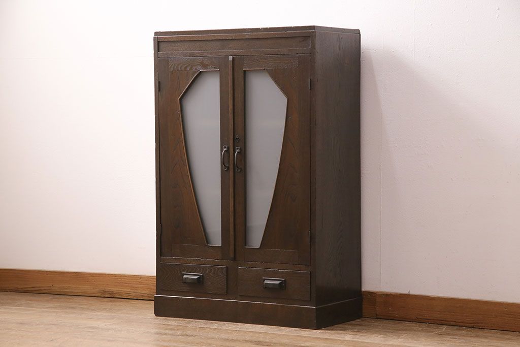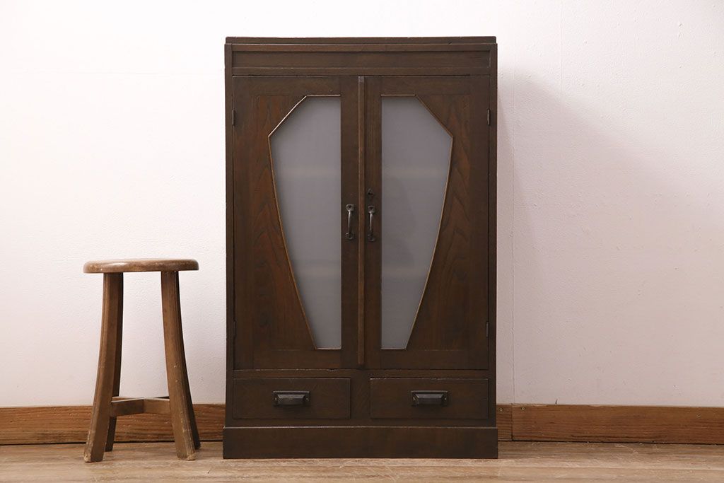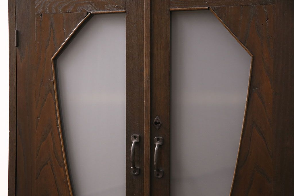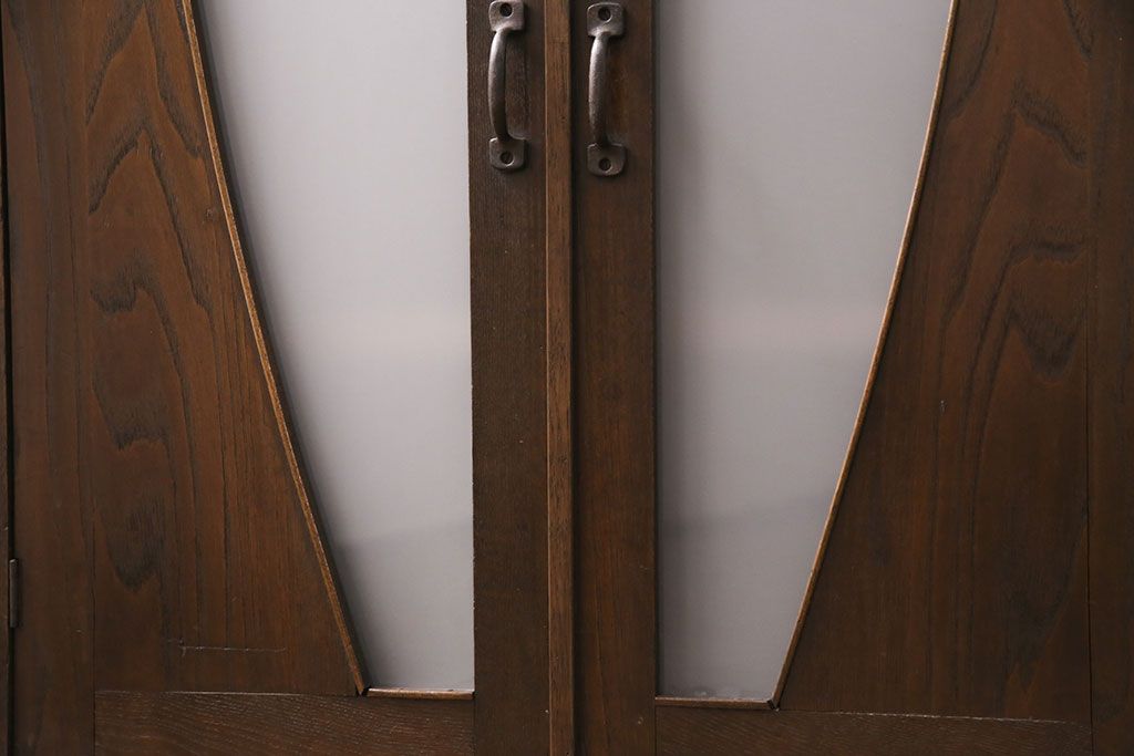 大正昭和期の本箱をリペア&カスタム!建具の色ガラスをすりガラスへ入れ替え。(収納棚、戸棚、キャビネット)