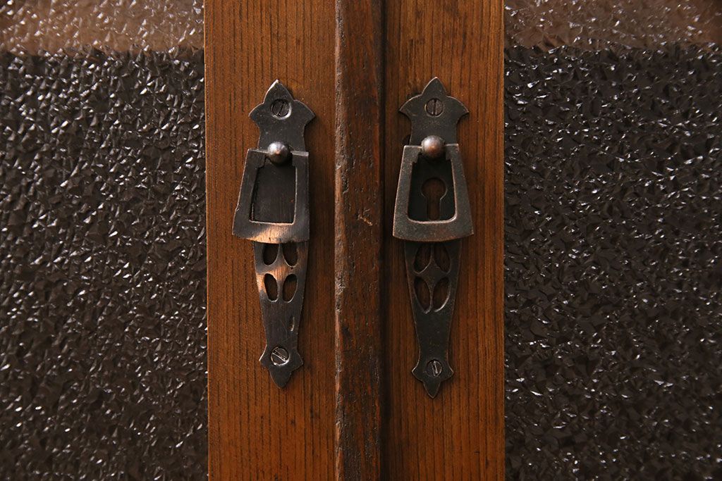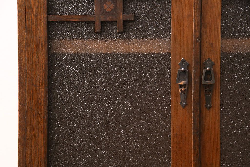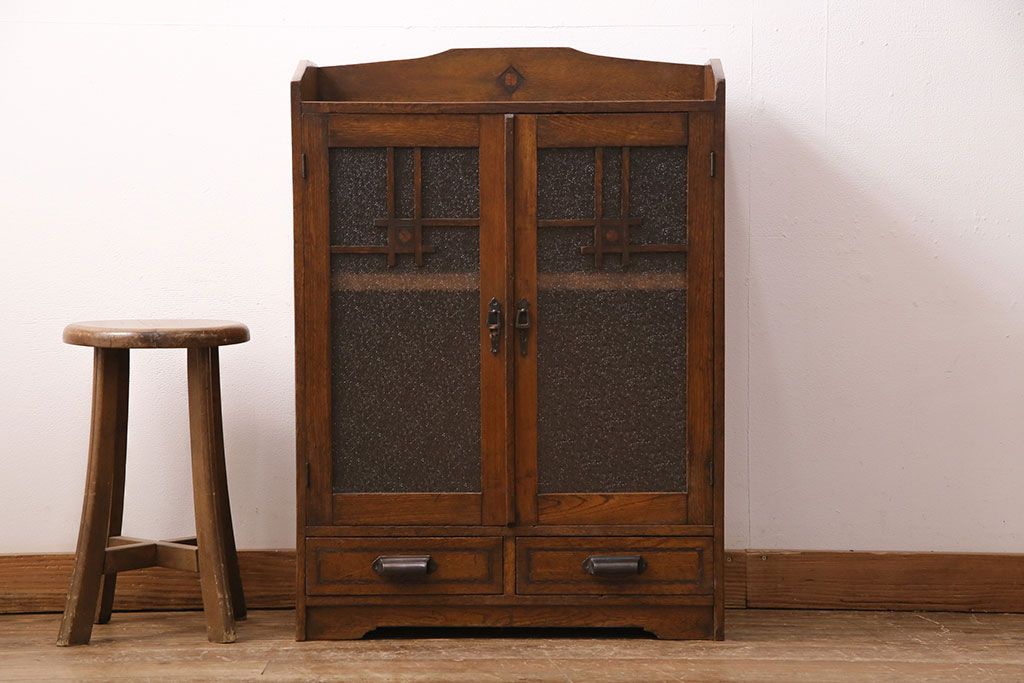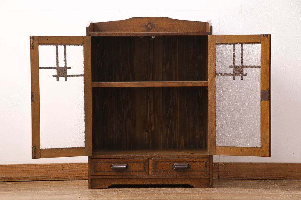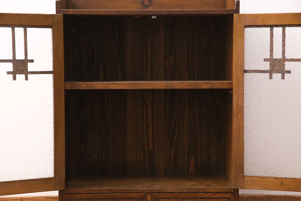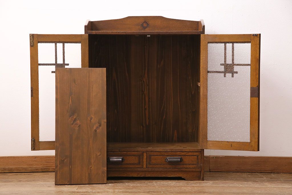 昭和初期の戸棚をリペア&カスタム!建具はダイヤガラスに入れ替え。引き手、取っ手を取り替え。現状に近しい色味に着色し仕上げ。(収納棚、本棚、キャビネット)