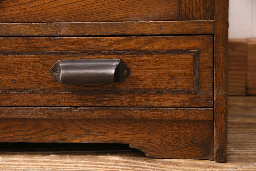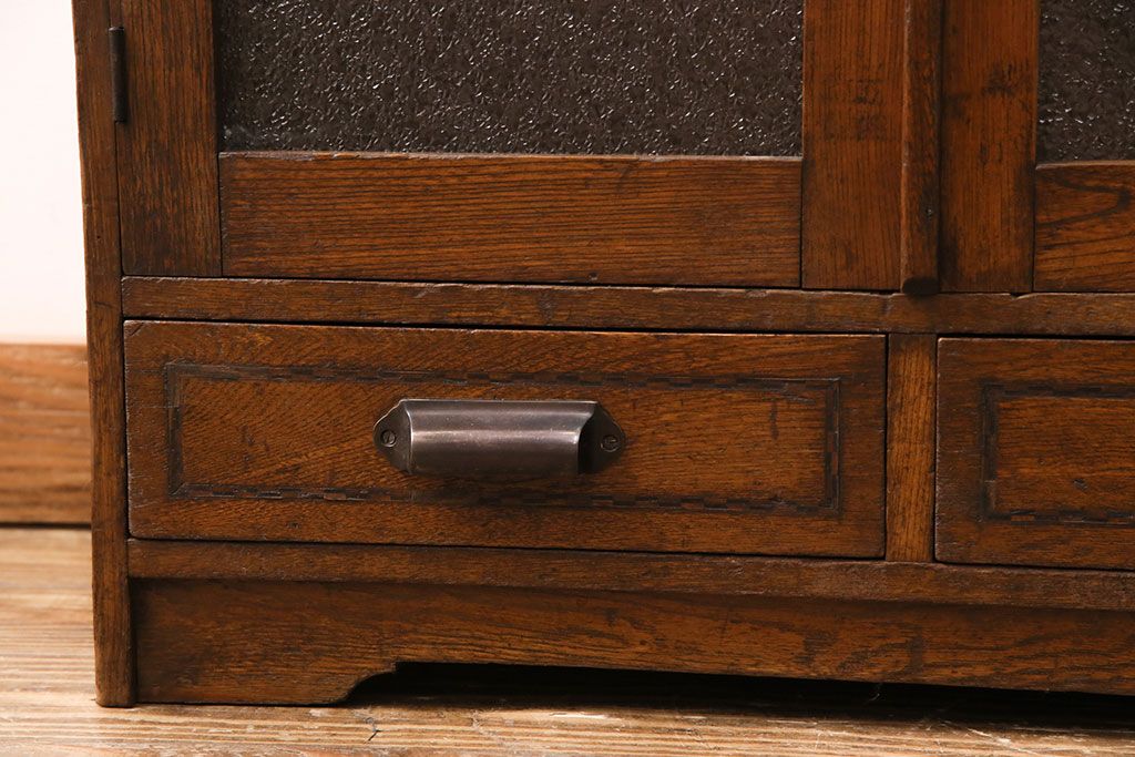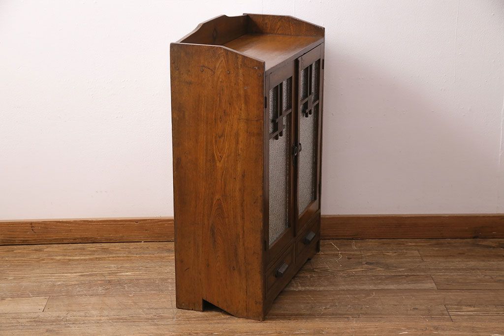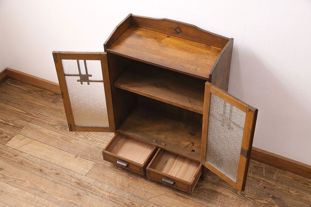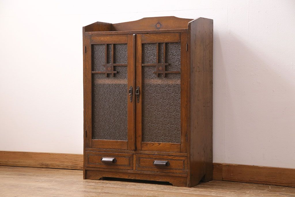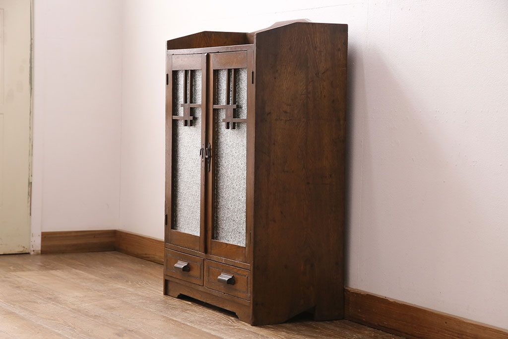昭和初期の戸棚をリペア&カスタム!建具はダイヤガラスに入れ替え。引き手、取っ手を取り替え。現状に近しい色味に着色し仕上げ。(収納棚、本棚、キャビネット)