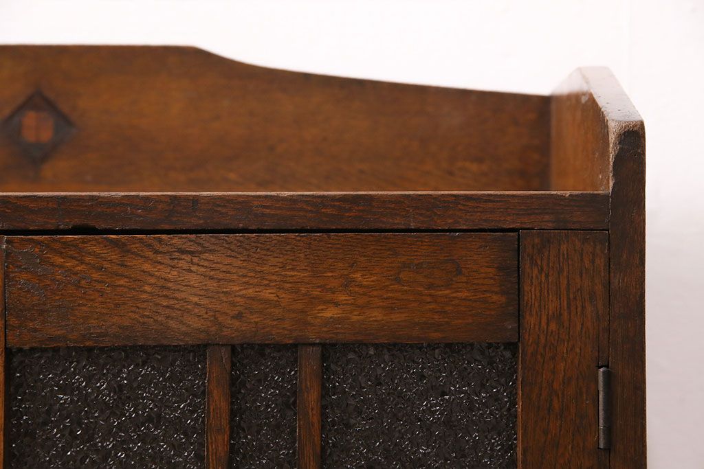キャビネット・戸棚> 本箱 > 昭和初期の戸棚をリペア&カスタム!建具はダイヤガラスに入れ替え。引き手、取っ手を取り替え。現状に近しい色味に着色し仕上げ。(収納棚、本棚、キャビネット)