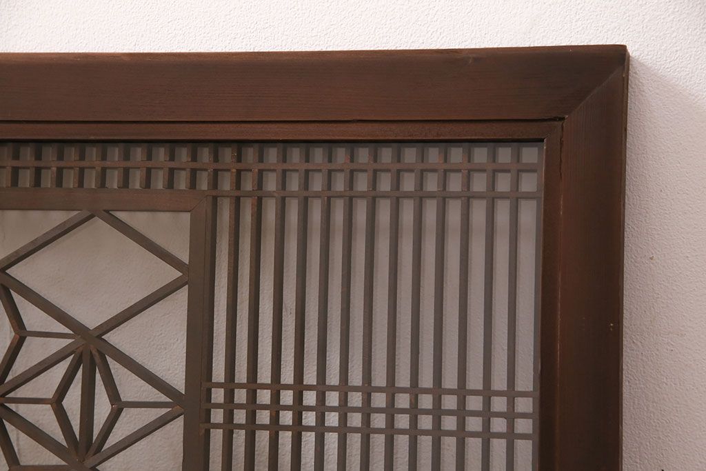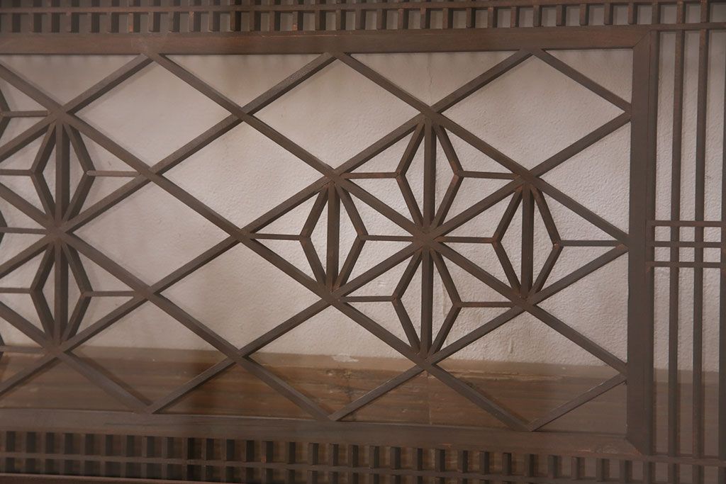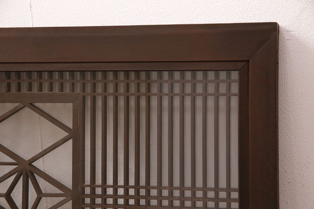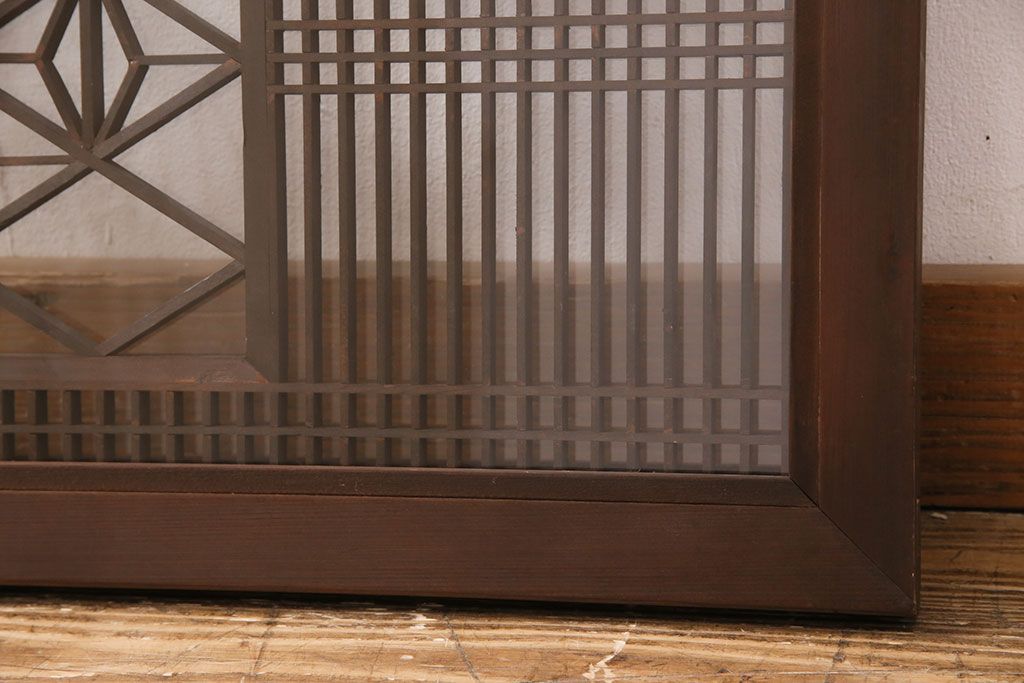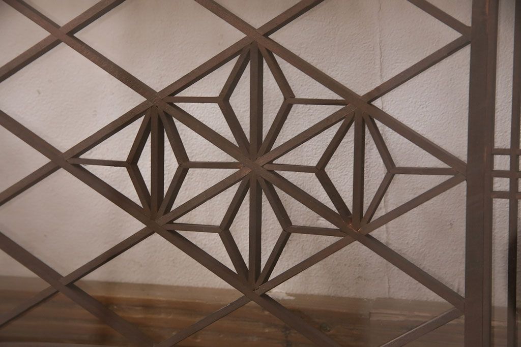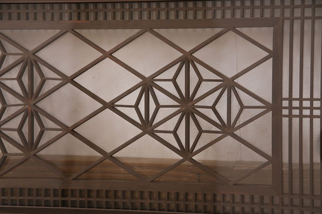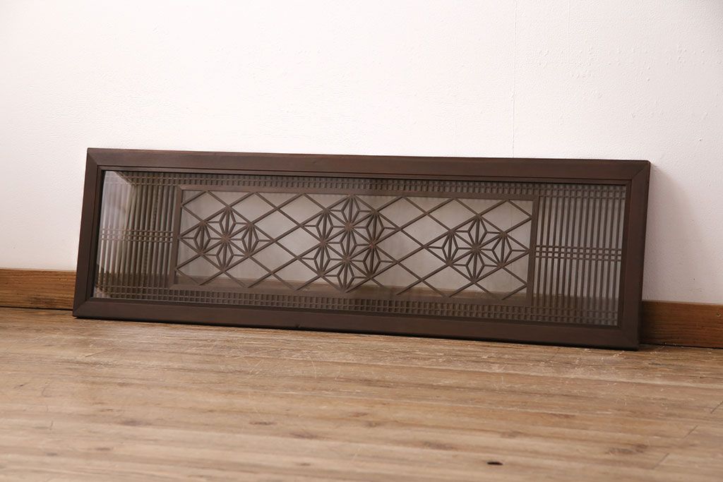 アンティーク建具 両面ガラス入り 麻の葉の組子がポイント!品のある雰囲気が素敵な欄間(明り取り、明かり取り)(R-049984)