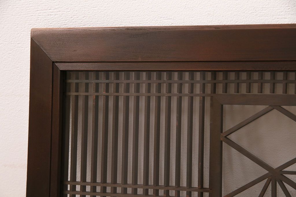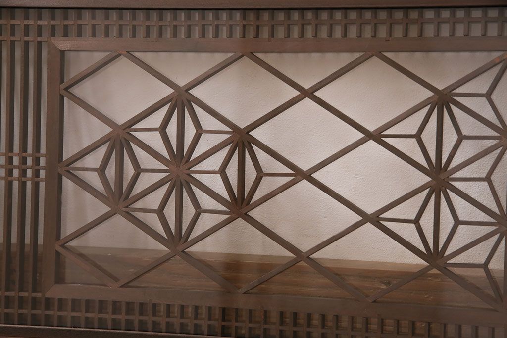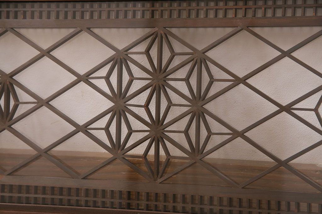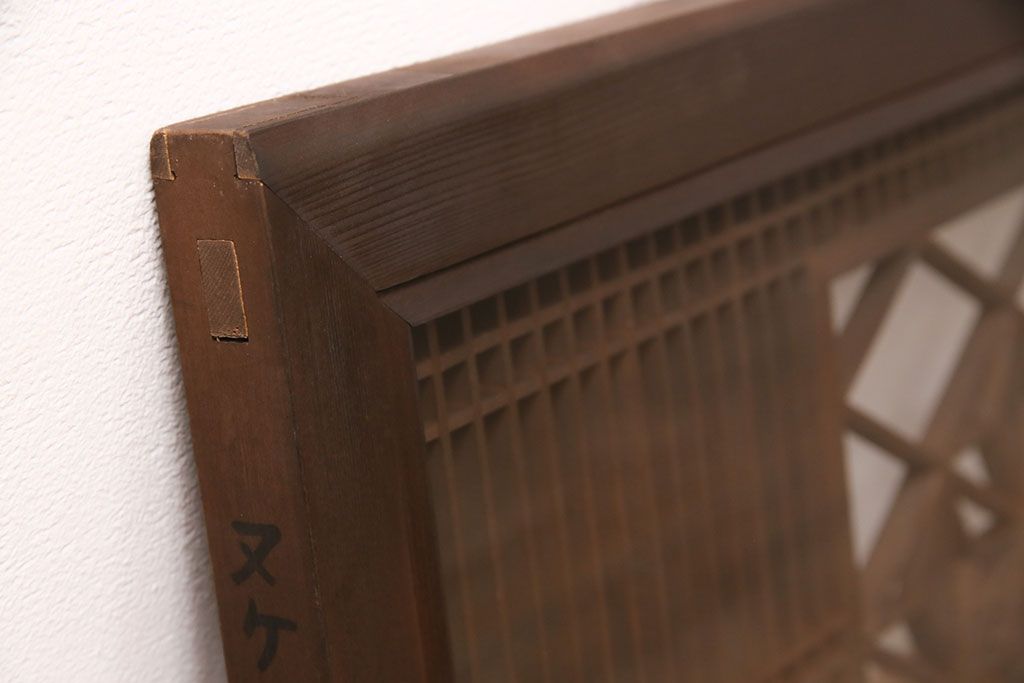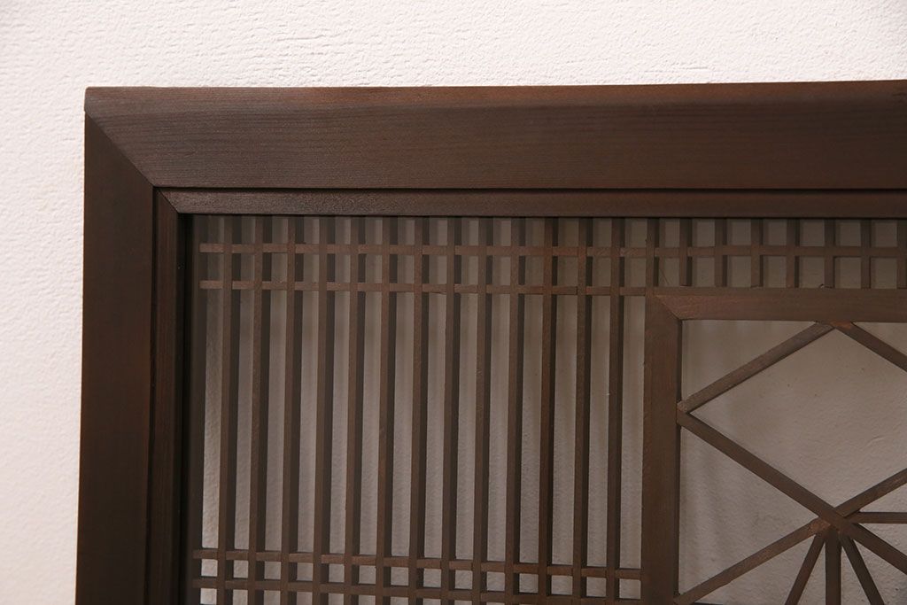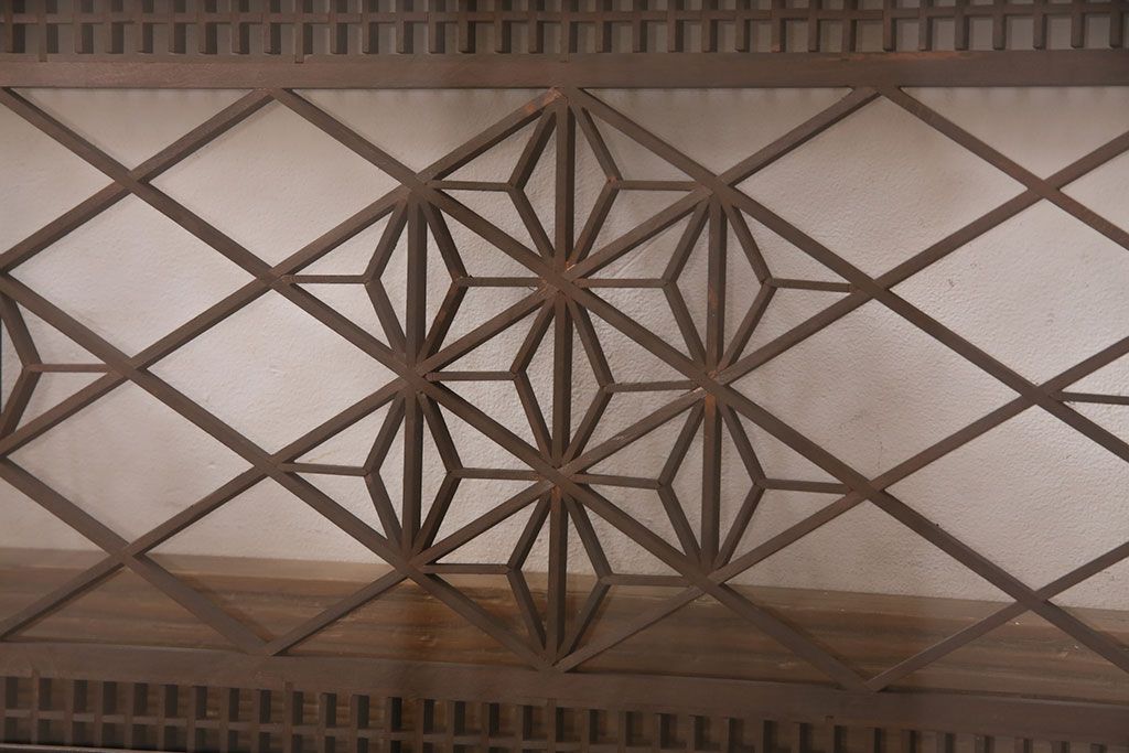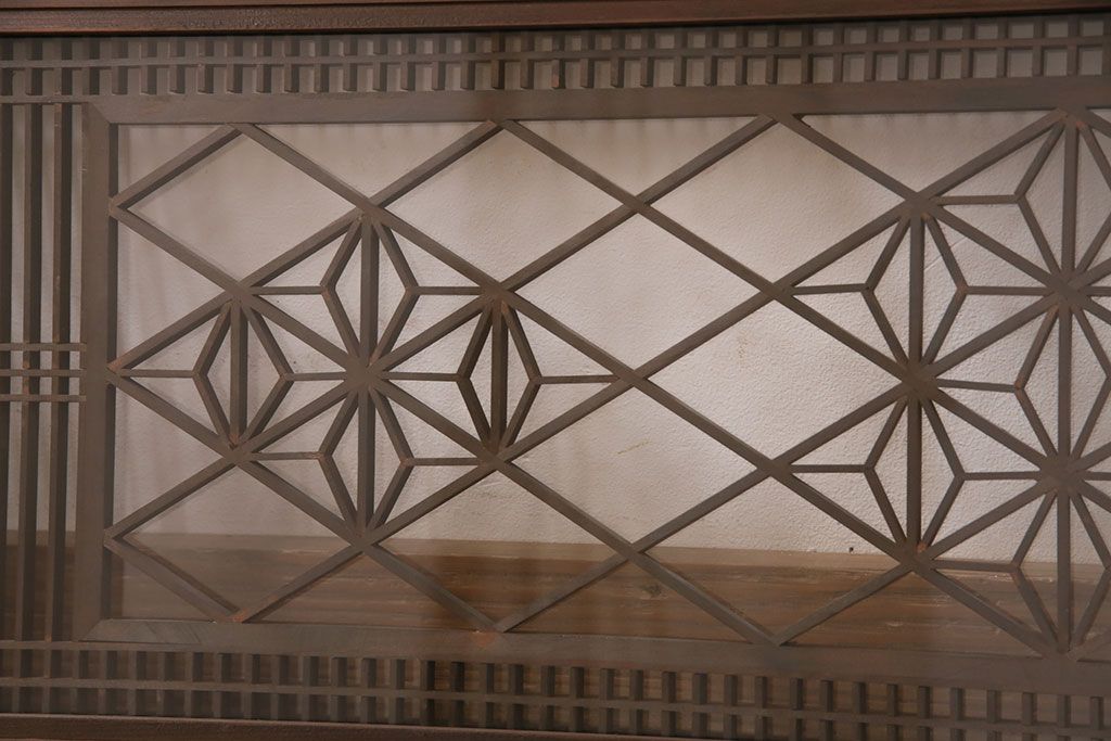 アンティーク建具 両面ガラス入り 麻の葉の組子がポイント!品のある雰囲気が素敵な欄間(明り取り、明かり取り)(R-049984)