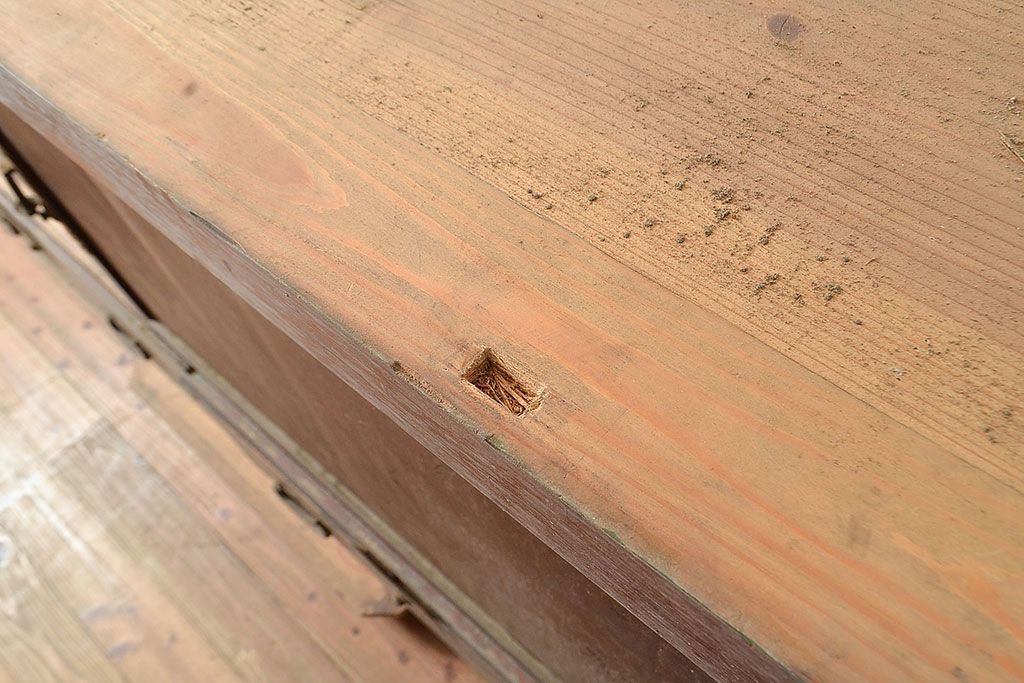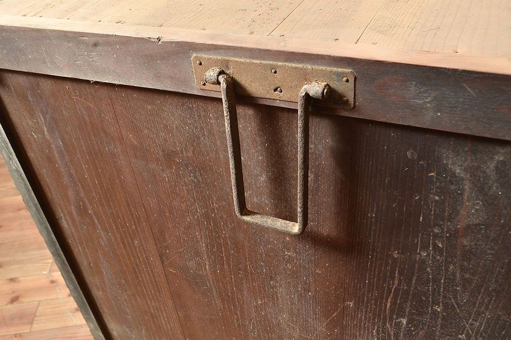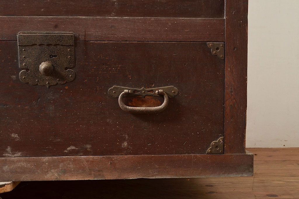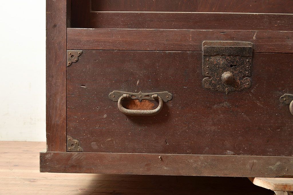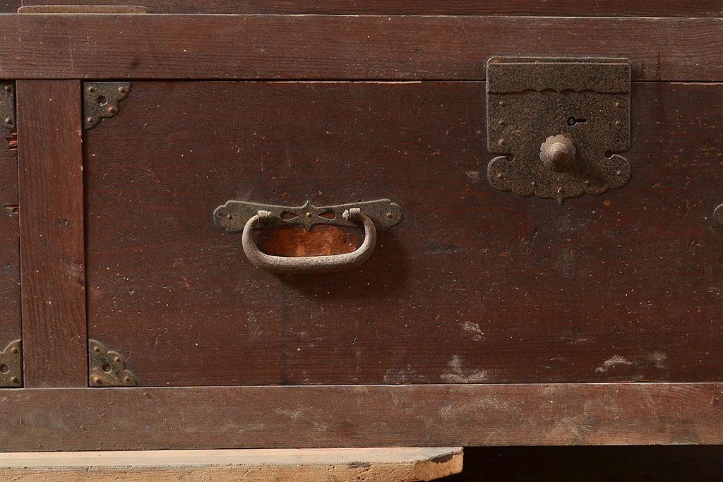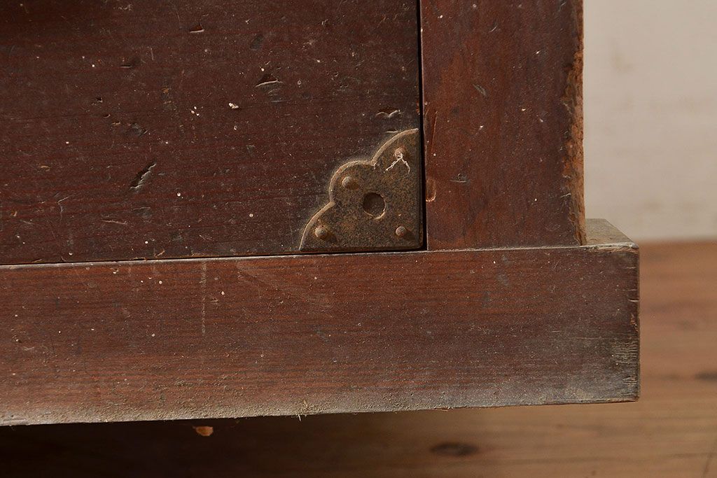 ラフジュ工房> キャビネット・戸棚> テレビ台・ローボード > 和製アンティーク 前面ヒノキ材 明治・大正期の水屋箪笥ローボード(収納箪笥、収納棚、戸棚)(R-048593)