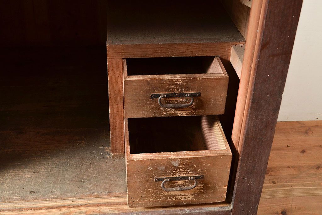 和製アンティーク 前面ヒノキ材 明治・大正期の水屋箪笥ローボード(収納箪笥、収納棚、戸棚)(R-048593)
