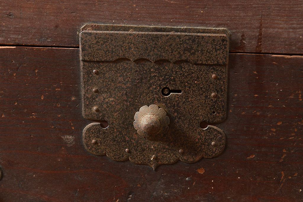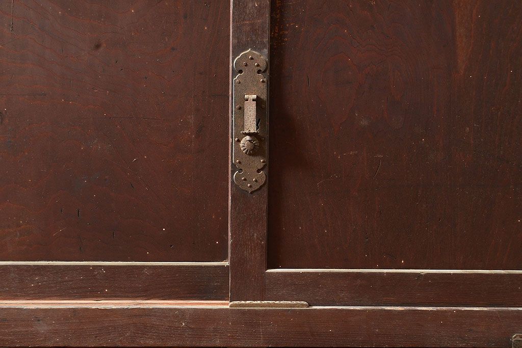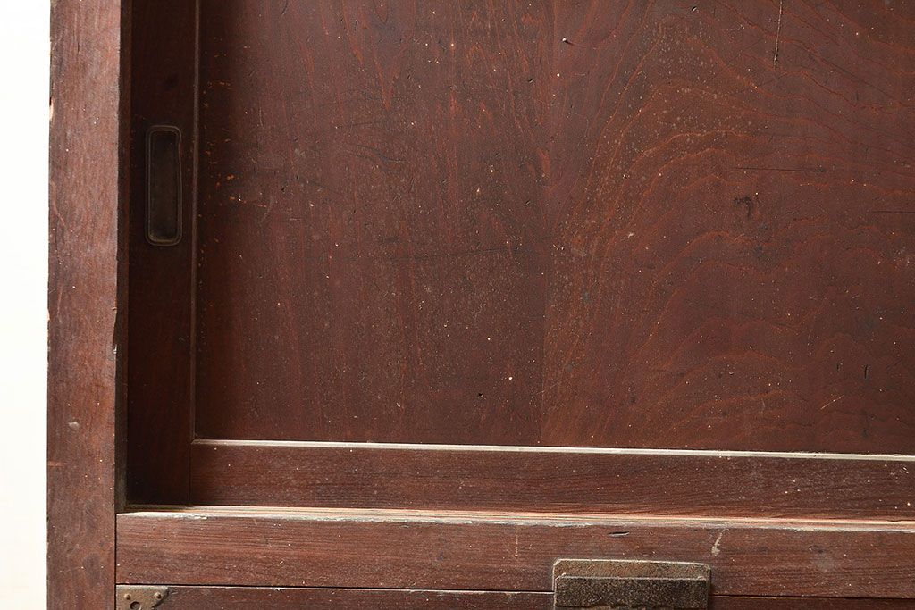ラフジュ工房> 和箪笥 > 和製アンティーク 前面ヒノキ材 明治・大正期の水屋箪笥ローボード(収納箪笥、収納棚、戸棚)(R-048593)