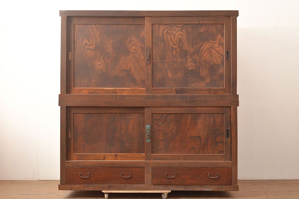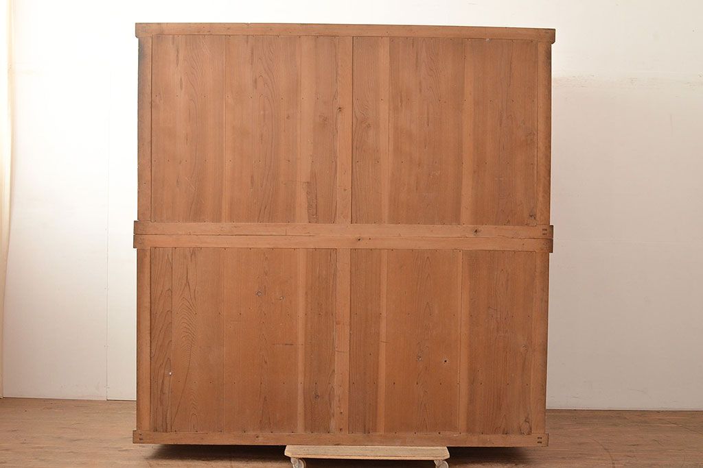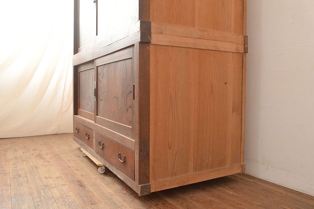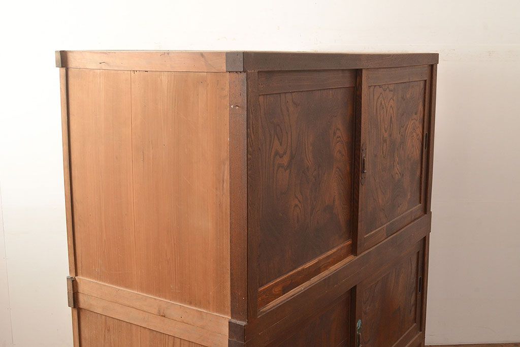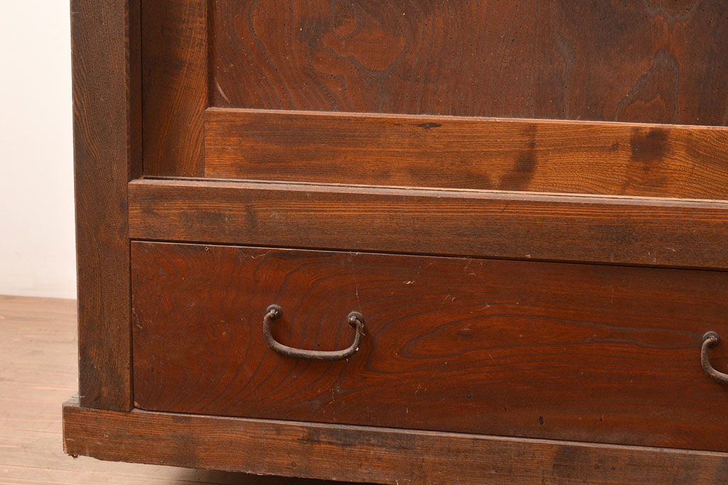 和製アンティーク 大正初期 鏡板ケヤキ材・枠ヒノキ材 収納箪笥(重ね戸棚、水屋箪笥、夜具箪笥、布団箪笥)(R-048927)