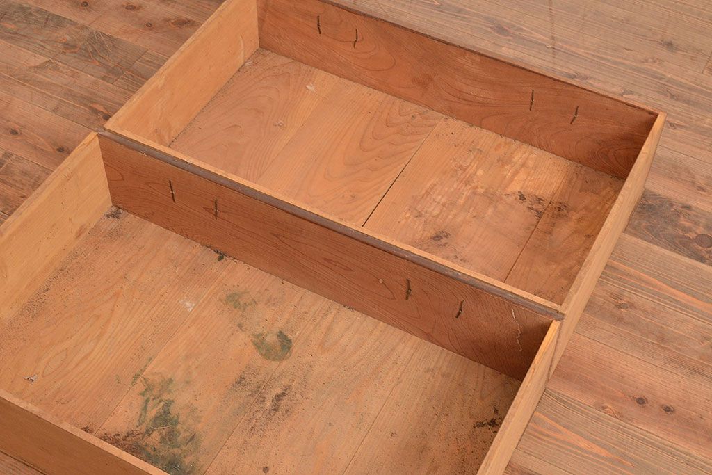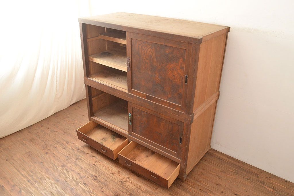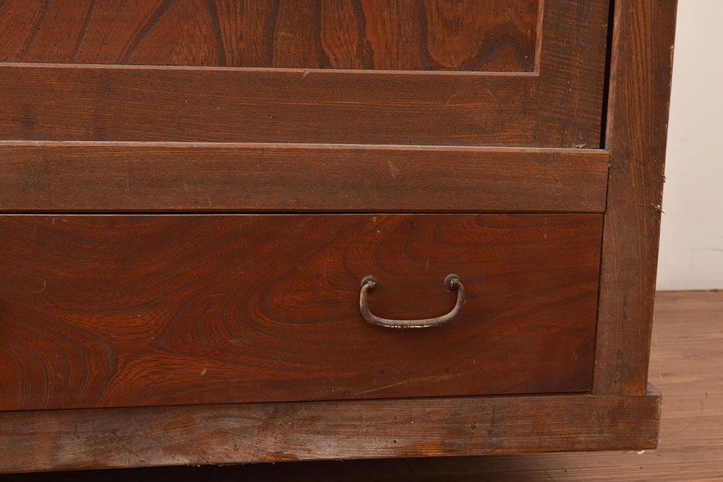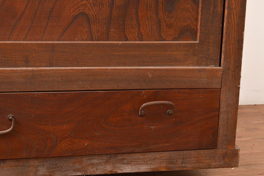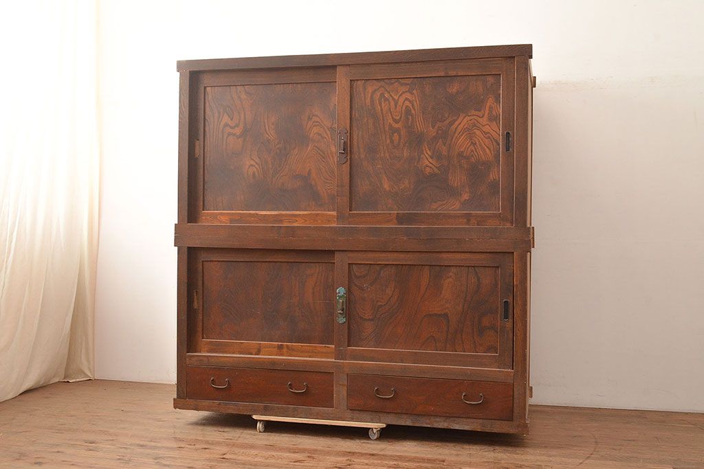 和製アンティーク 大正初期 鏡板ケヤキ材・枠ヒノキ材 収納箪笥(重ね戸棚、水屋箪笥、夜具箪笥、布団箪笥)(R-048927)