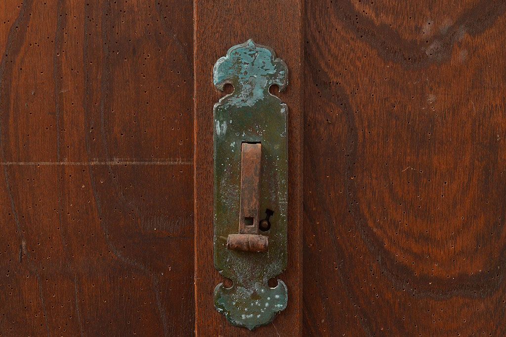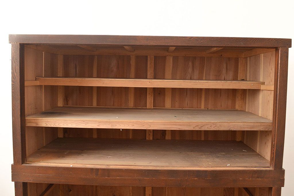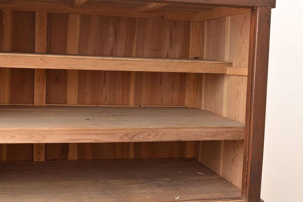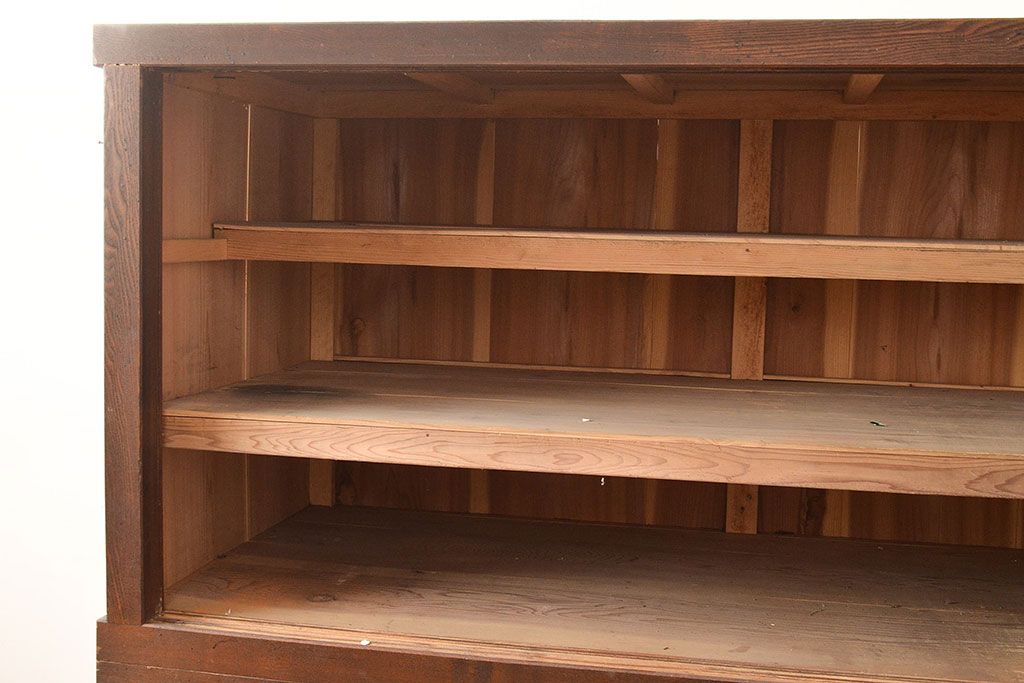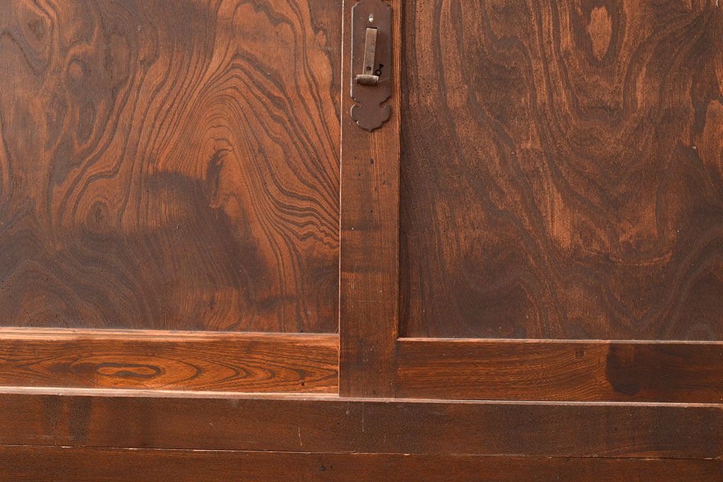 ラフジュ工房> 和箪笥> 水屋箪笥 > 和製アンティーク 大正初期 鏡板ケヤキ材・枠ヒノキ材 収納箪笥(重ね戸棚、水屋箪笥、夜具箪笥、布団箪笥)(R-048927)