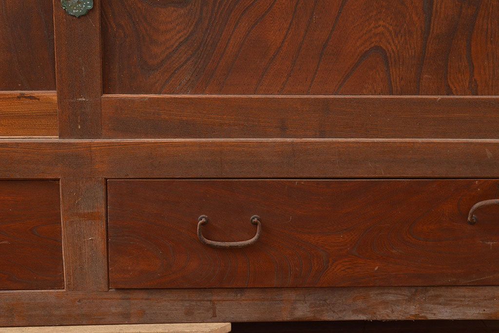 ラフジュ工房> 和箪笥 > 和製アンティーク 大正初期 鏡板ケヤキ材・枠ヒノキ材 収納箪笥(重ね戸棚、水屋箪笥、夜具箪笥、布団箪笥)(R-048927)