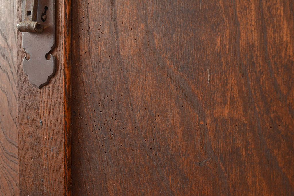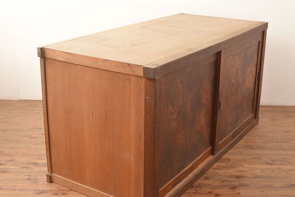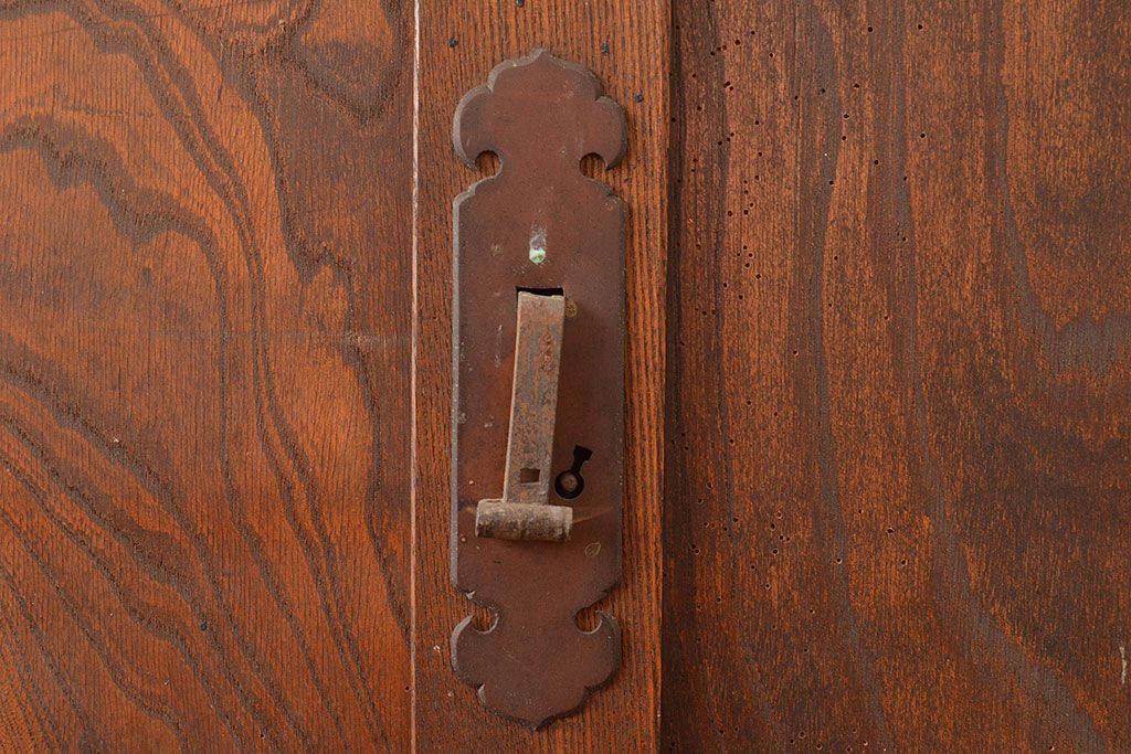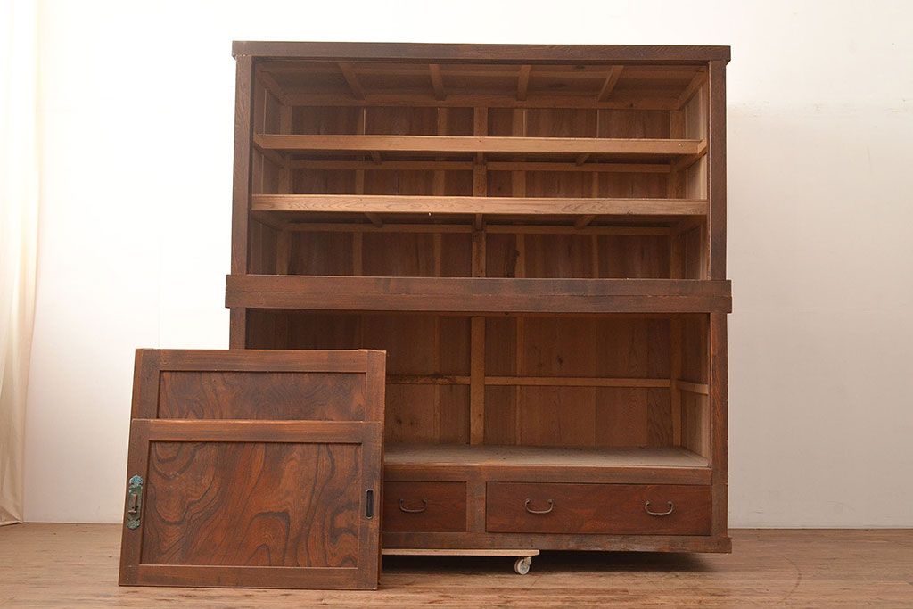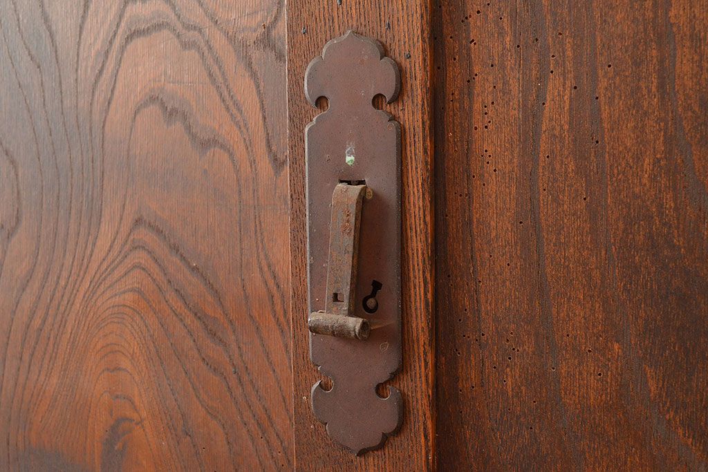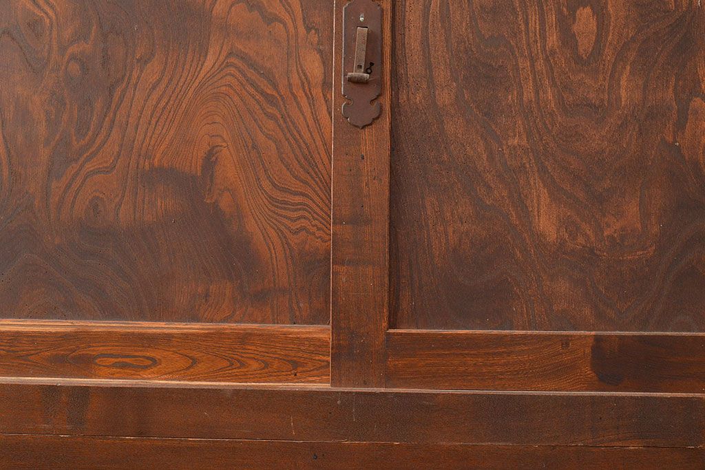 和製アンティーク 大正初期 鏡板ケヤキ材・枠ヒノキ材 重ね戸棚・上段(収納棚、サイドボード)(R-048928)