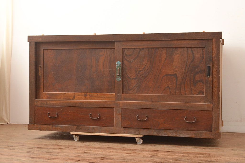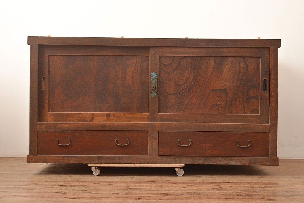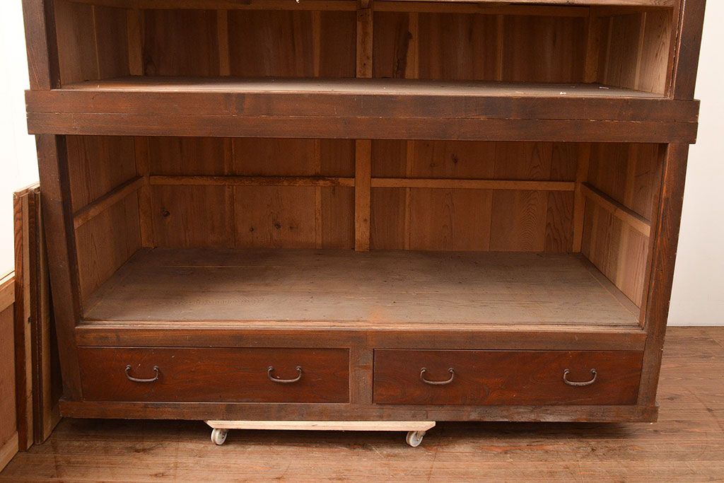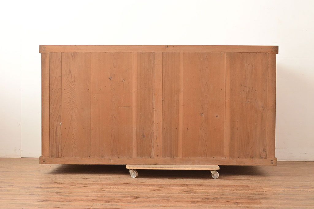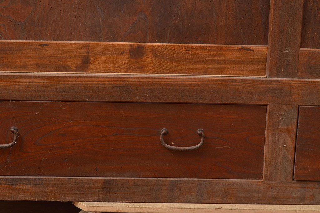キャビネット・戸棚> サイドボード > 和製アンティーク 大正初期 鏡板ケヤキ材・枠ヒノキ材 重ね戸棚・下段(収納棚、サイドボード)(R-048929)