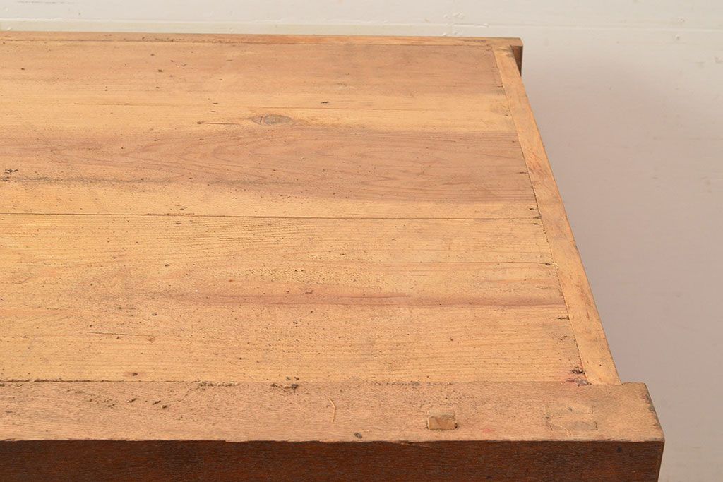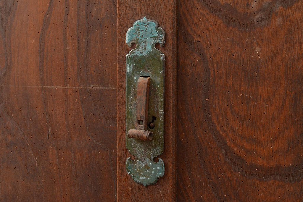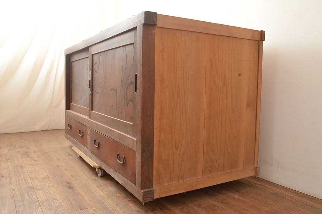 和箪笥> 水屋箪笥 > 和製アンティーク 大正初期 鏡板ケヤキ材・枠ヒノキ材 重ね戸棚・下段(収納棚、サイドボード)(R-048929)
