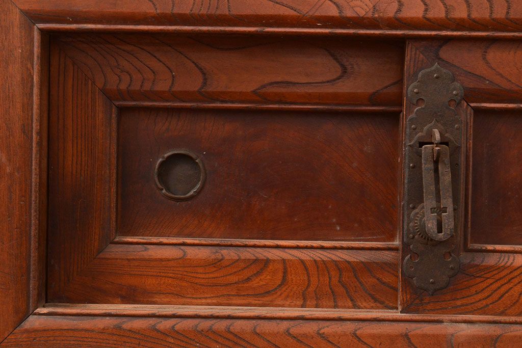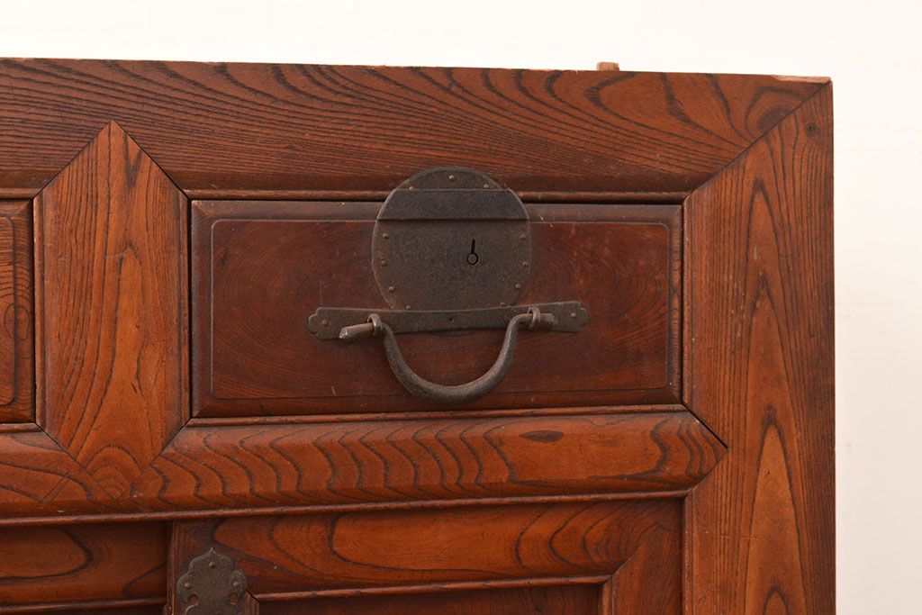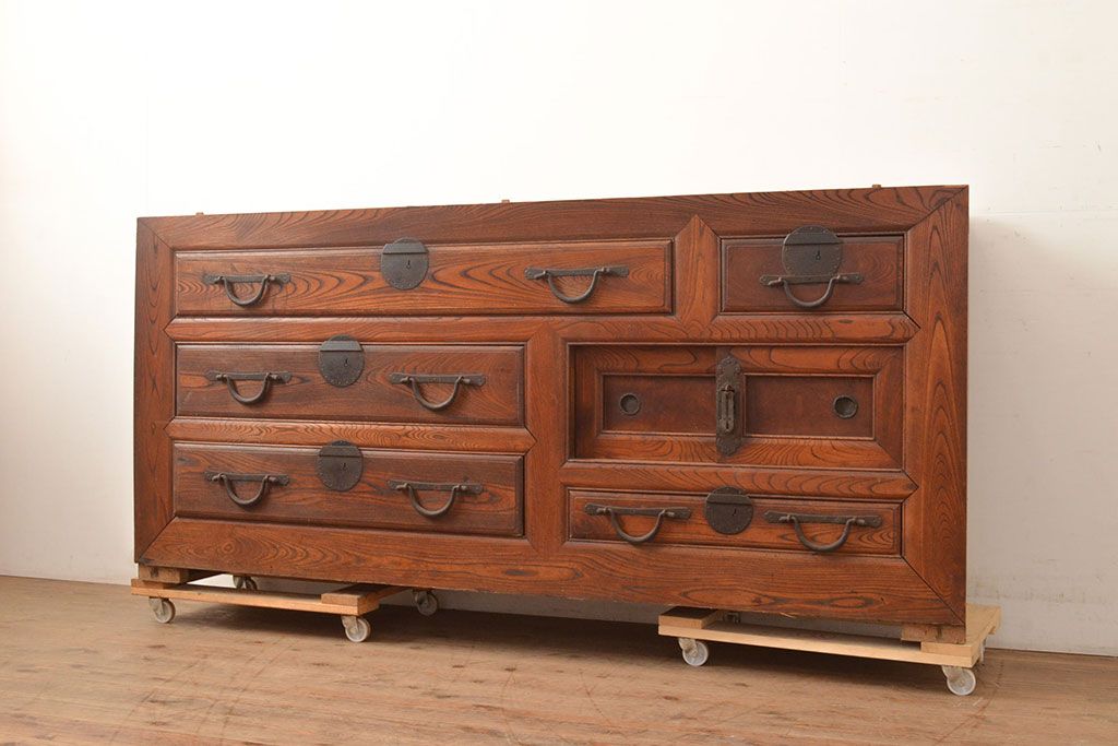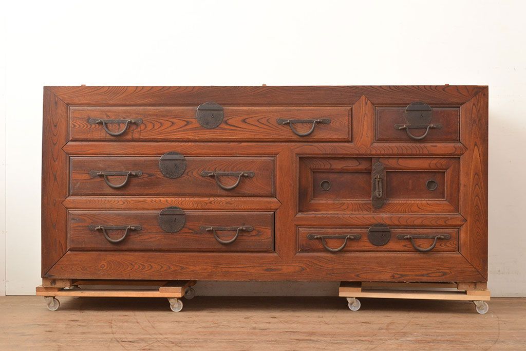 ラフジュ工房> 店長おすすめの逸品 > アンティーク家具 六尺 前面ケヤキ材 極太框 上質な空間を演出する収納箪笥サイドボード(テレビ台、夜具箪笥)(R-049299)
