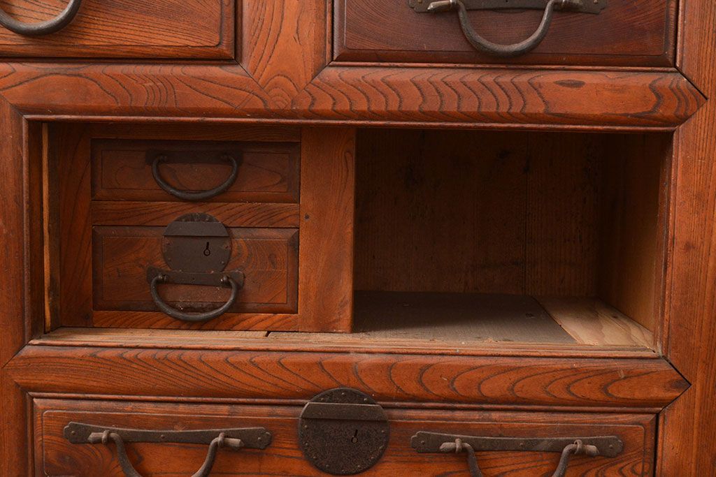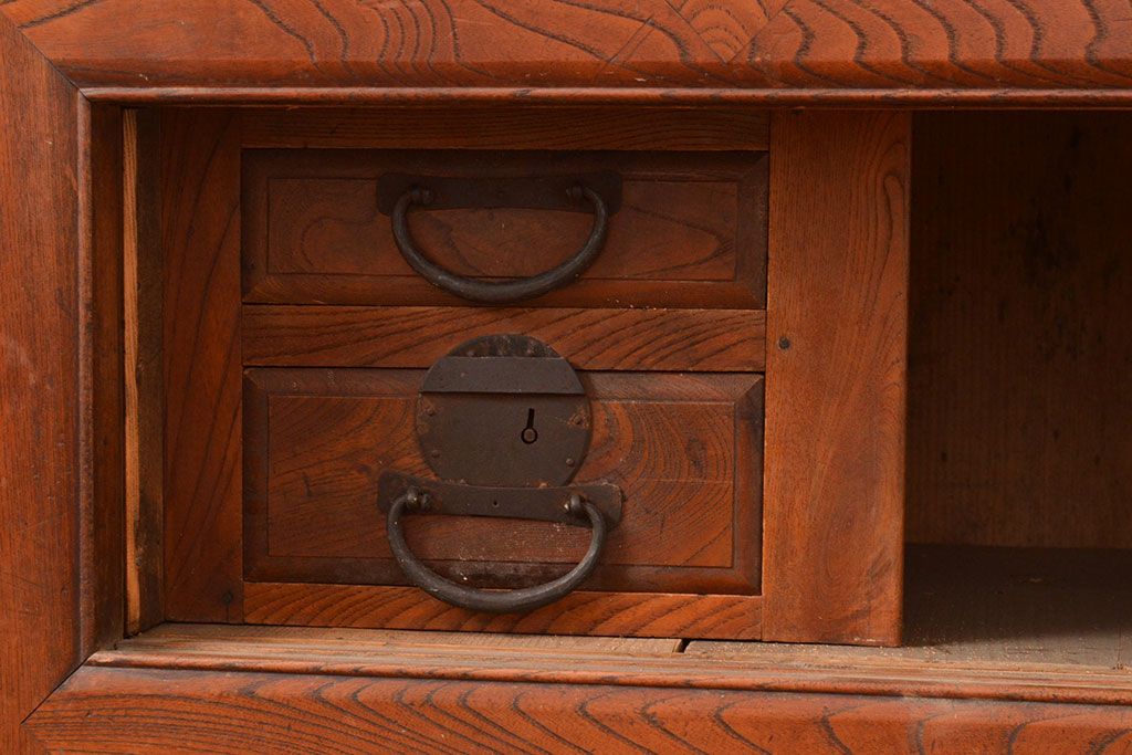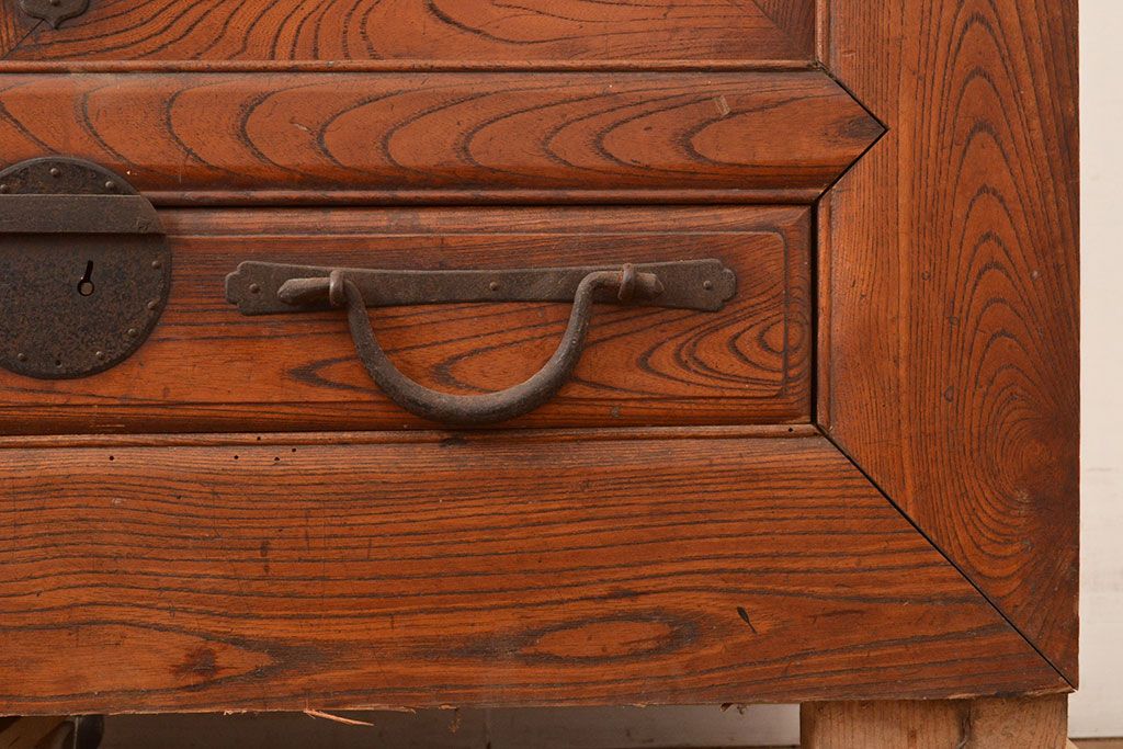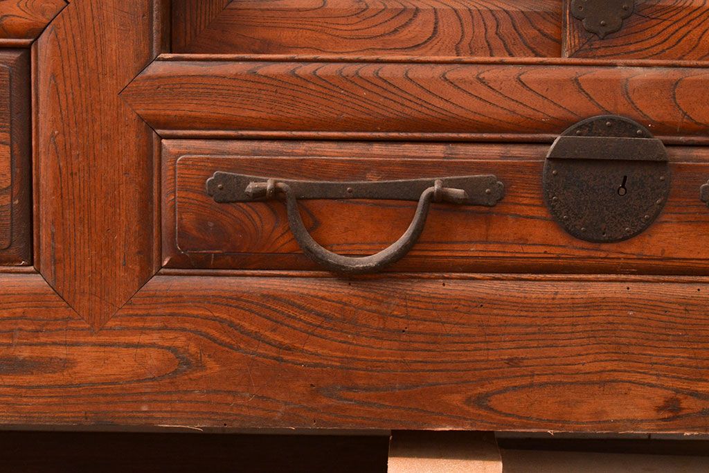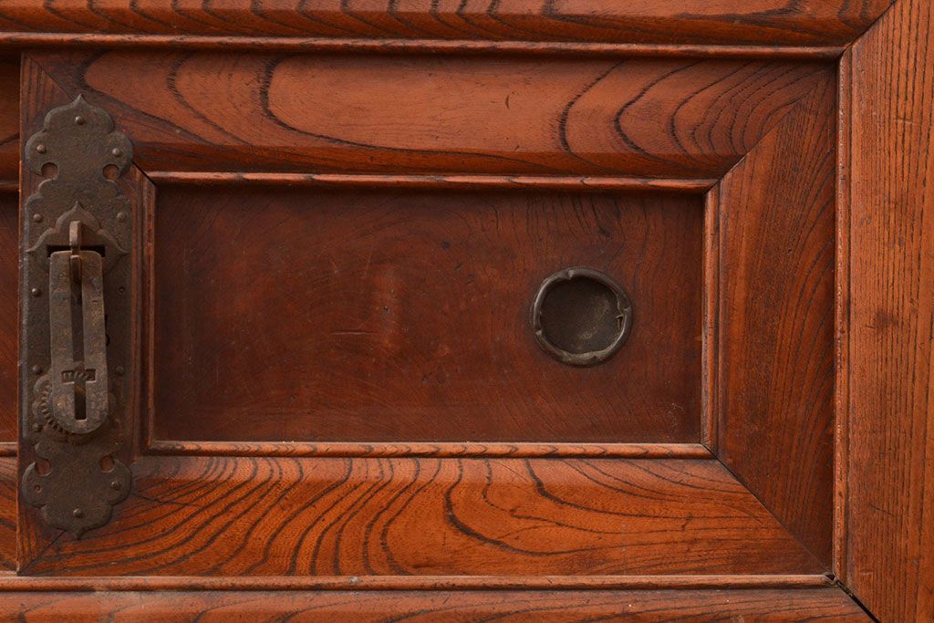 ラフジュ工房> 店長おすすめの逸品 > アンティーク家具 六尺 前面ケヤキ材 極太框 上質な空間を演出する収納箪笥サイドボード(テレビ台、夜具箪笥)(R-049299)