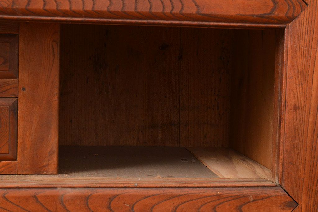 ラフジュ工房> キャビネット・戸棚> サイドボード > アンティーク家具 六尺 前面ケヤキ材 極太框 上質な空間を演出する収納箪笥サイドボード(テレビ台、夜具箪笥)(R-049299)
