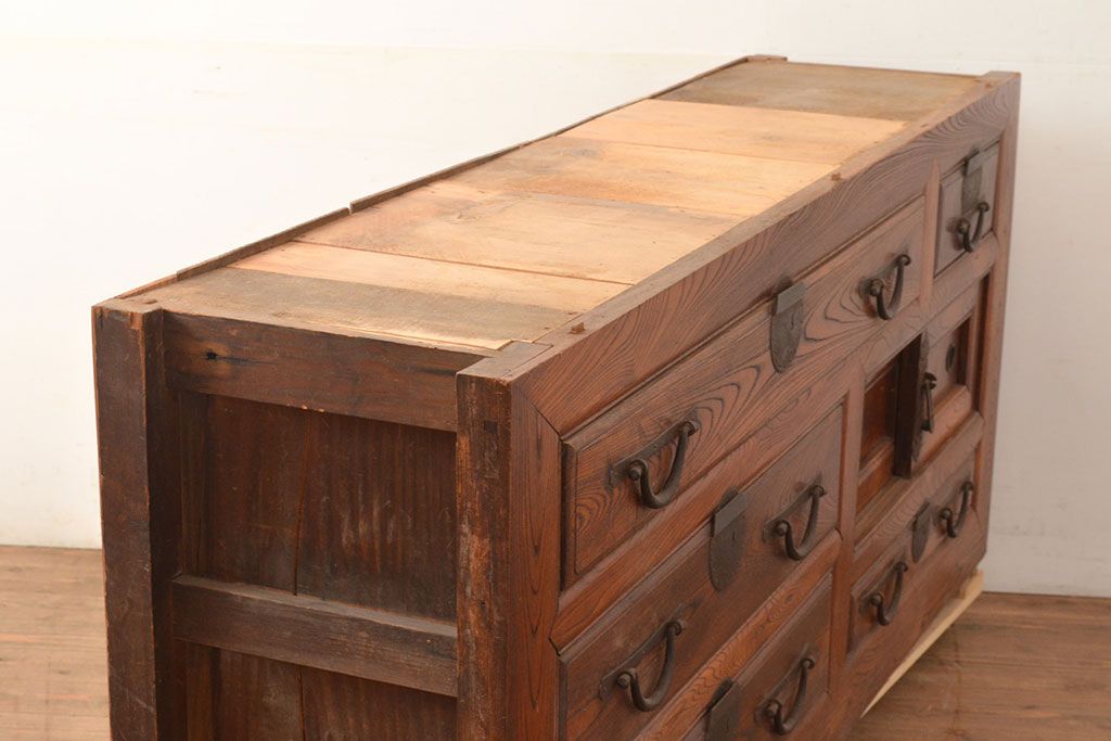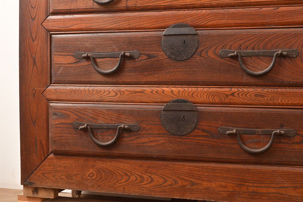 ラフジュ工房> 和箪笥> 夜具箪笥 > アンティーク家具 六尺 前面ケヤキ材 極太框 上質な空間を演出する収納箪笥サイドボード(テレビ台、夜具箪笥)(R-049299)