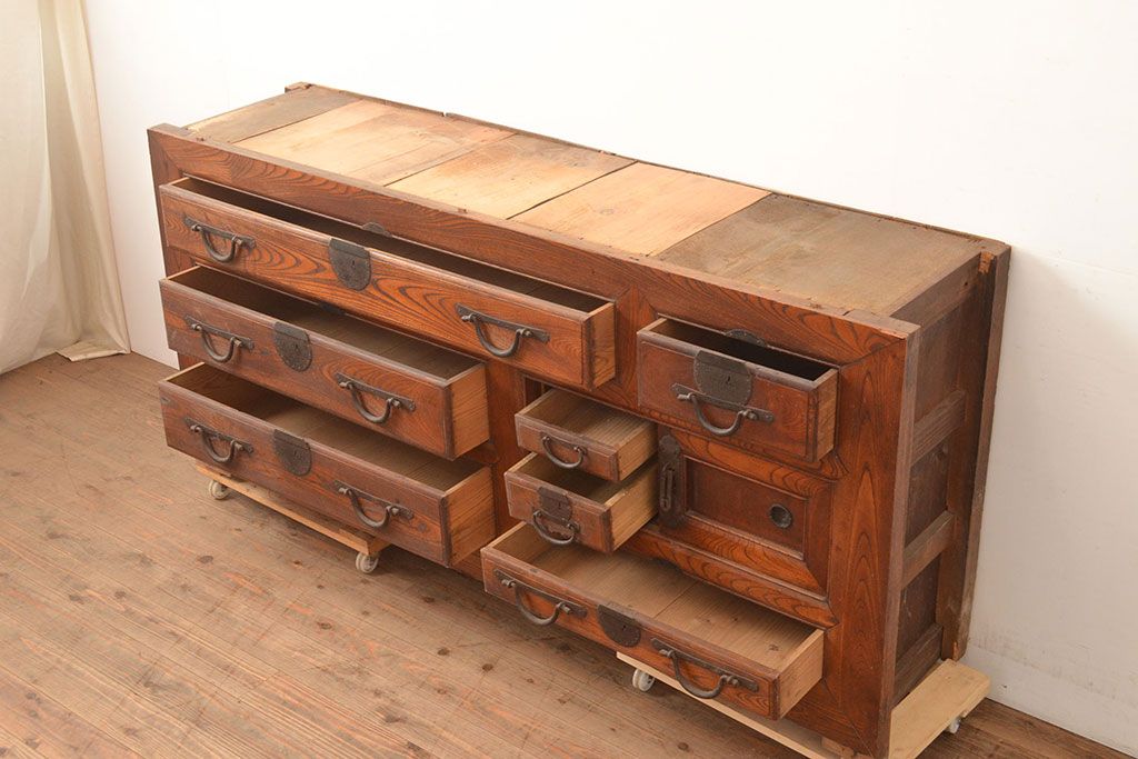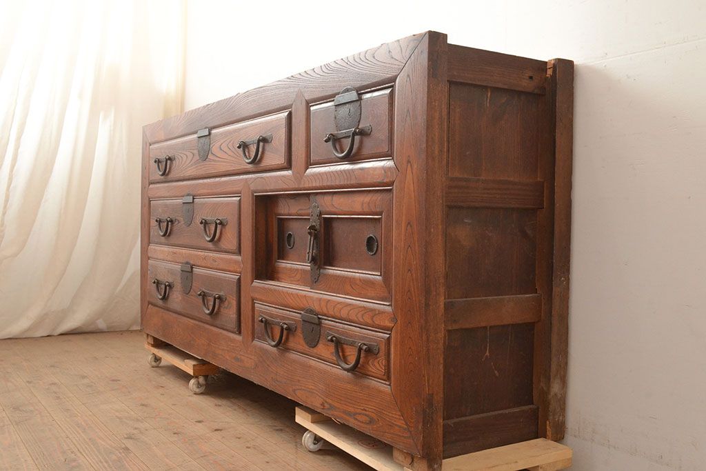 アンティーク家具 六尺 前面ケヤキ材 極太框 上質な空間を演出する収納箪笥サイドボード(テレビ台、夜具箪笥)(R-049299)