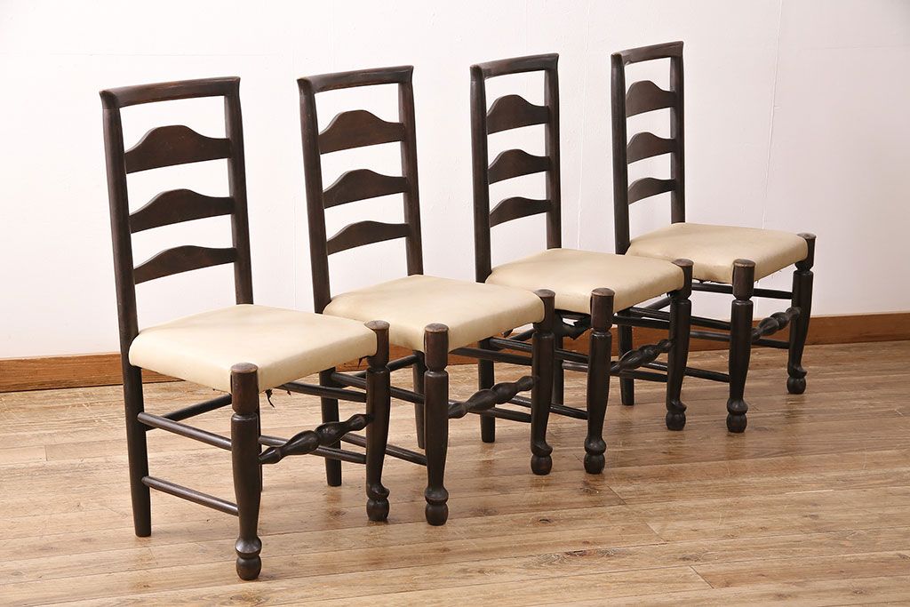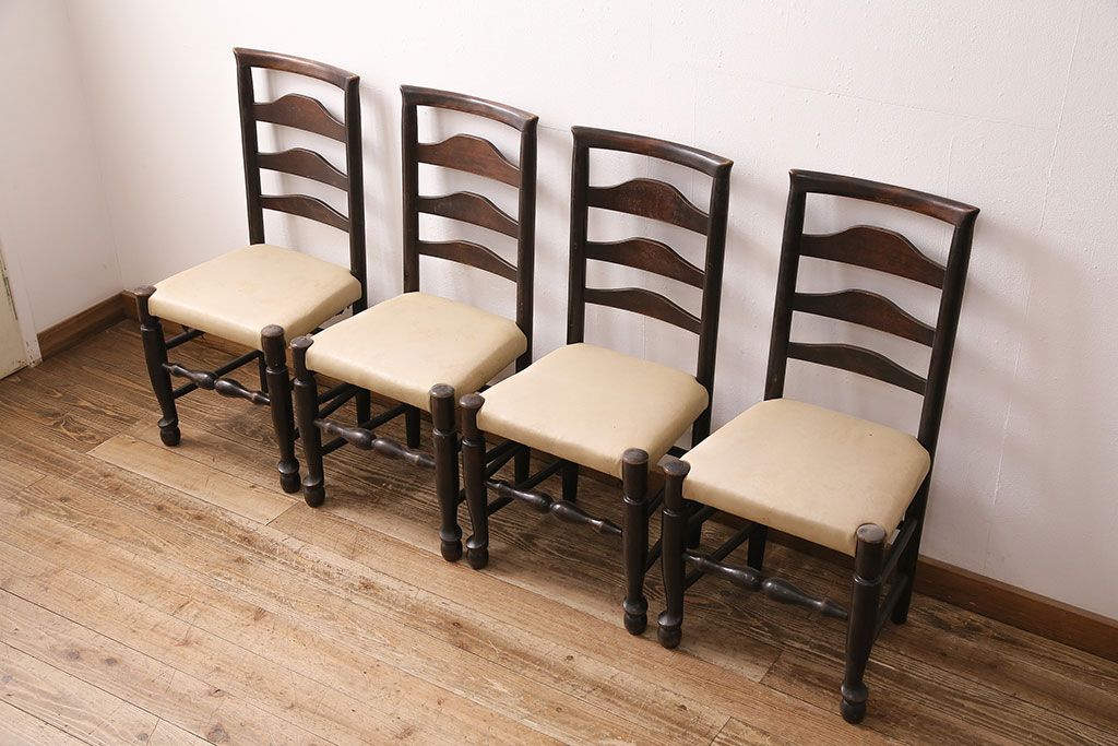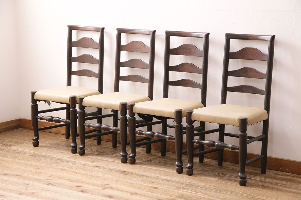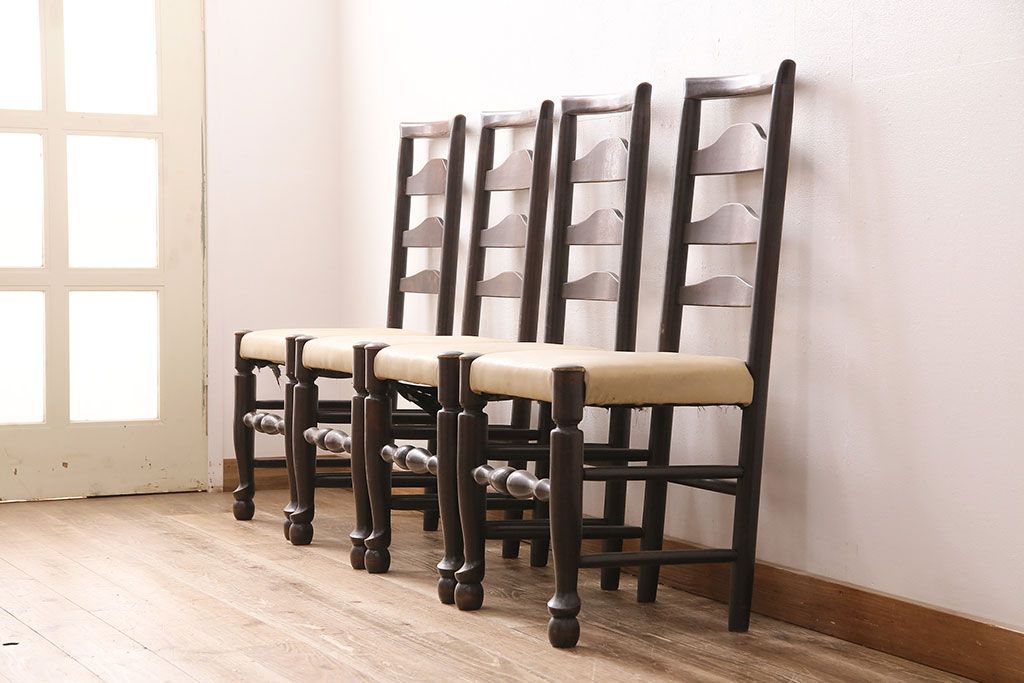 状態が気になる方には現状販売はおすすめできませんので、慎重なご検討をお願いいたします。ビンテージ 松本民芸家具 NB型チェア4脚セット(ダイニングチェア、椅子)(R-048202)です。