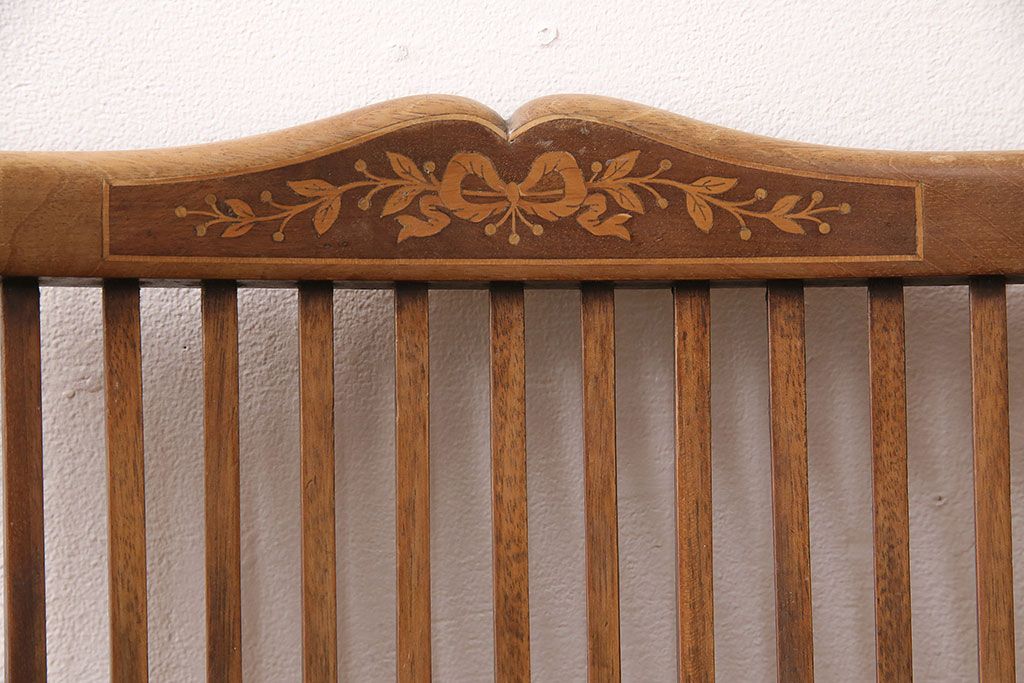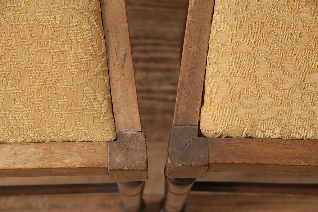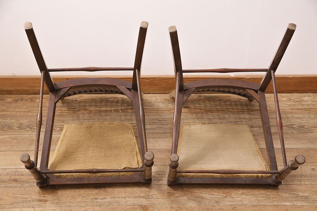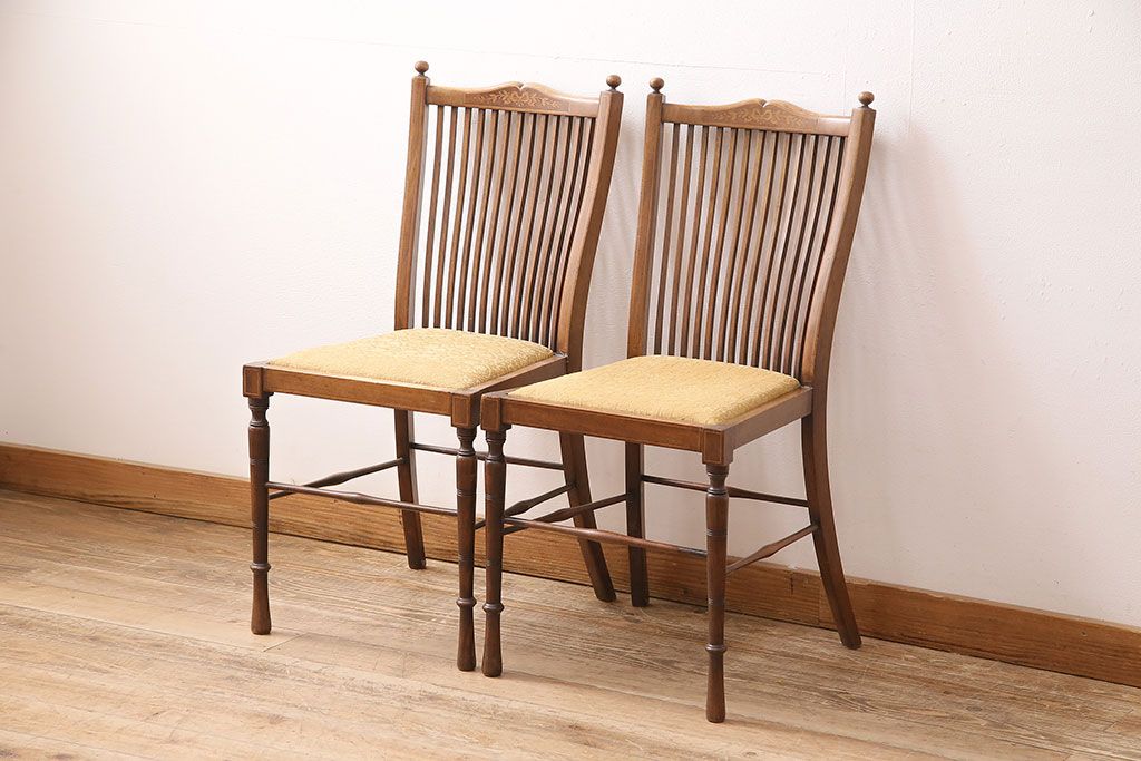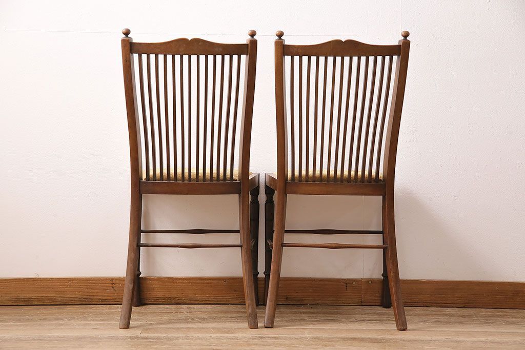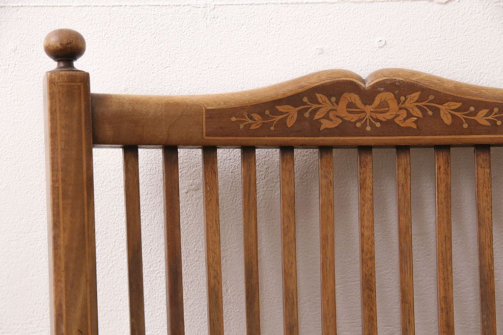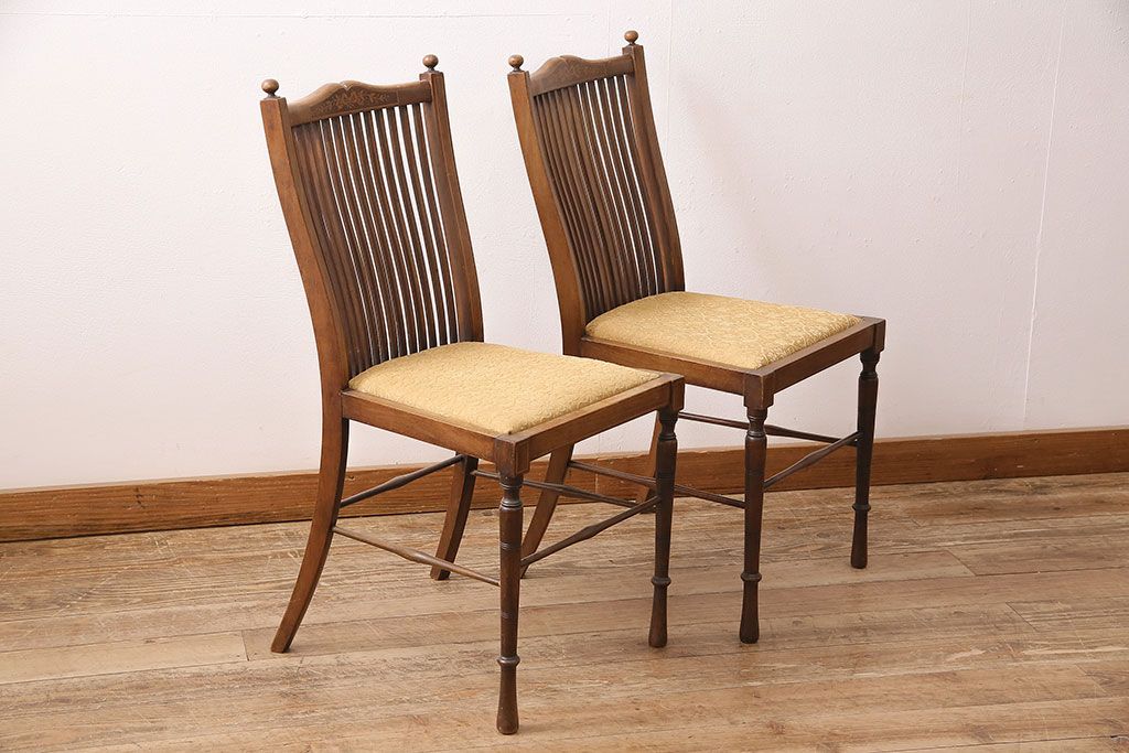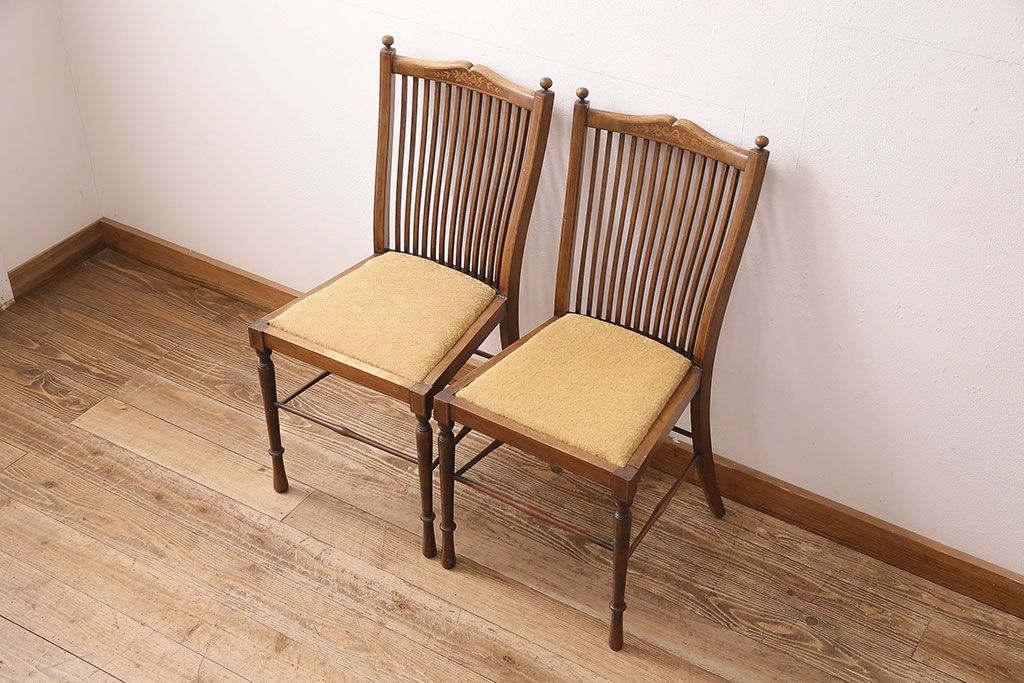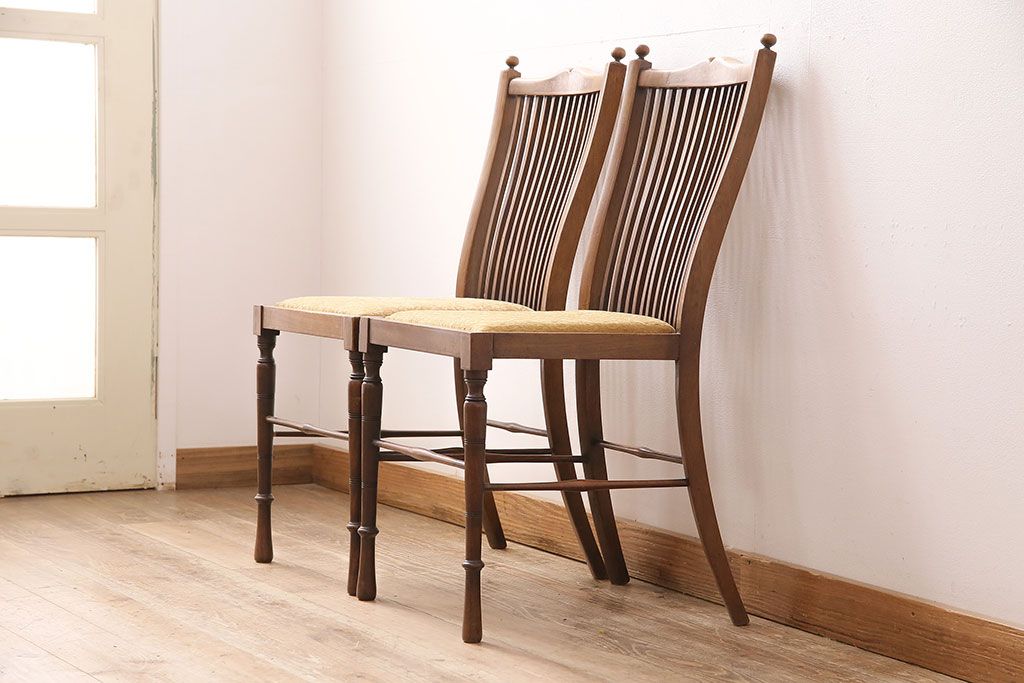 状態が気になる方には現状販売はおすすめできませんので、慎重なご検討をお願いいたします。フランスアンティーク 上手物! マホガニー材 象嵌入りの珍しいデザインのチェア2脚セット(ダイニングチェア)(R-048098)です。