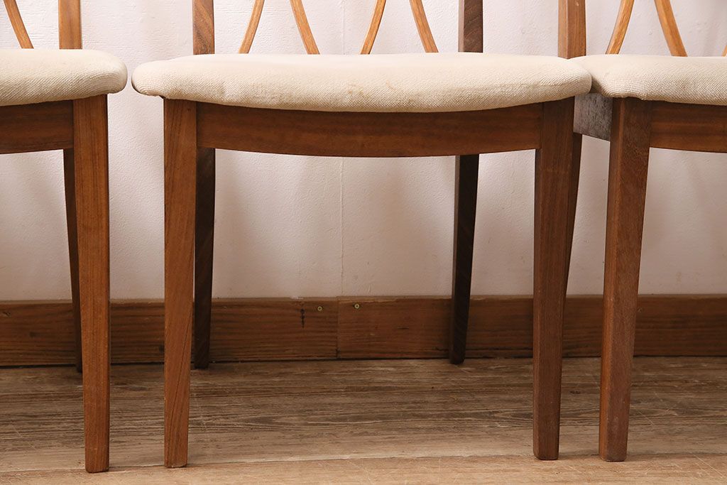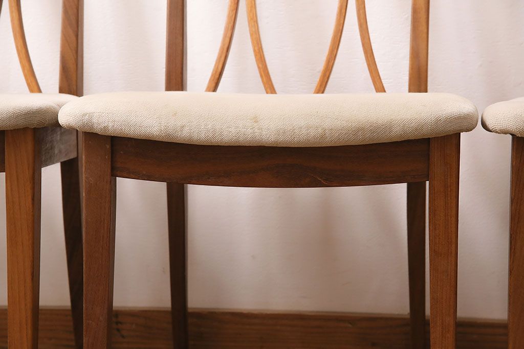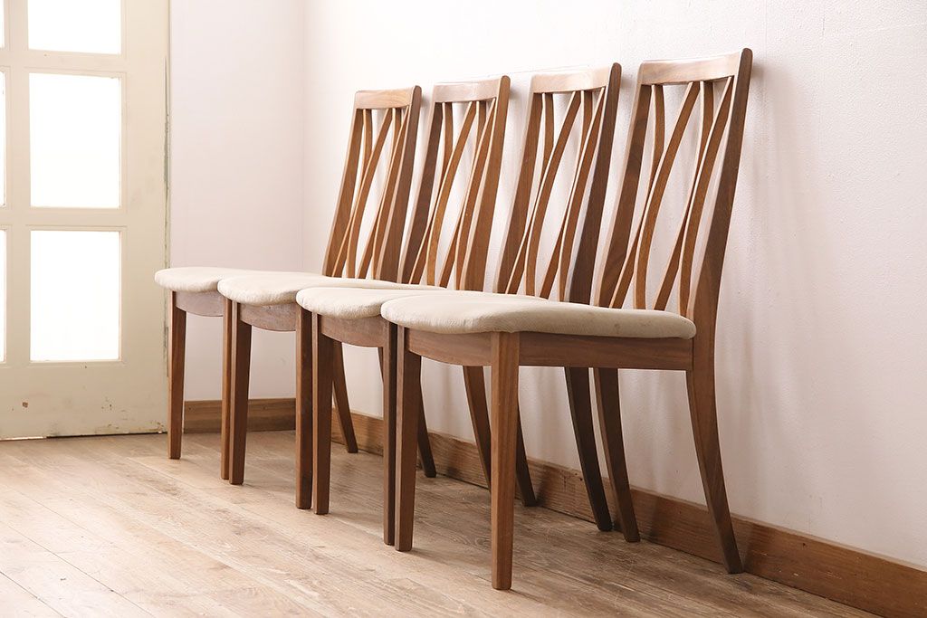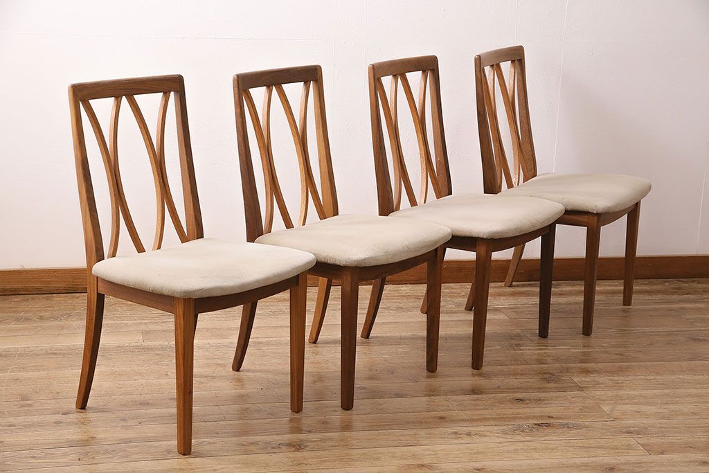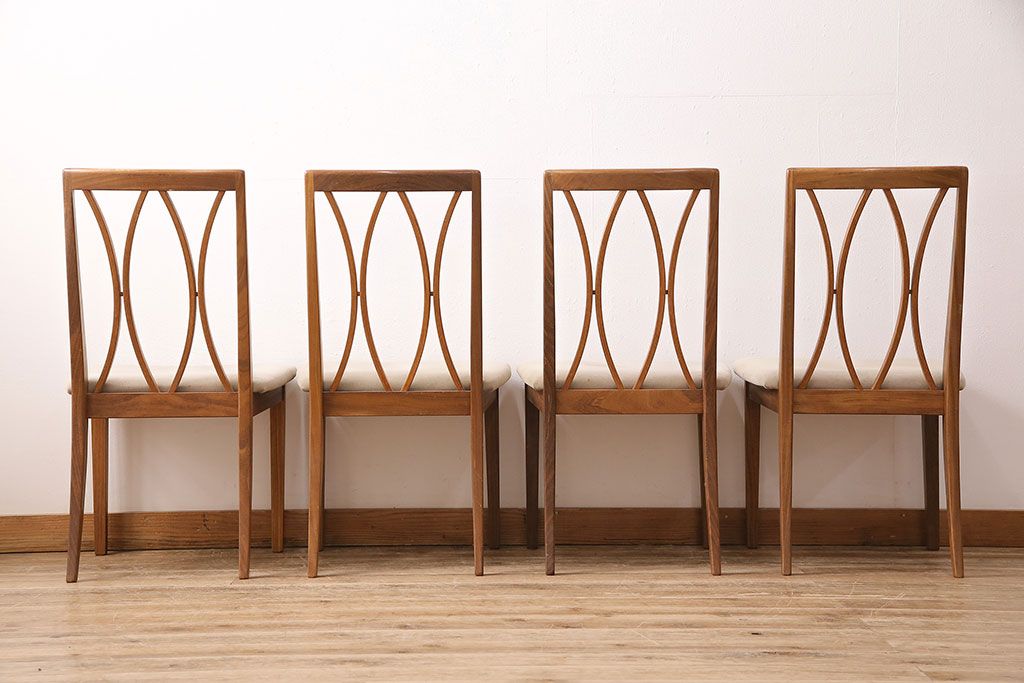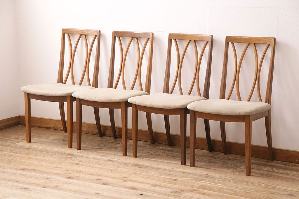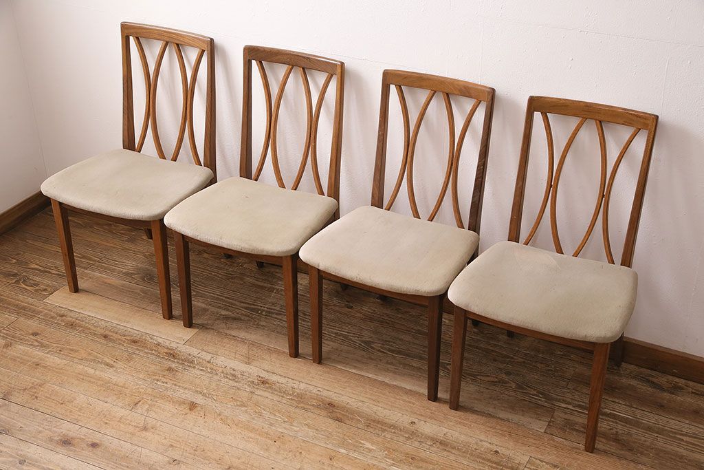 イギリスヴィンテージ G-PLAN(ジープラン) X-back(エックスバック)がお洒落なチーク材製のチェア4脚セット(ダイニングチェア、椅子)(R-048100)です。