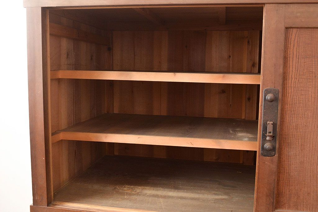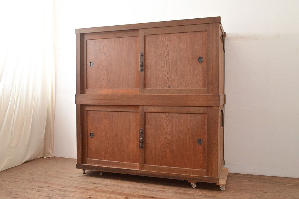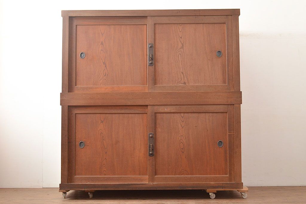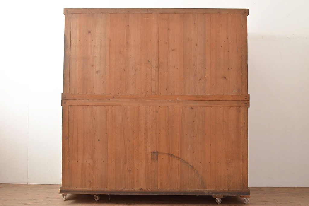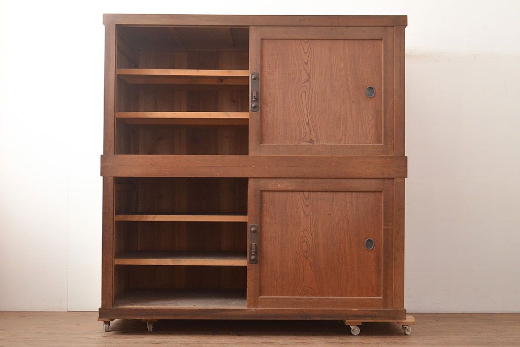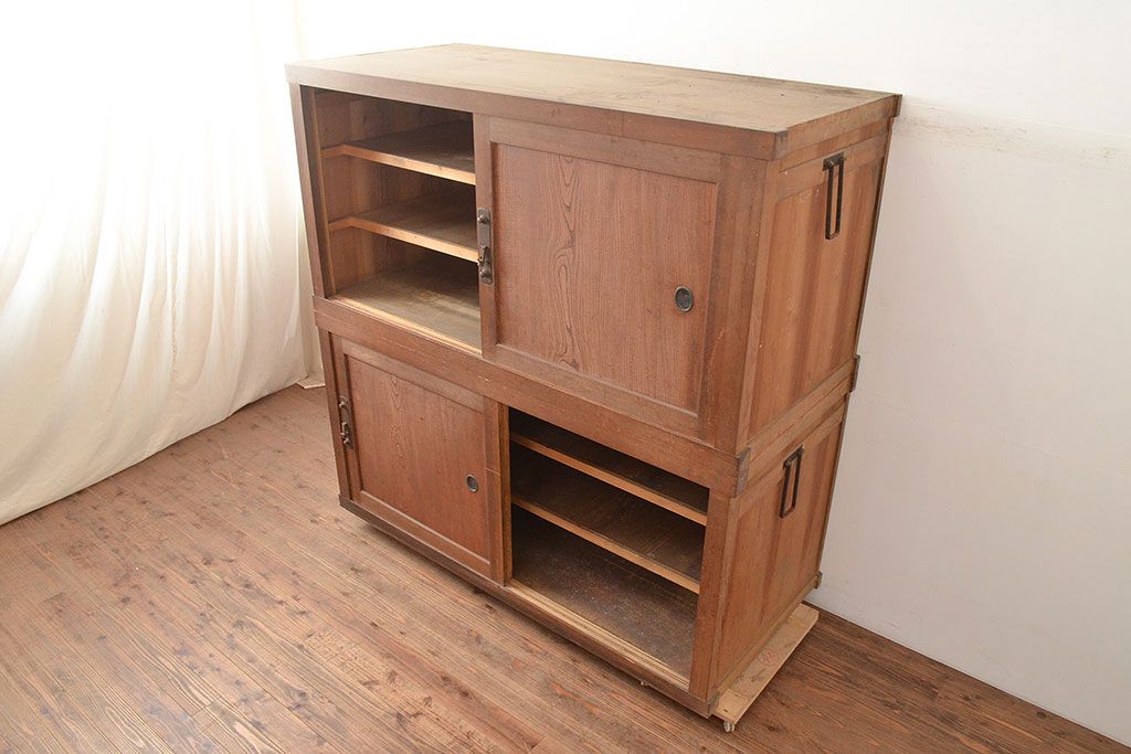 和箪笥> 夜具箪笥 > 和製アンティーク 明治〜大正期 鏡板ケヤキ材・枠ヒノキ材 重ね戸棚(水屋箪笥、夜具箪笥、布団箪笥、収納箪笥)(R-048765)