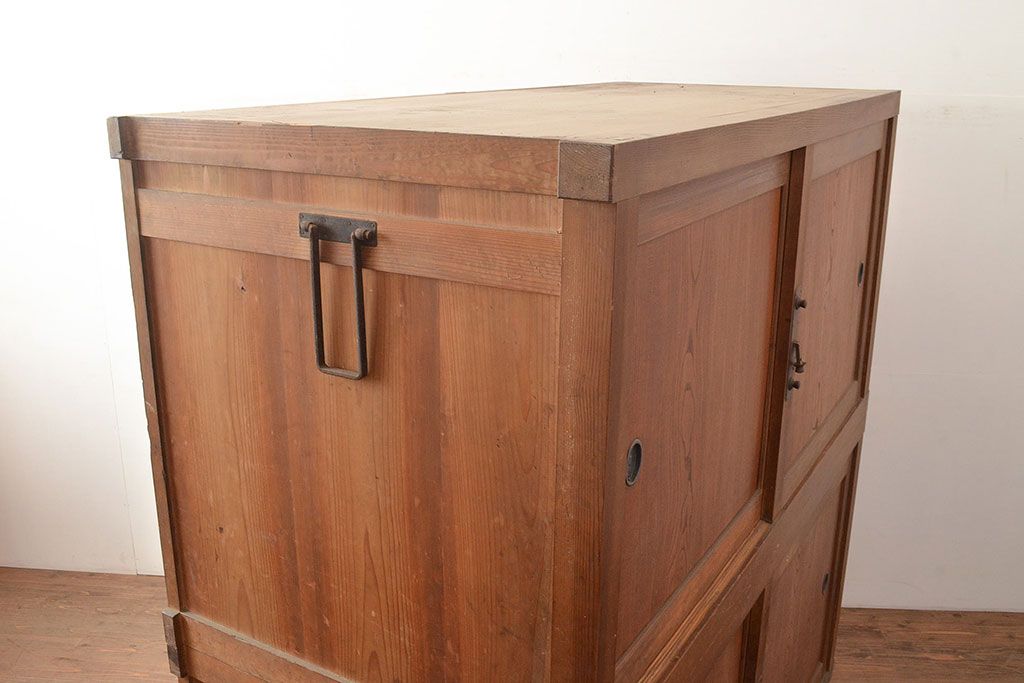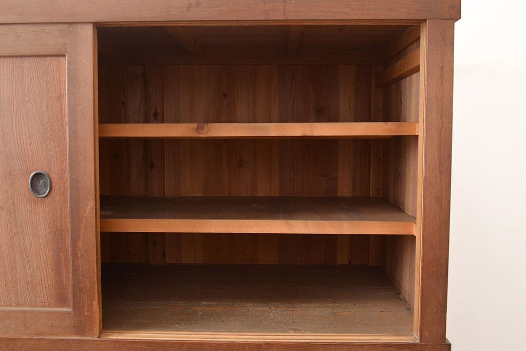 和箪笥> 水屋箪笥 > 和製アンティーク 明治〜大正期 鏡板ケヤキ材・枠ヒノキ材 重ね戸棚(水屋箪笥、夜具箪笥、布団箪笥、収納箪笥)(R-048765)
