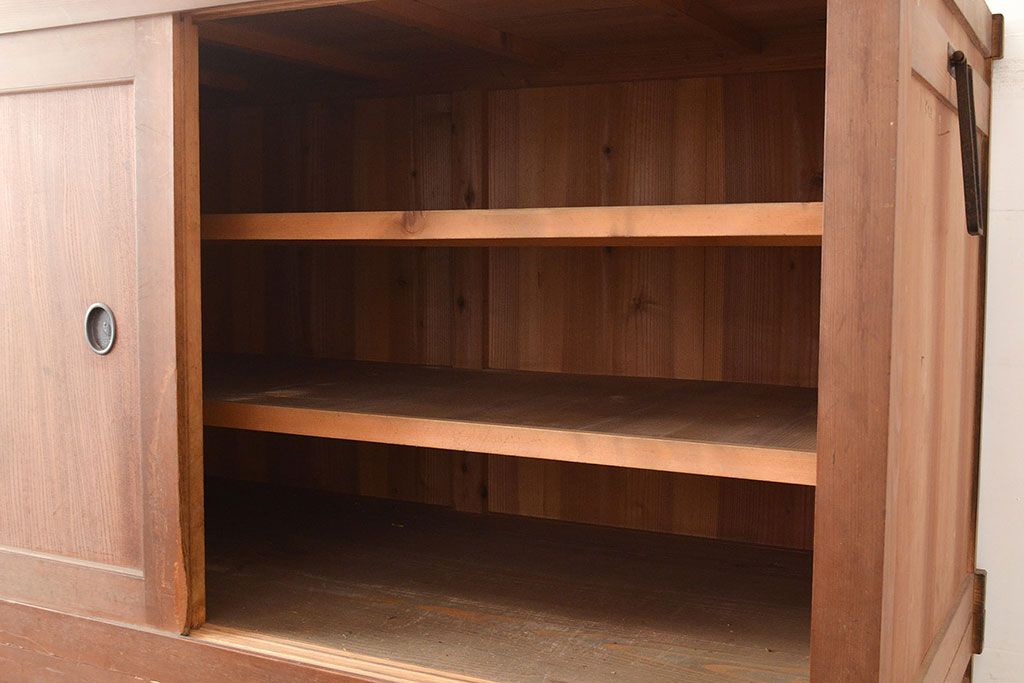 和箪笥 > 和製アンティーク 明治〜大正期 鏡板ケヤキ材・枠ヒノキ材 重ね戸棚(水屋箪笥、夜具箪笥、布団箪笥、収納箪笥)(R-048765)