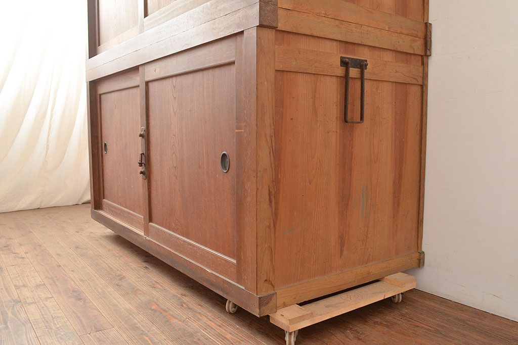 和製アンティーク 明治〜大正期 鏡板ケヤキ材・枠ヒノキ材 重ね戸棚(水屋箪笥、夜具箪笥、布団箪笥、収納箪笥)(R-048765)