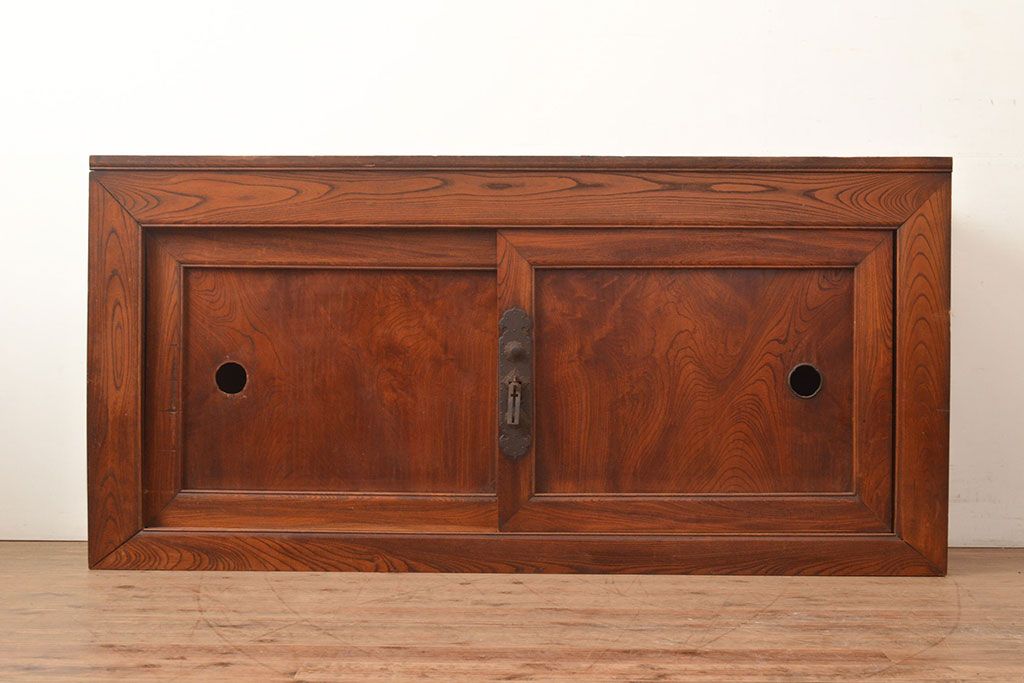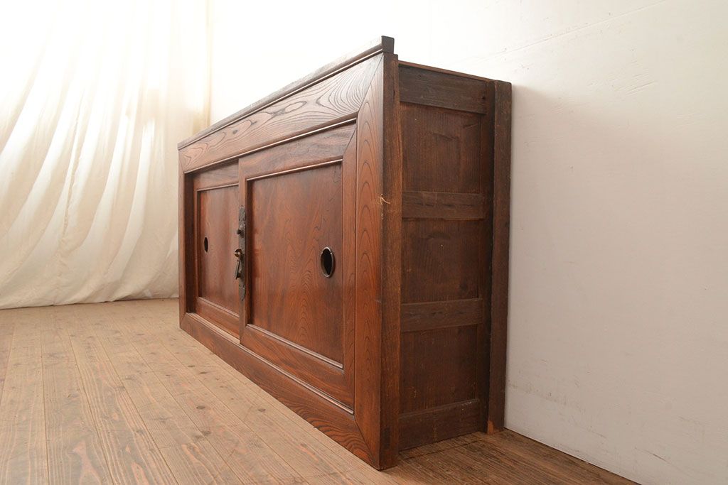キャビネット・戸棚> サイドボード > アンティーク家具 和製アンティーク 上手物!六尺 前面総ケヤキ材 美しい杢目を堪能できる箪笥サイドボード(収納箪笥、夜具箪笥、布団箪笥、水屋箪笥)(R-049298)