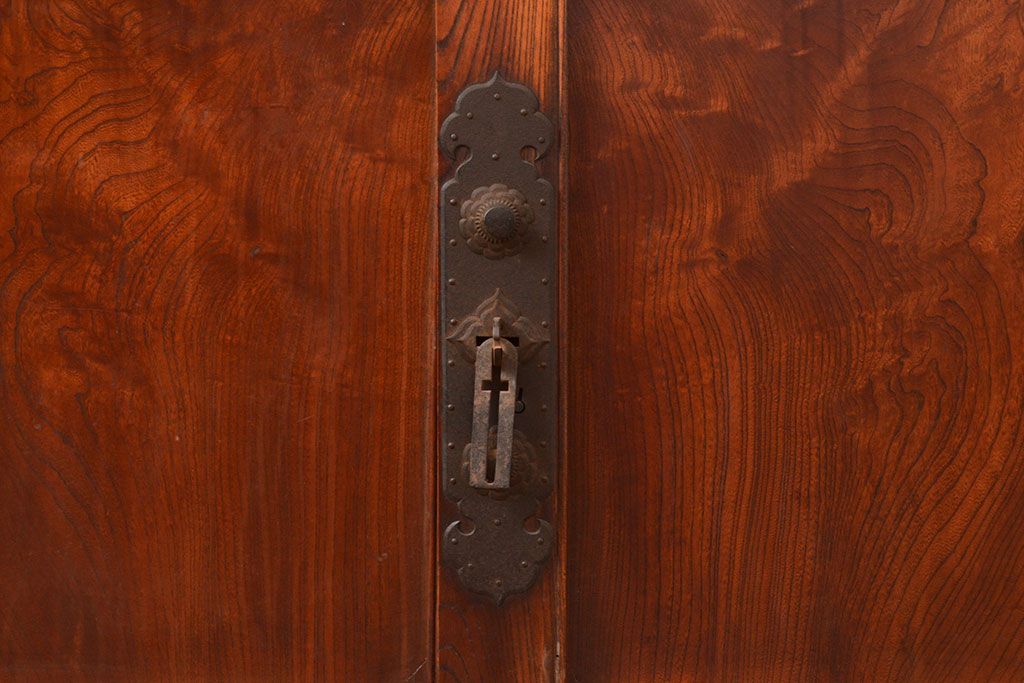 和箪笥 > アンティーク家具 和製アンティーク 上手物!六尺 前面総ケヤキ材 美しい杢目を堪能できる箪笥サイドボード(収納箪笥、夜具箪笥、布団箪笥、水屋箪笥)(R-049298)