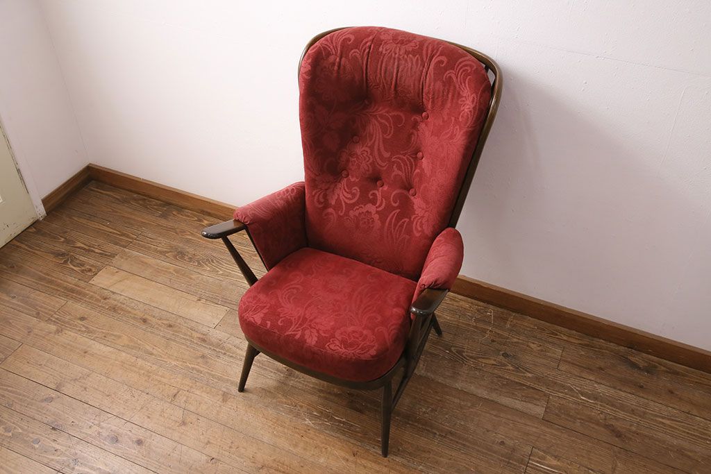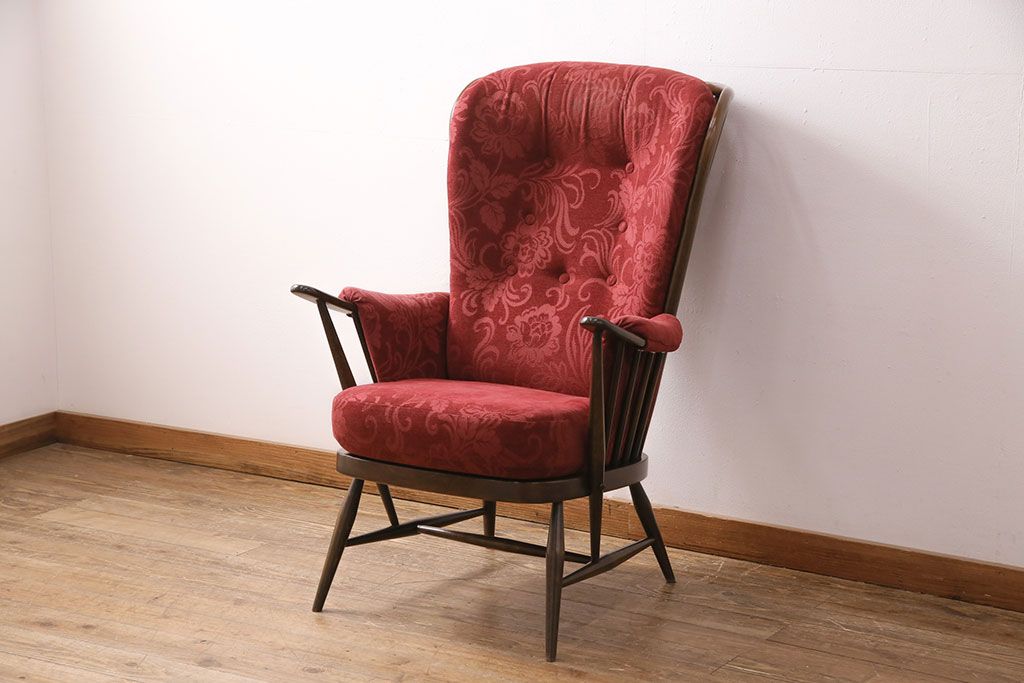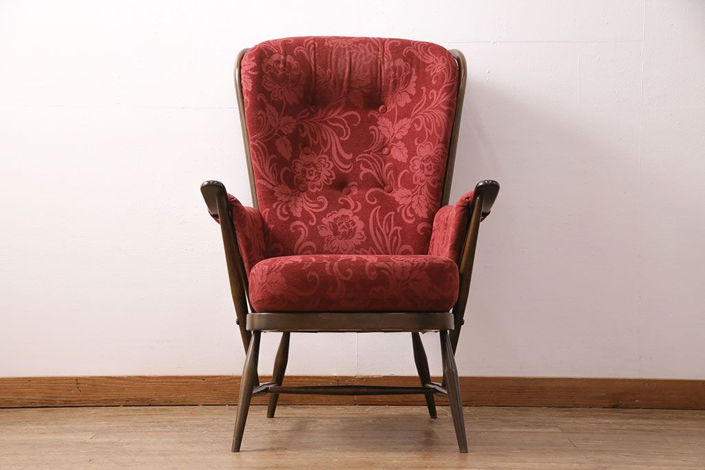 ヴィンテージ家具 ERCOL(アーコール) エバーグリーン エレガントな雰囲気漂う1人掛けイージーチェア(ラウンジチェア、アームチェア、椅子、ソファ)(R-050061)です。