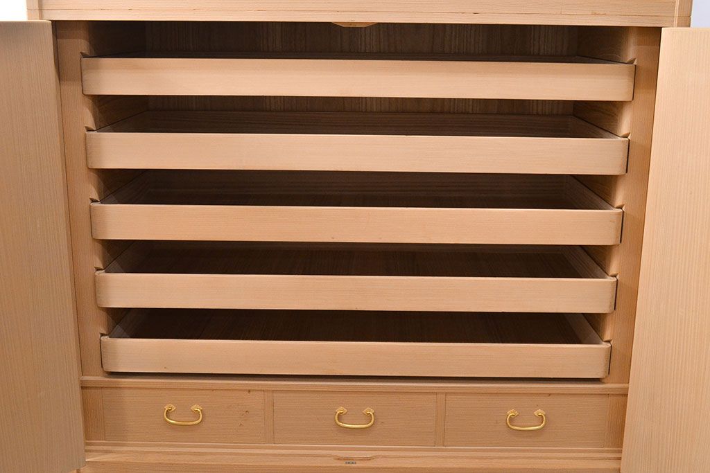 和箪笥 > 中古 広島・府中家具 松創 木匠多々納邦男 総柾目造り 胴厚 高級感と上品さを併せ持つ総桐箪笥(衣装箪笥、着物箪笥、和タンス、桐たんす)(定価約180万円)(R-049892)