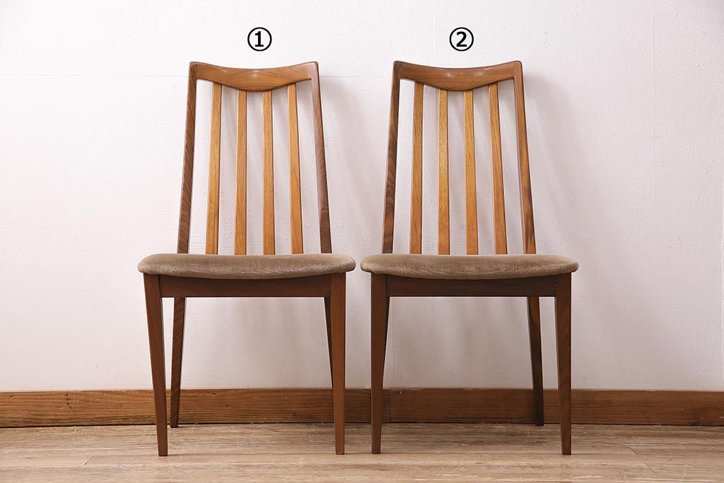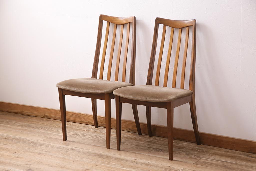 イギリスヴィンテージ G-PLAN(ジープラン) 北欧テイストの心安らぐ空間づくりにおすすめなチーク材製チェア2脚セット(ダイニングチェア、椅子)(R-048442)です。