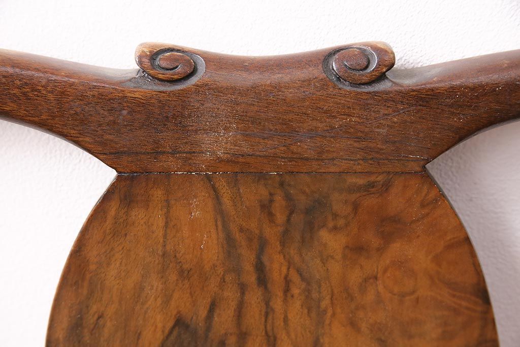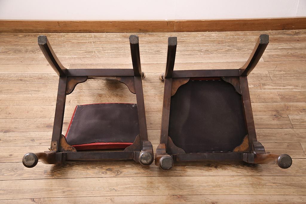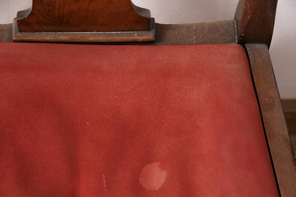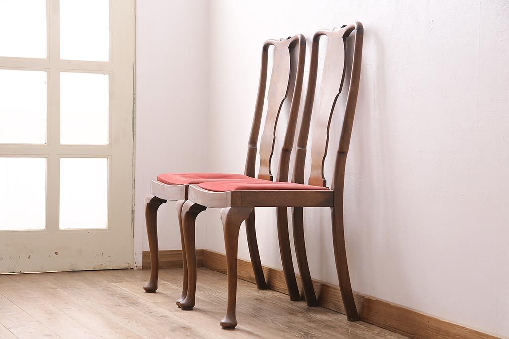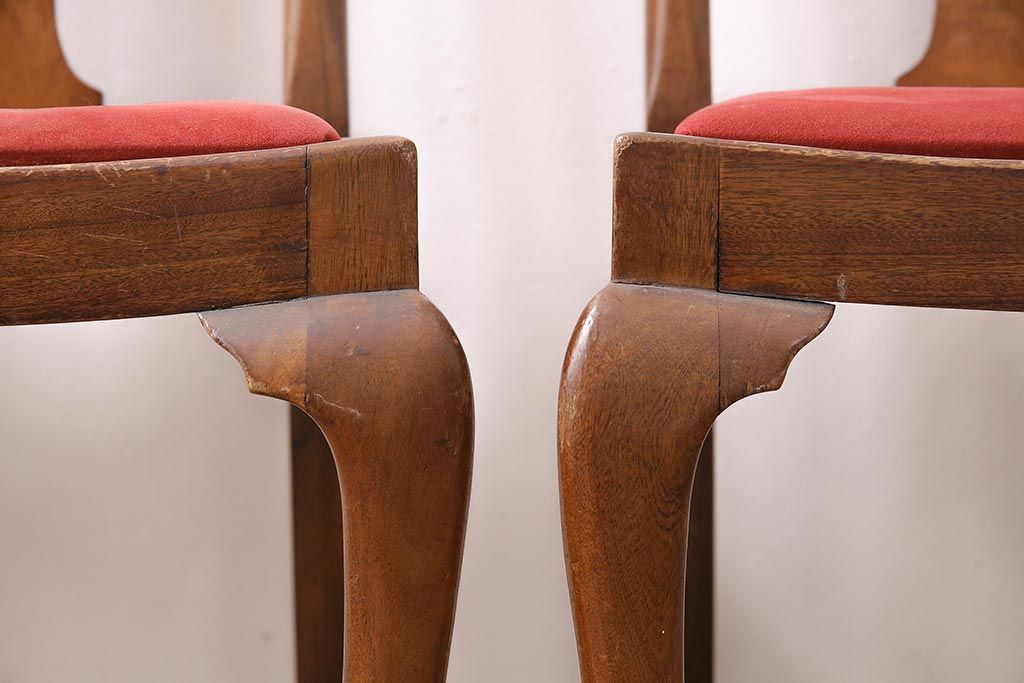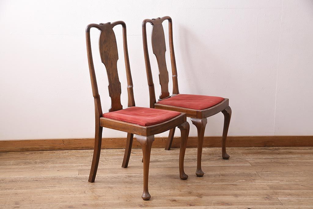 状態が気になる方には現状販売はおすすめできませんので、慎重なご検討をお願いいたします。イギリスアンティーク ウォールナット材 美しいバーズアイの杢目が楽しめるチェア2脚セット(ダイニングチェア、椅子)(R-048454)です。
