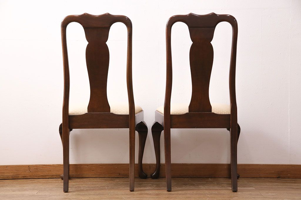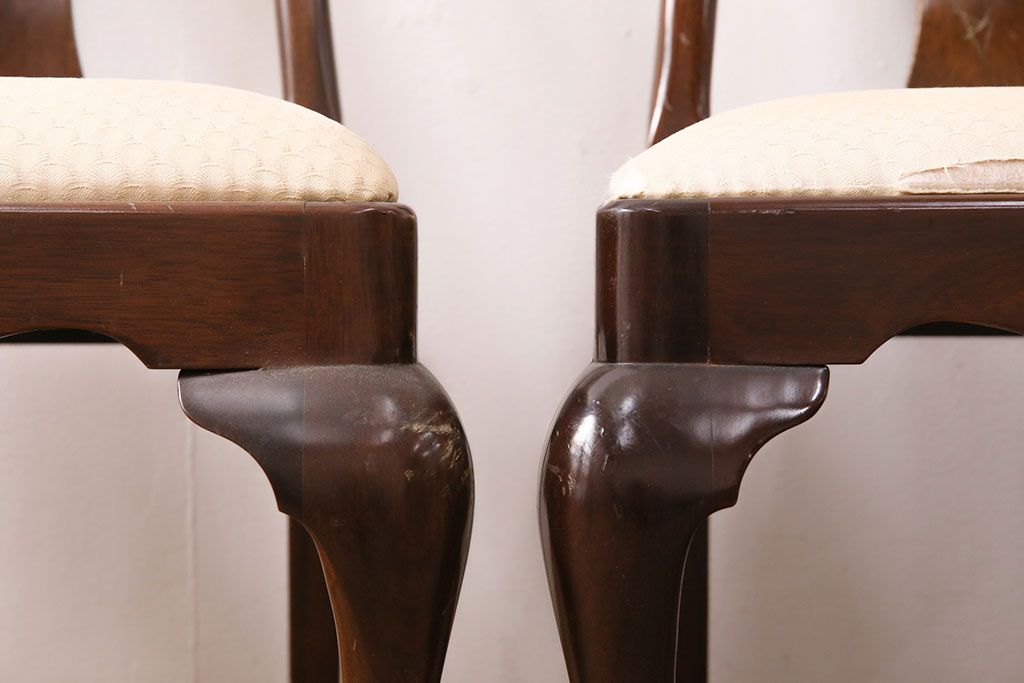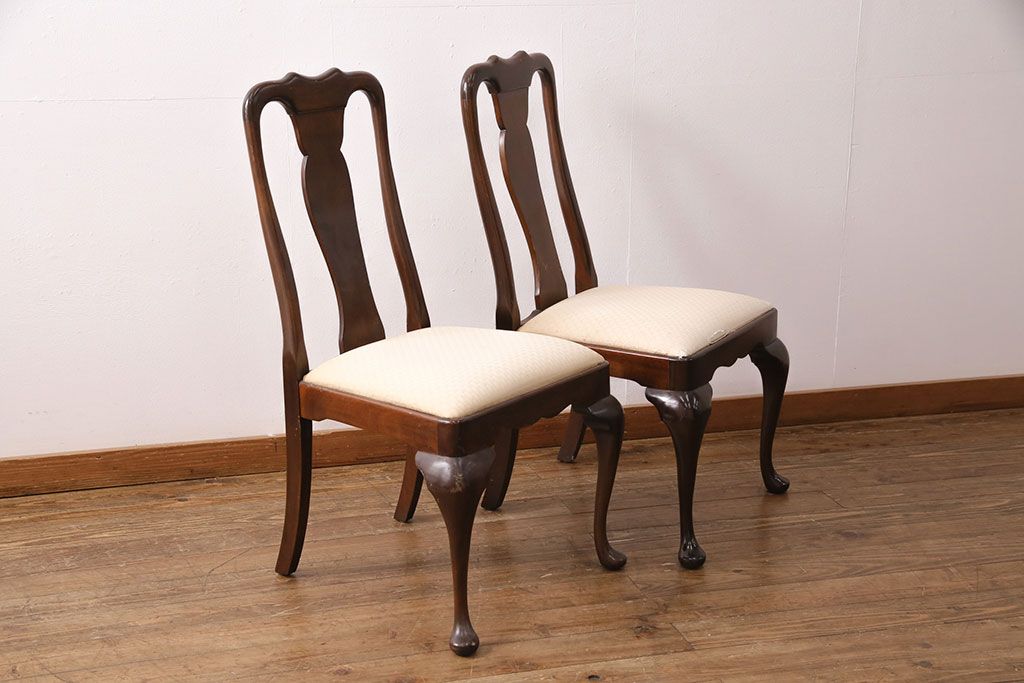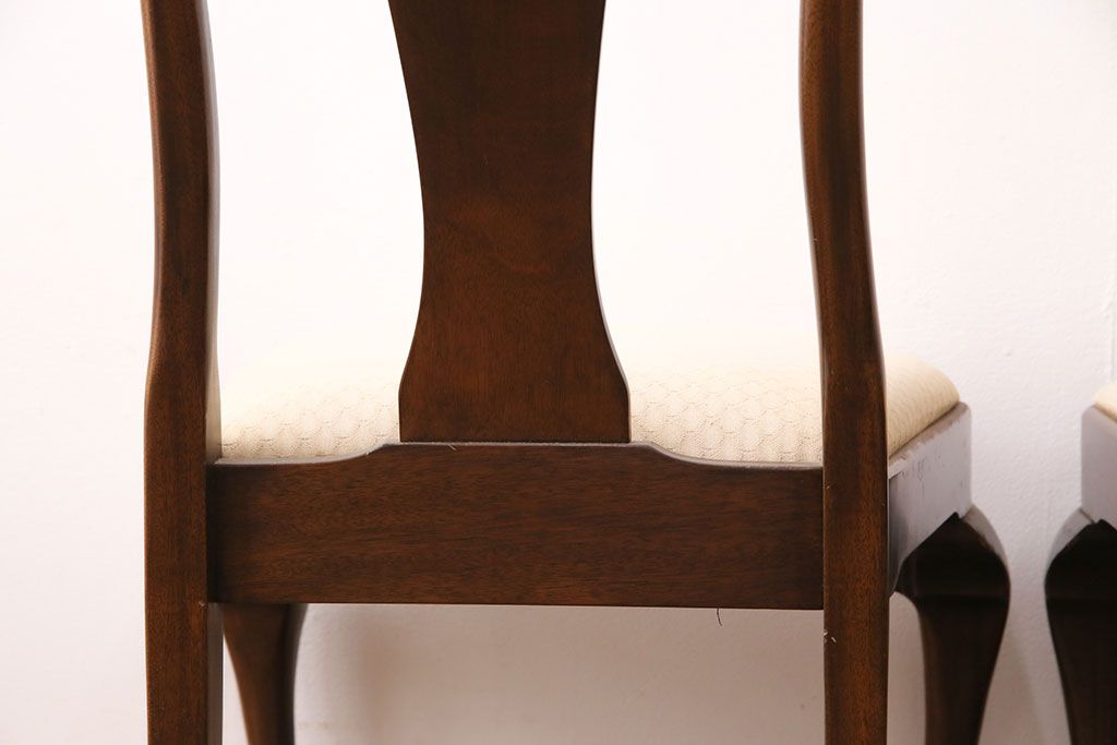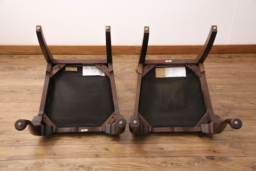 状態が気になる方には現状販売はおすすめできませんので、慎重なご検討をお願いいたします。中古 アメリカ輸入家具 Stickley(スティックレー、スティックレイ) マホガニー材製の高級感あふれるダイニングチェア2脚セット(椅子、サロンチェア)(R-049682)です。