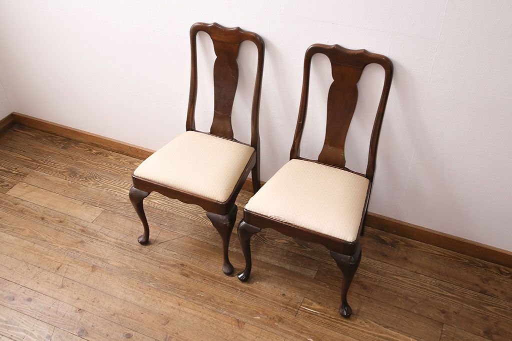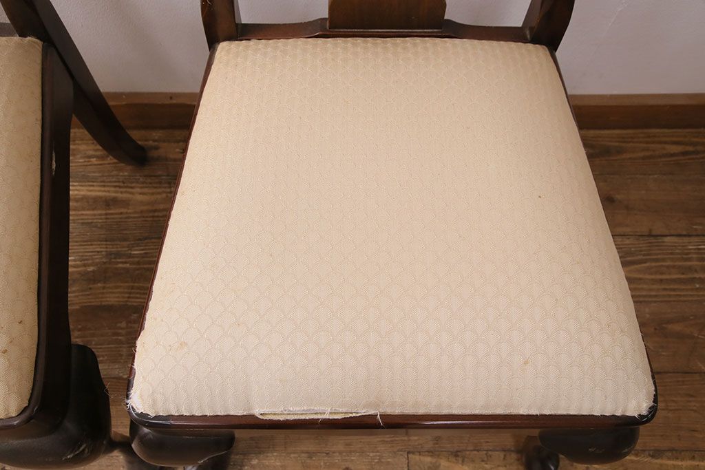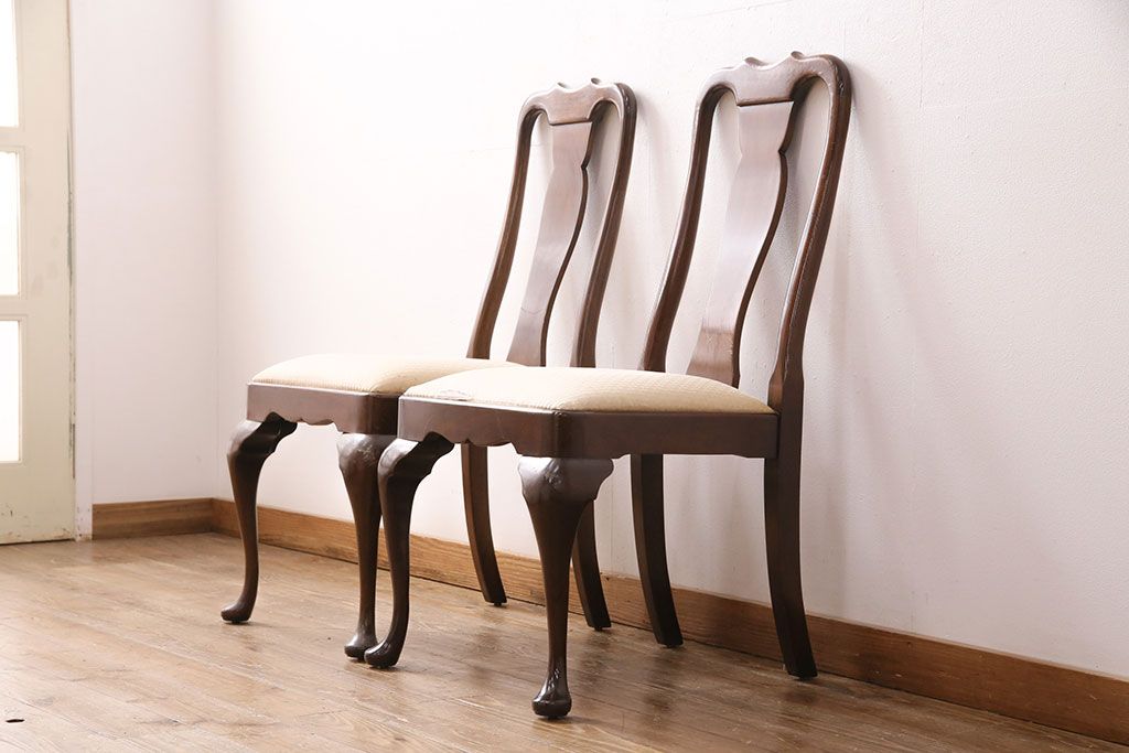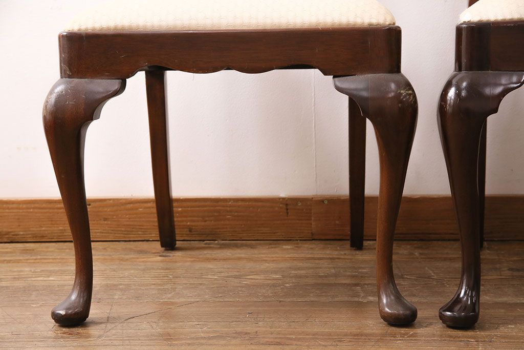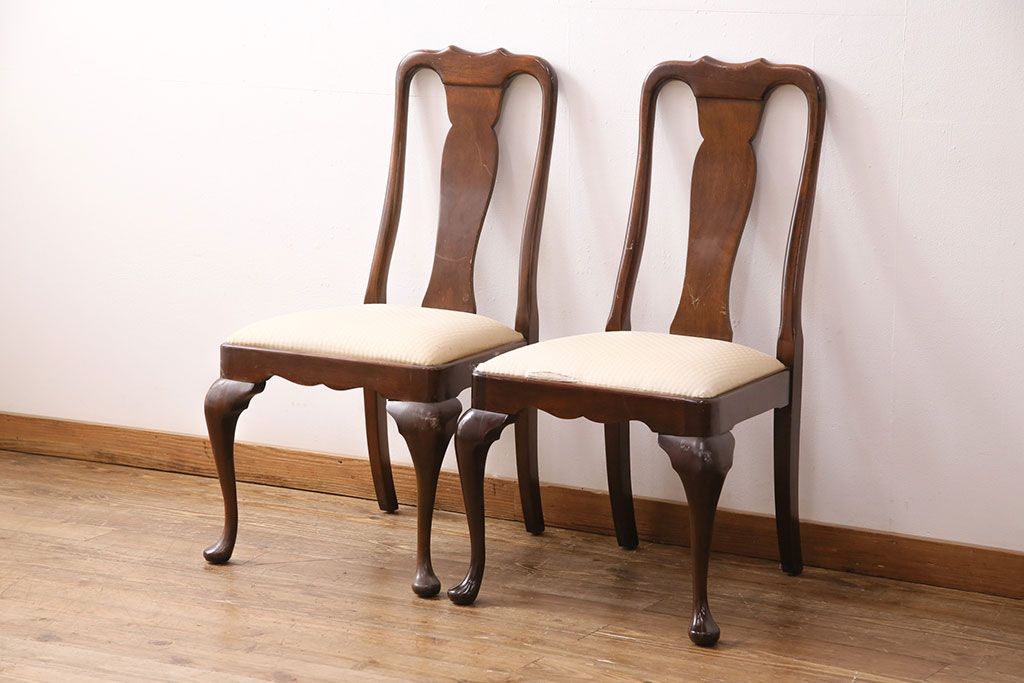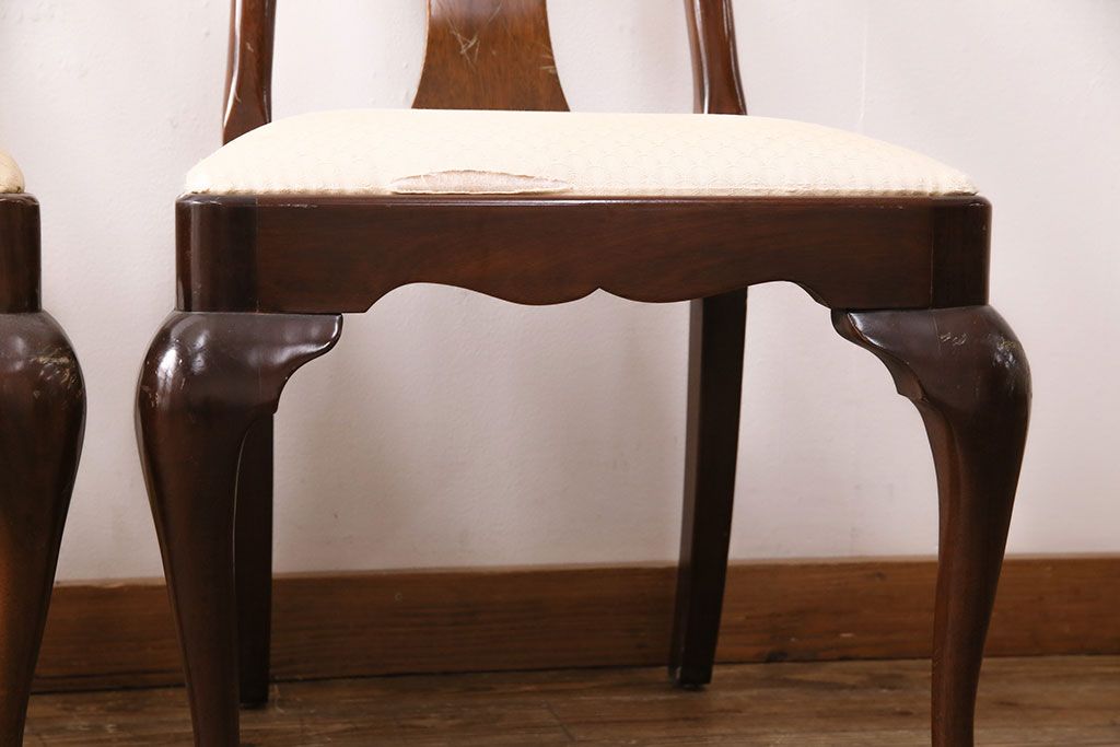 状態が気になる方には現状販売はおすすめできませんので、慎重なご検討をお願いいたします。中古 アメリカ輸入家具 Stickley(スティックレー、スティックレイ) マホガニー材製の高級感あふれるダイニングチェア2脚セット(椅子、サロンチェア)(R-049682)です。