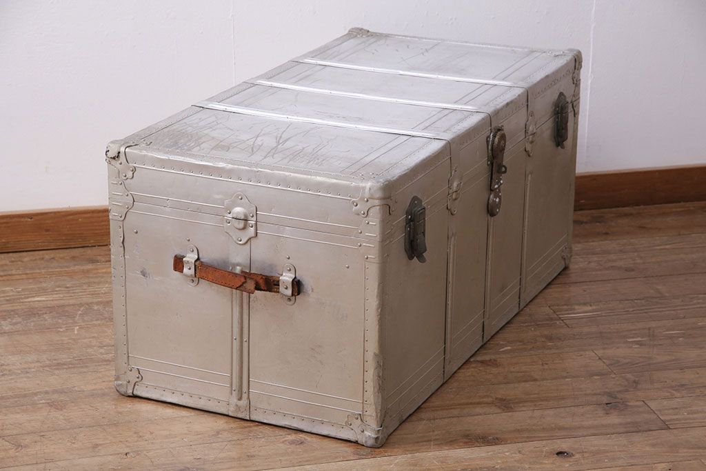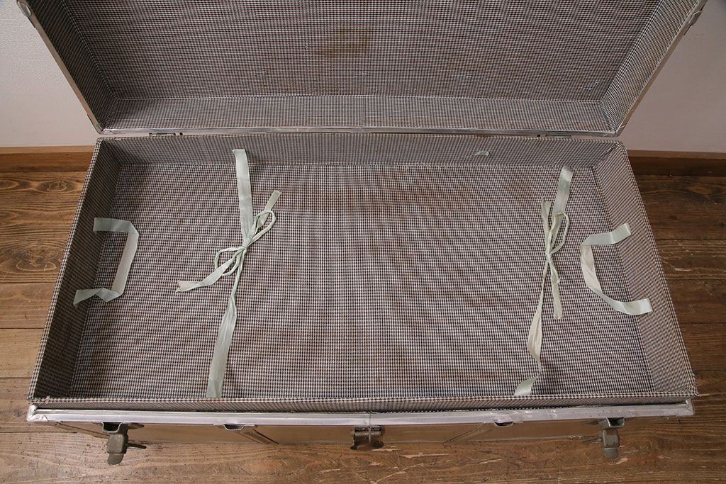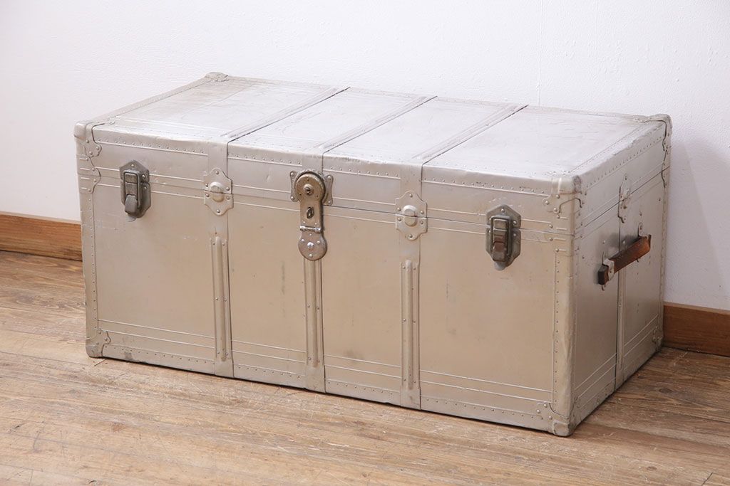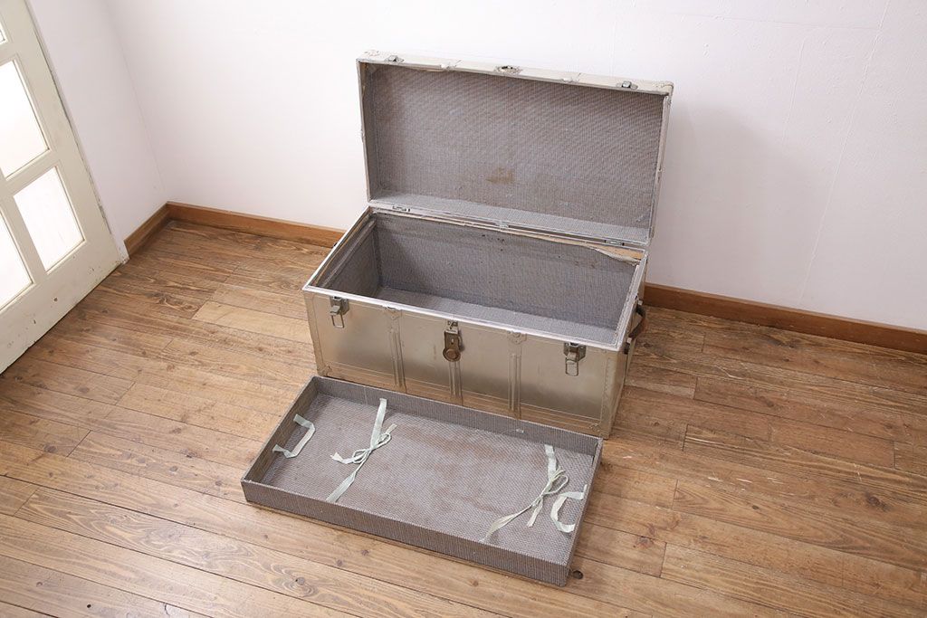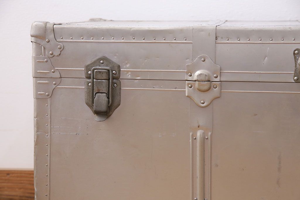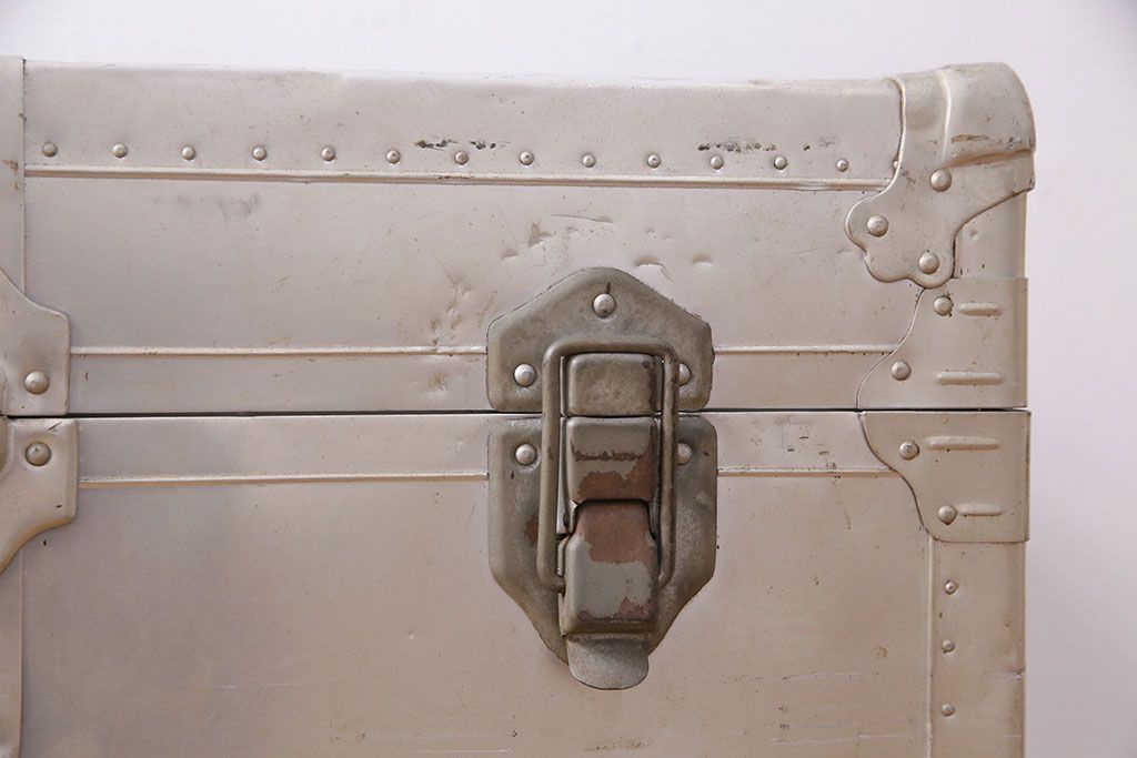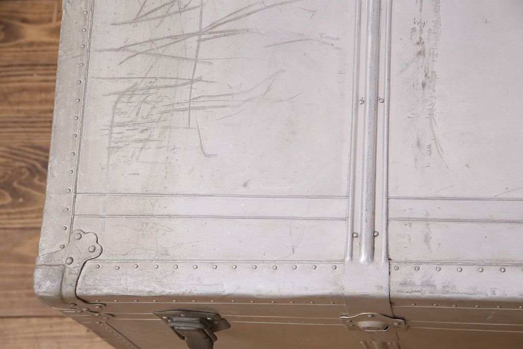 和製アンティーク 昭和中期 インダストリアルな雰囲気漂うアルミ製トランク(船トランク、収納、ディスプレイ)(R-049903)