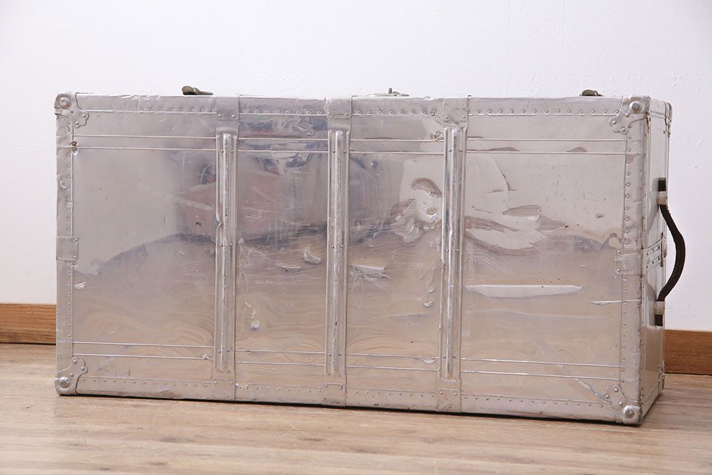 店舗什器 > 和製アンティーク 昭和中期 インダストリアルな雰囲気漂うアルミ製トランク(船トランク、収納、ディスプレイ)(R-049903)