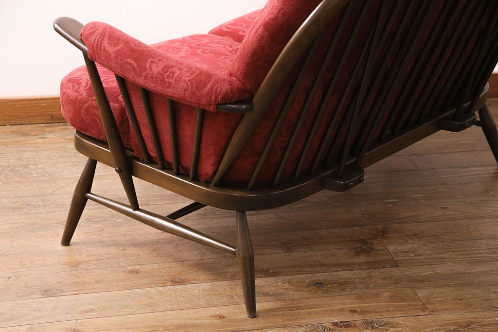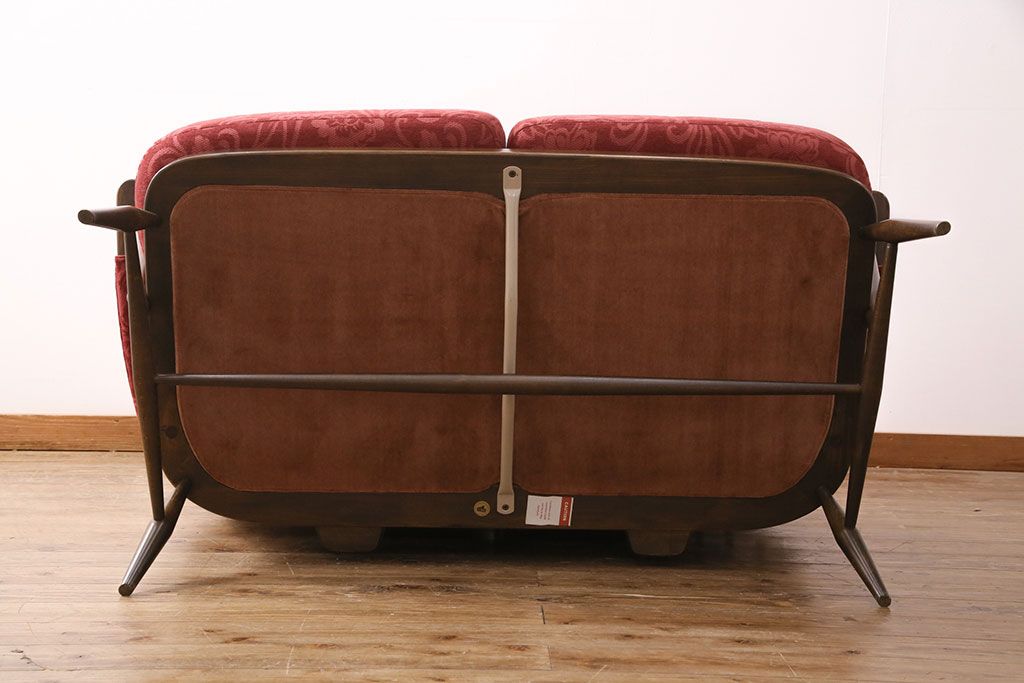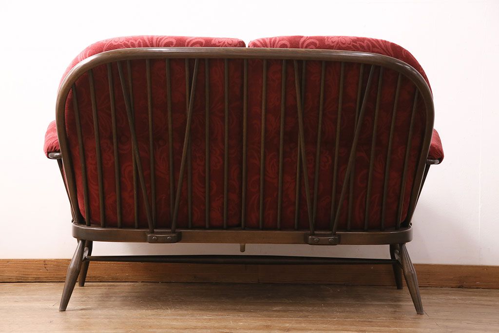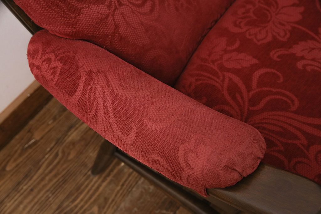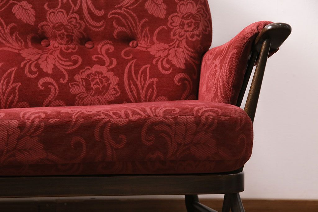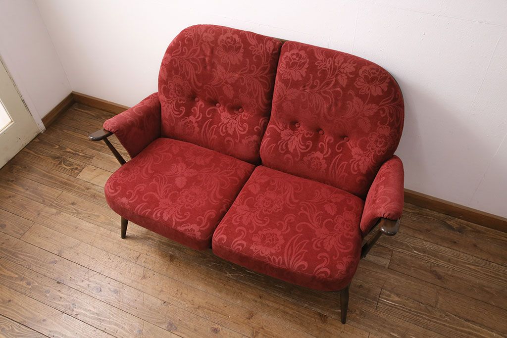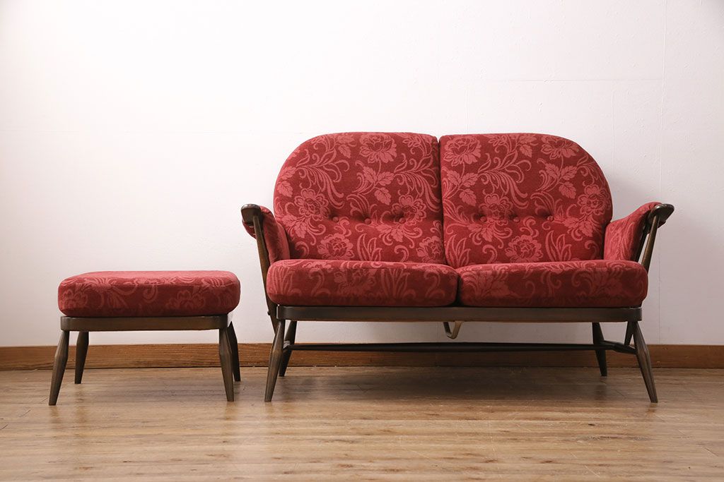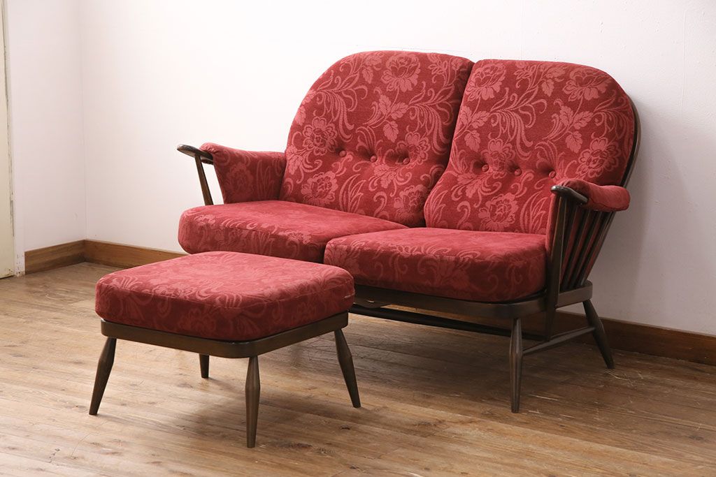 ラフジュ工房> ソファ> 2人掛けソファ > ヴィンテージ家具 ERCOL(アーコール) 艶やかなカラーが目を引くスツール(オットマン)付きビンテージ二人掛けソファ(アームソファ)(R-050062)